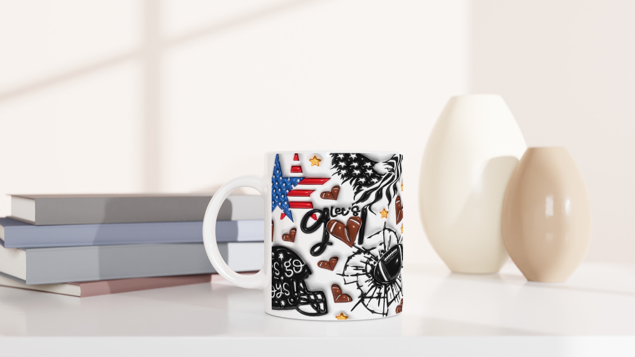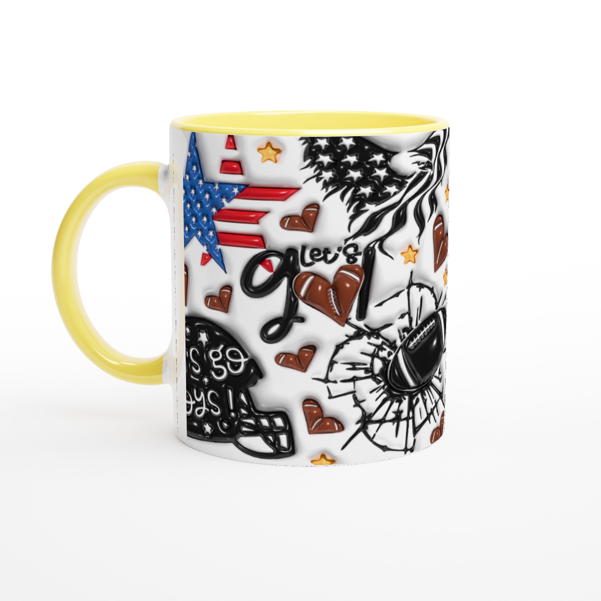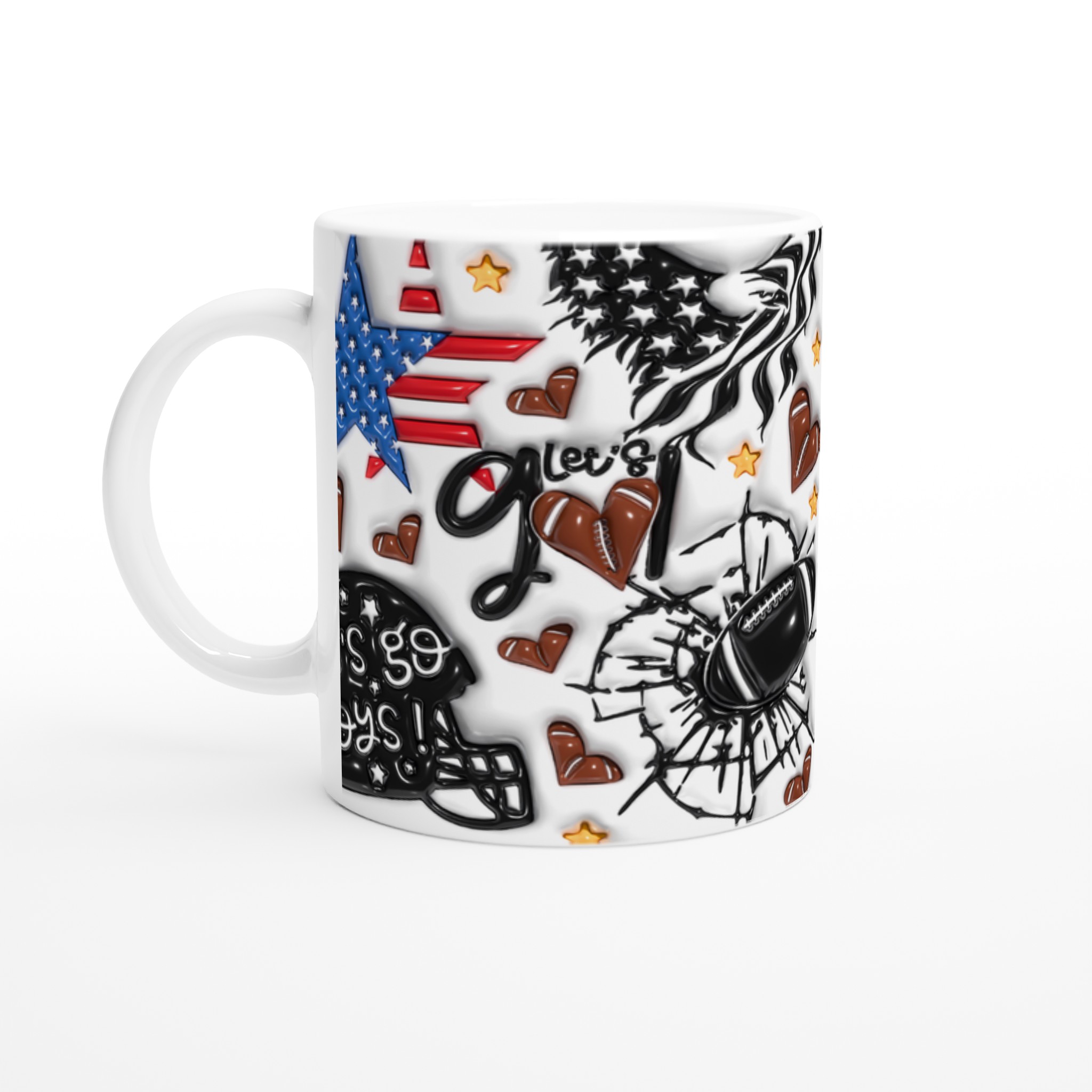 Visa ditt lags kärlek med den här stilrena keramiska muggen som snabbt blir en vardagsfavorit. Perfekt för morgonkaffet inför matchdagen, kvällens varma choklad när du hejar fram ditt lag, eller när du bara vill njuta av en kopp te medan du firar segern. Den blanka vita ytan gör att trycken, som inkluderar de glänsande ”Let’s Go Boys!”-hjälmen, ”Let’s Go Girl!”-texten och de hjärtformade fotbollarna, framhävs med klara och levande färger, som håller sig fina även efter många turer i mikron och diskmaskinen.