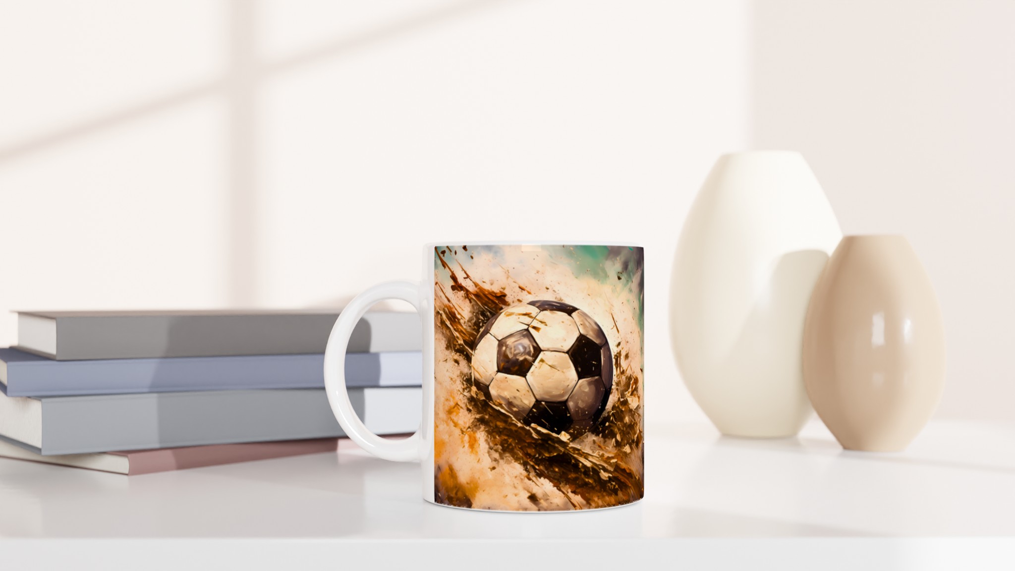 Ge din dag en energikick med denna dynamiska keramiska mugg, perfekt för alla fotbollsälskare. Med en design som fångar spänningen och rörelsen från en match, blir varje klunk en hyllning till spelet. Oavsett om det är morgonkaffet, en varm choklad efter träningen eller en mysig kopp te, är denna mugg en vardagsfavorit som står ut från mängden.