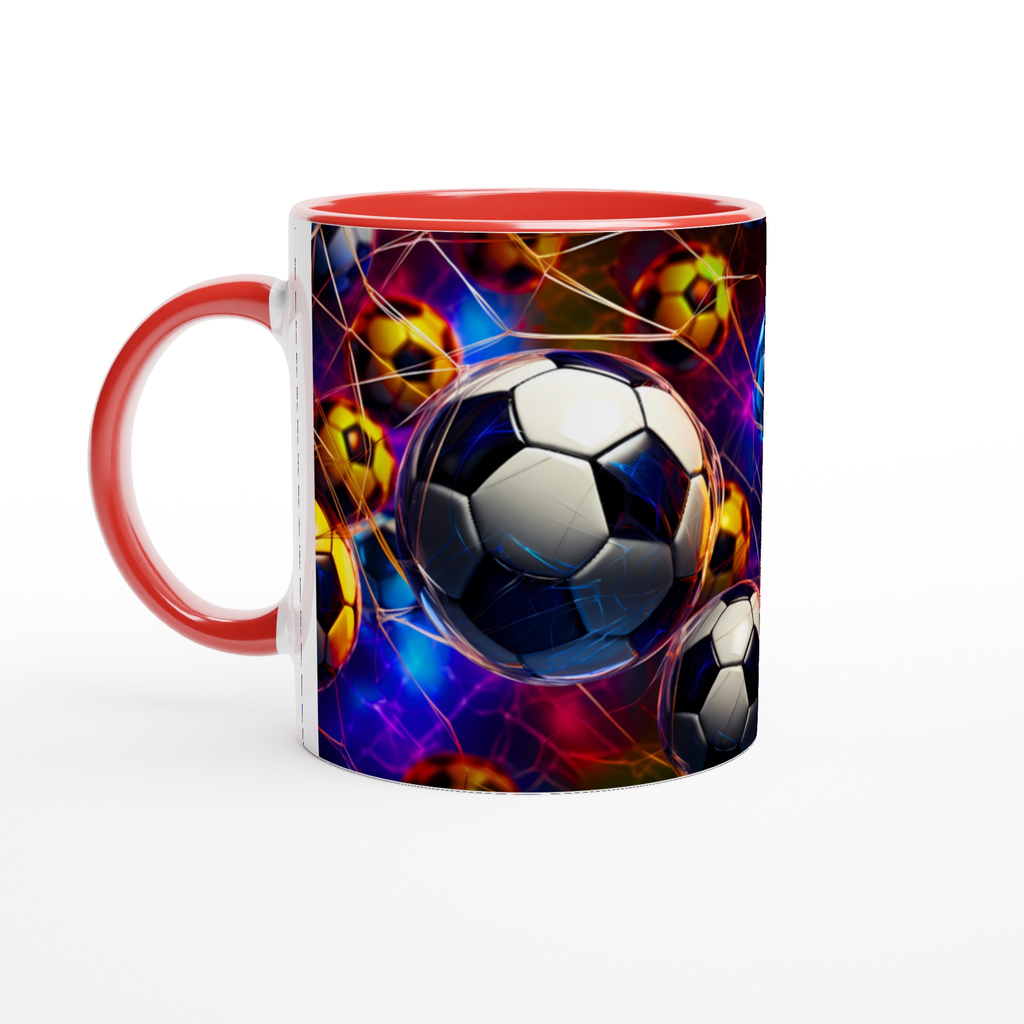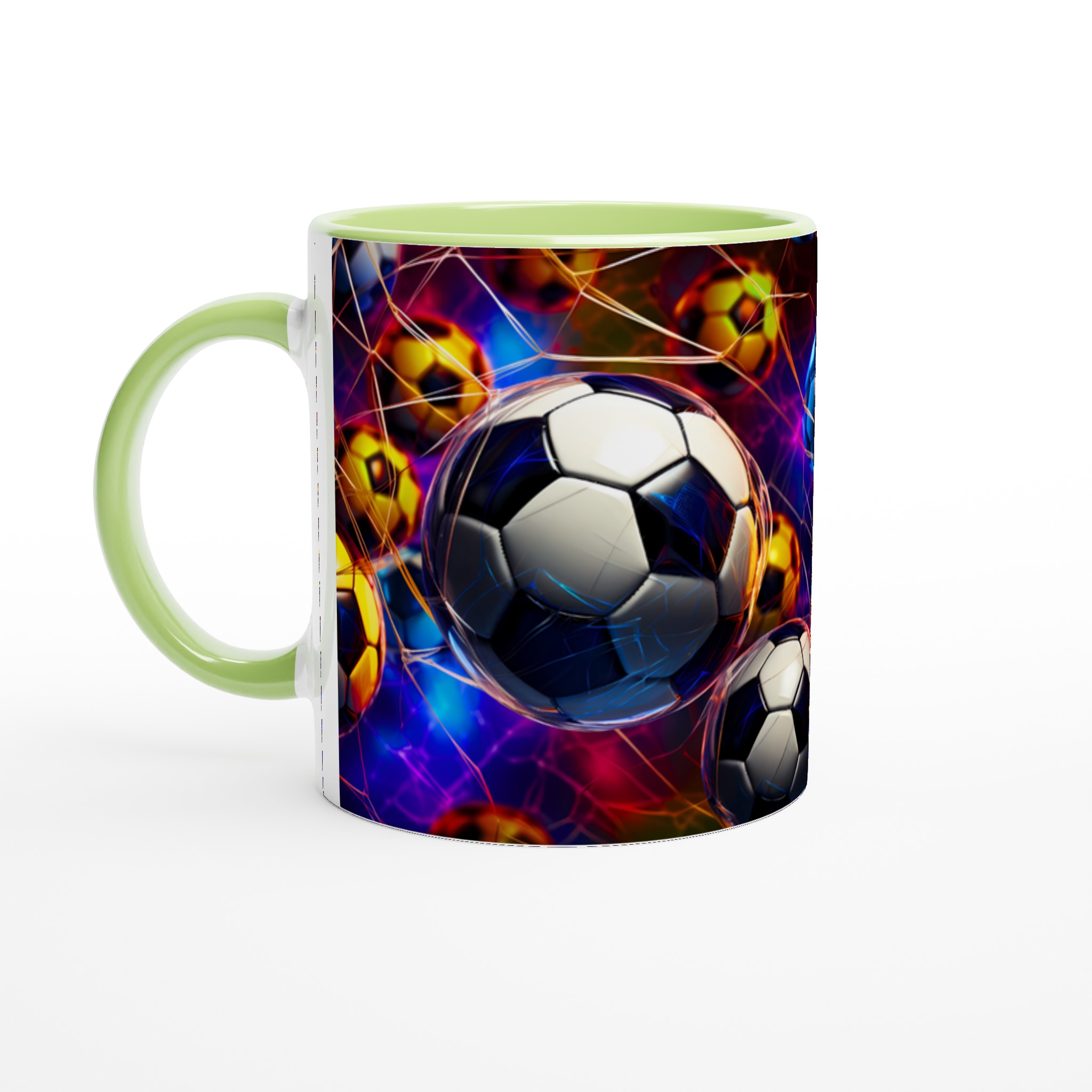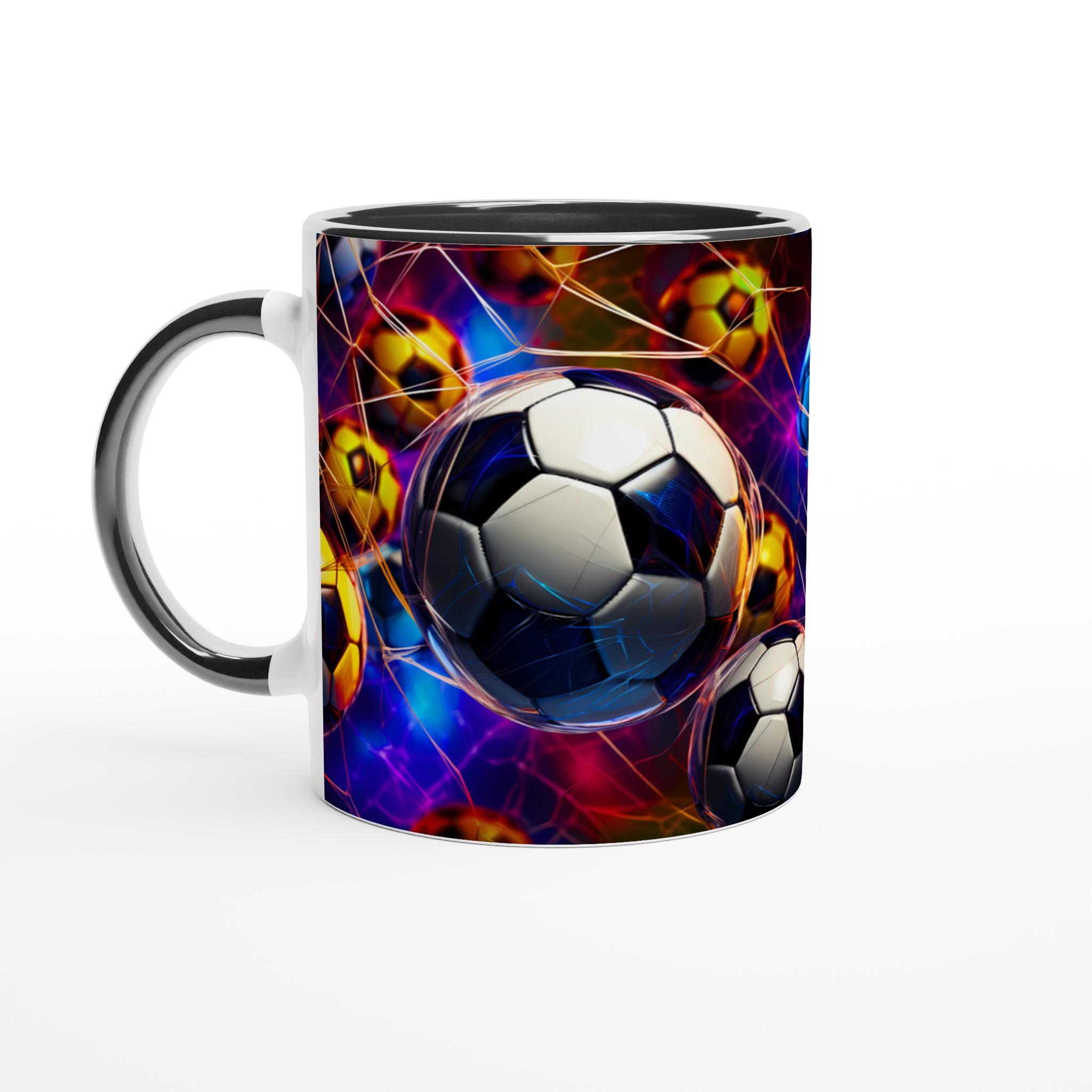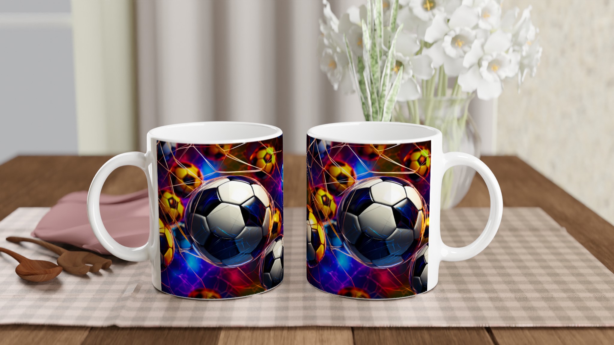 Lyft din kaffe- eller teupplevelse till nästa nivå med vår Keramiska Fotbollsmugg, en sann vardagsfavorit för alla fotbollsfans och den perfekta presenten. Den här muggen är designad med en dynamisk och pulserande bild av fotbollar i ett neonupplyst nät, som fångar spänningen och energin från spelet. De klara, levande färgerna kommer garanterat att sticka ut och bibehålla sin lyster, även efter otaliga omgångar i mikron och diskmaskinen.
