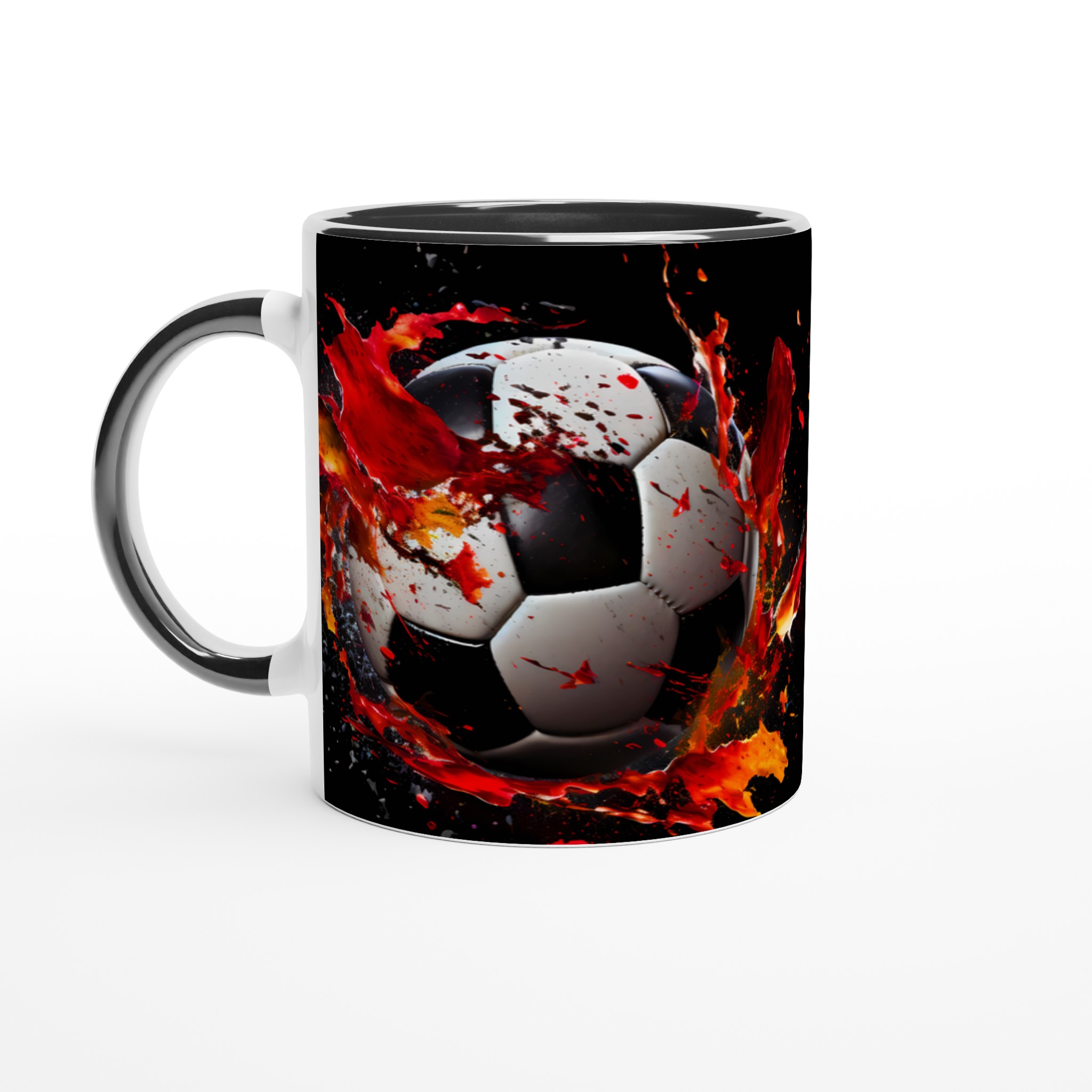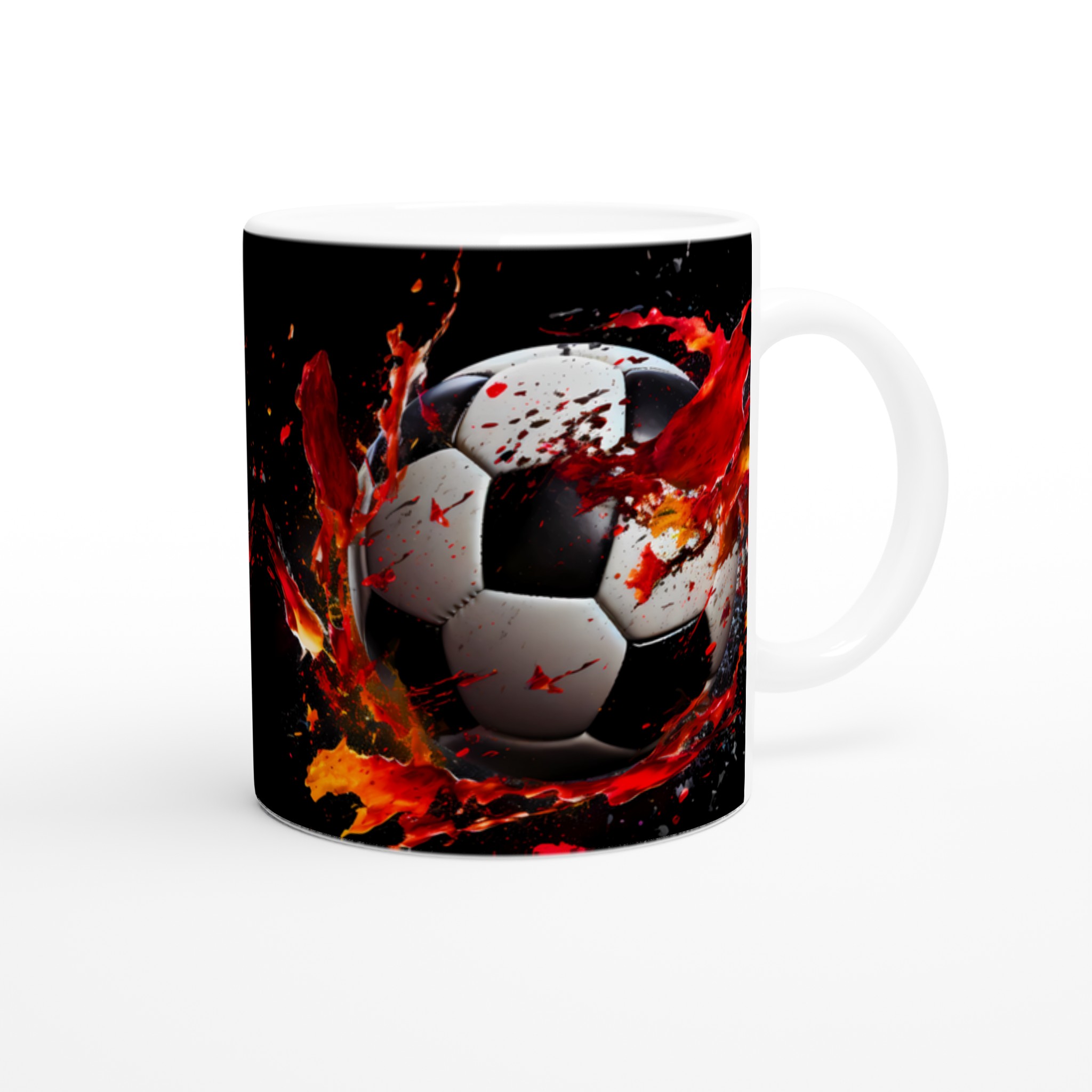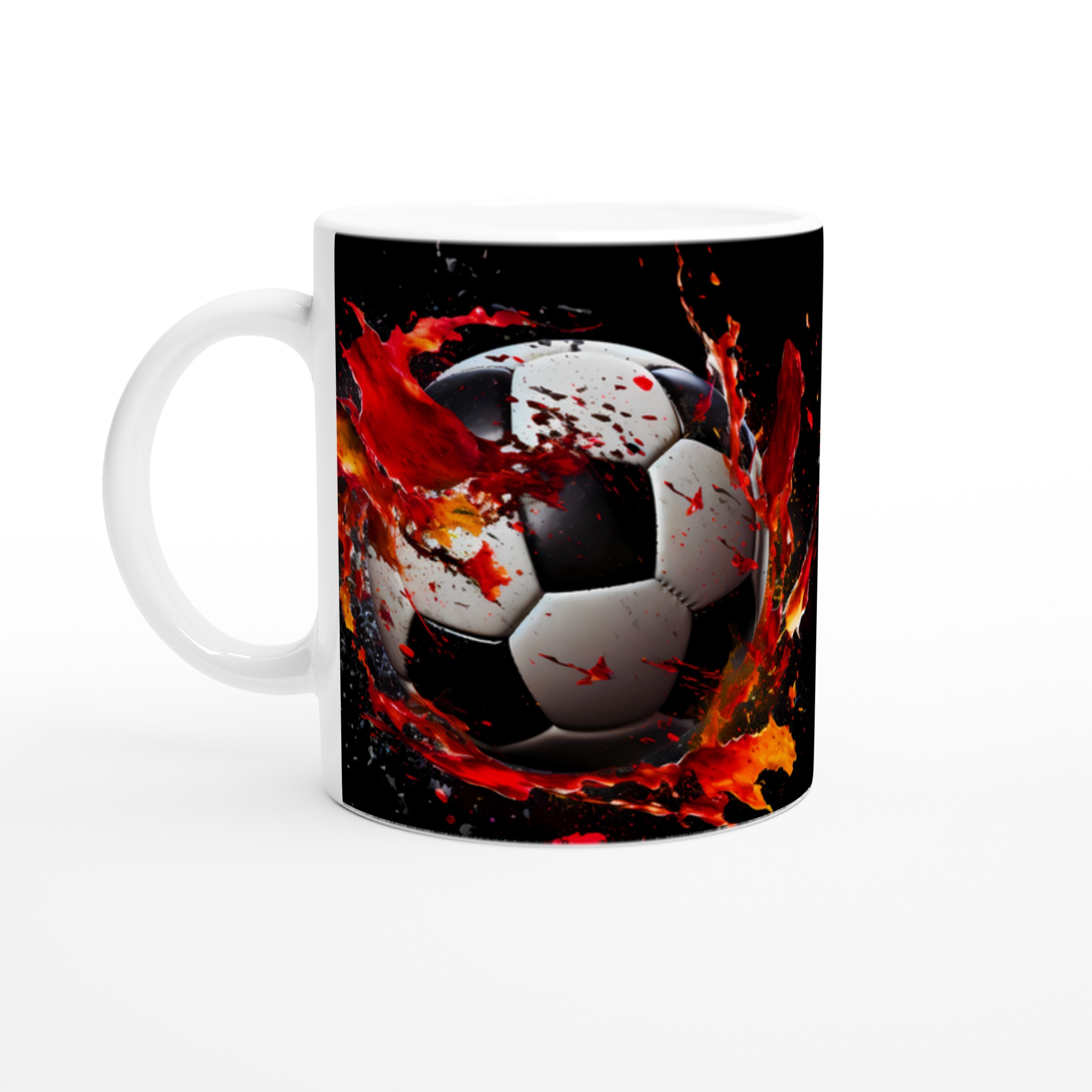 Sätt sprätt på morgonkaffet med vår dynamiska fotbollsmugg! Inspirerad av den explosiva energin från fotbollsplanen, pryds denna mugg av en dramatisk fotbollsdesign med stänk av levande rött och orange som symboliserar passion och rörelse. Den stilrena keramiska muggen blir snabbt en vardagsfavorit. Perfekt för morgonkaffet, kvällens varma choklad eller när du bara vill njuta av en kopp te. Den blanka ytan gör att trycken framhävs med klara och levande färger, som håller sig fina även efter många turer i mikron och diskmaskinen.
