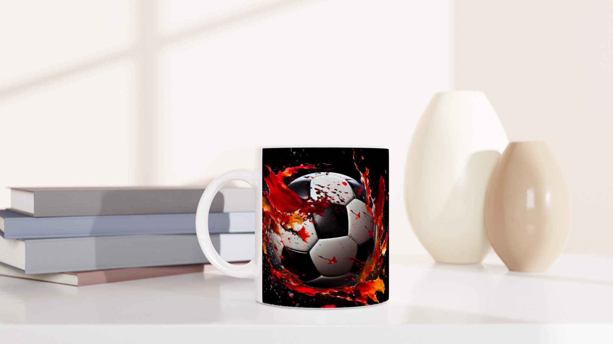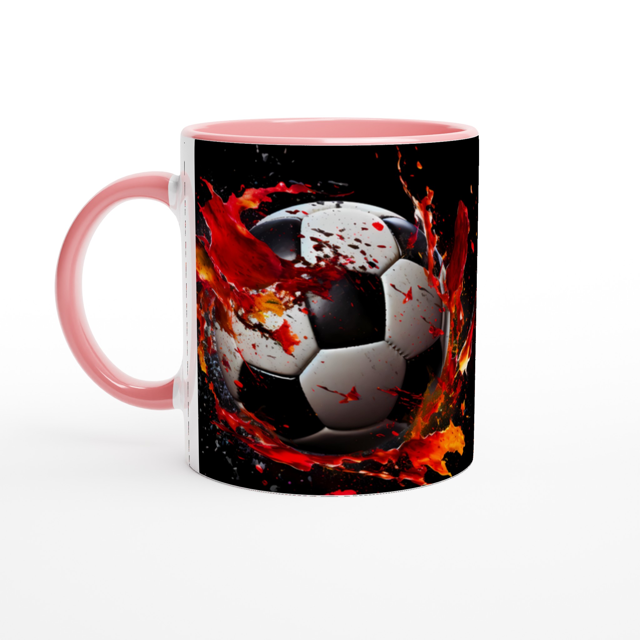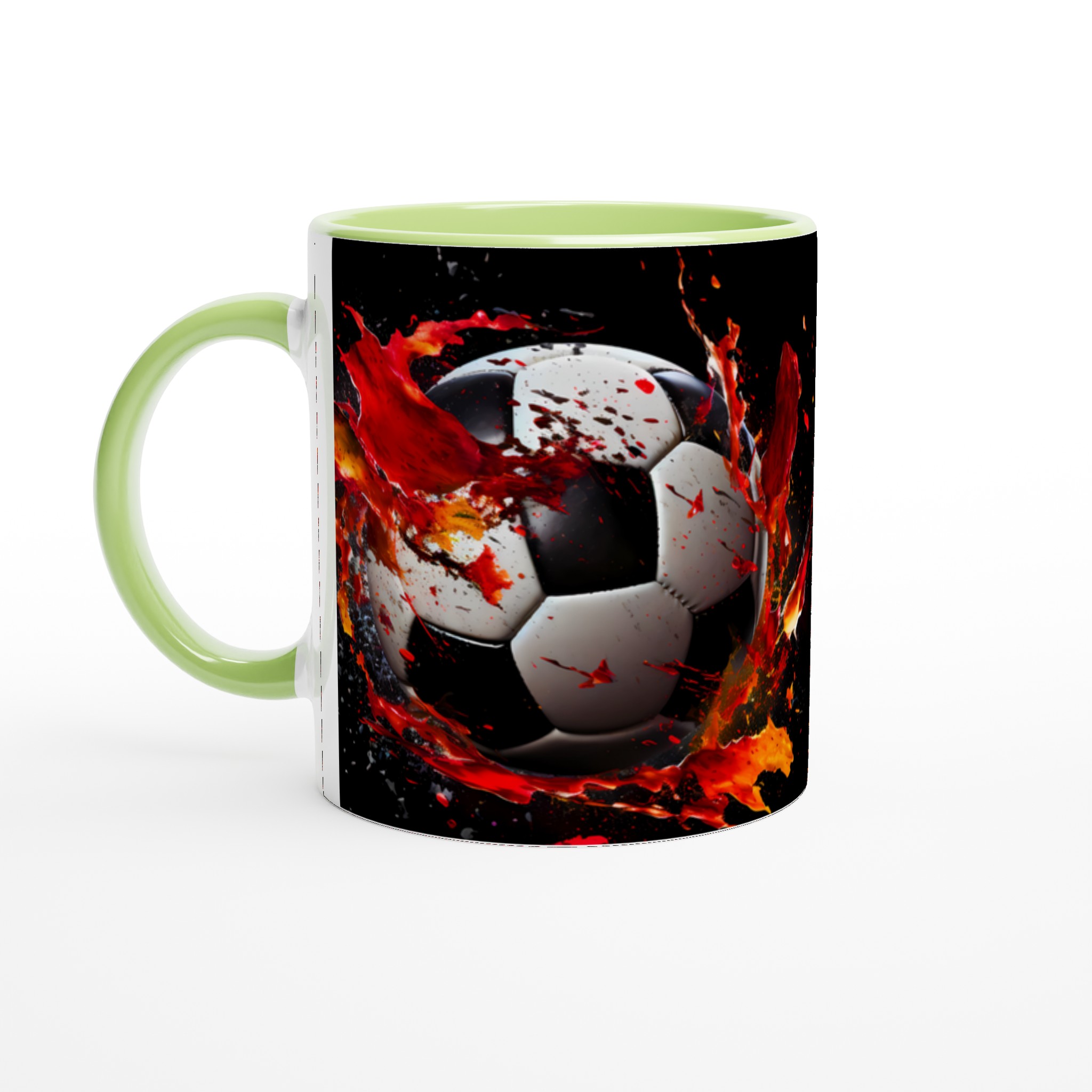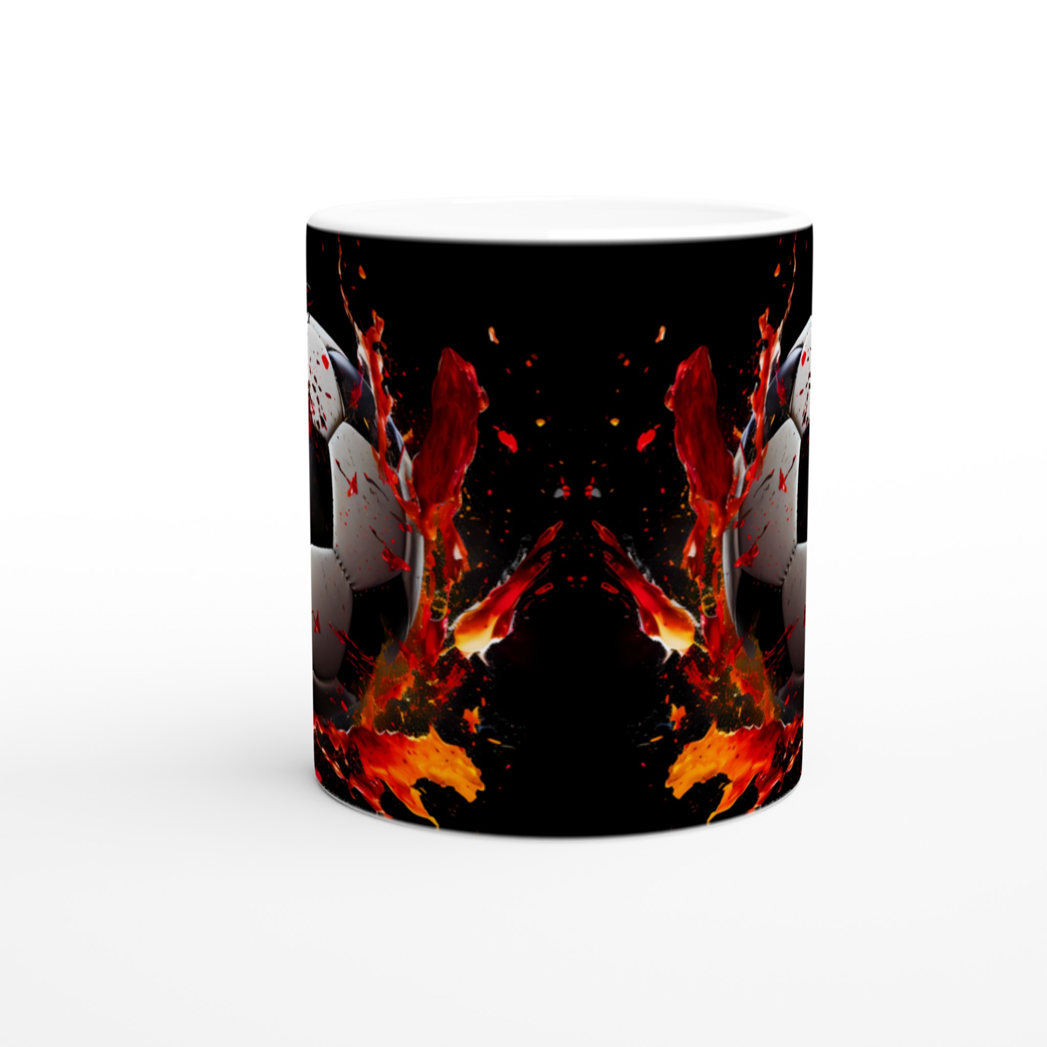 Sätt sprätt på morgonkaffet med vår dynamiska fotbollsmugg! Inspirerad av den explosiva energin från fotbollsplanen, pryds denna mugg av en dramatisk fotbollsdesign med stänk av levande rött och orange som symboliserar passion och rörelse. Den stilrena keramiska muggen blir snabbt en vardagsfavorit. Perfekt för morgonkaffet, kvällens varma choklad eller när du bara vill njuta av en kopp te. Den blanka ytan gör att trycken framhävs med klara och levande färger, som håller sig fina även efter många turer i mikron och diskmaskinen.
