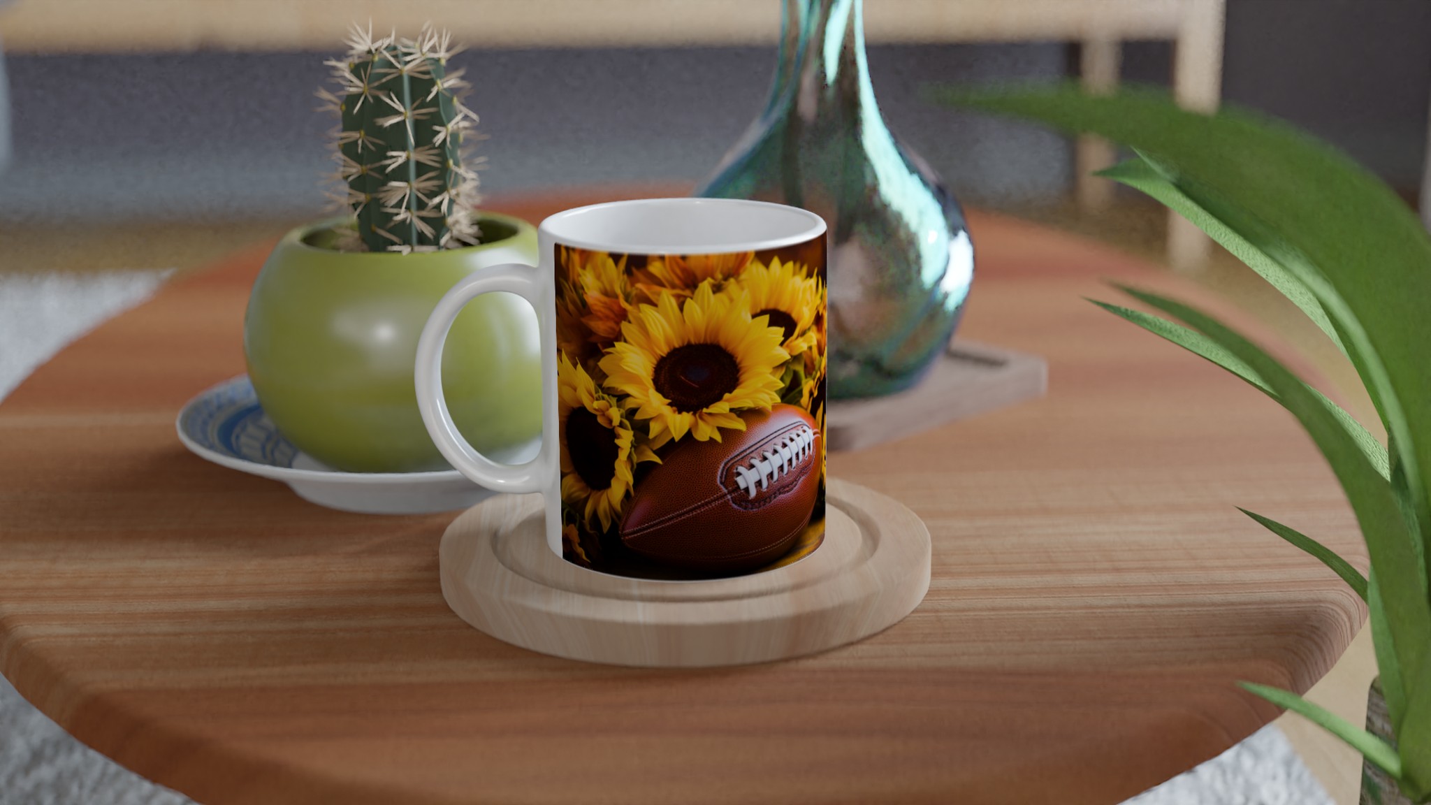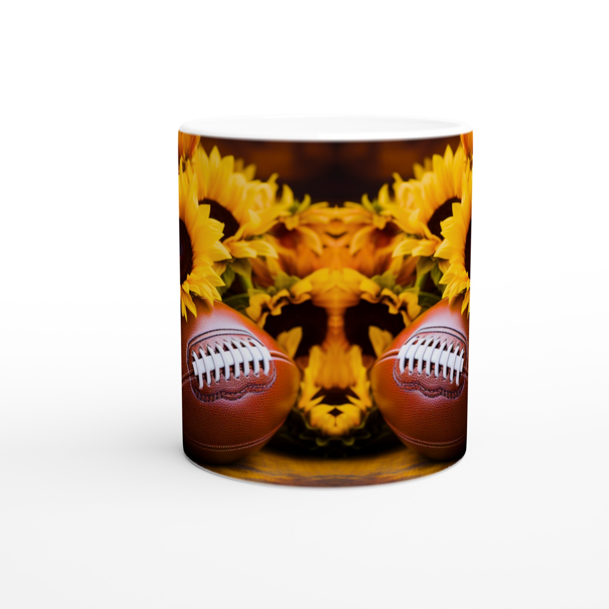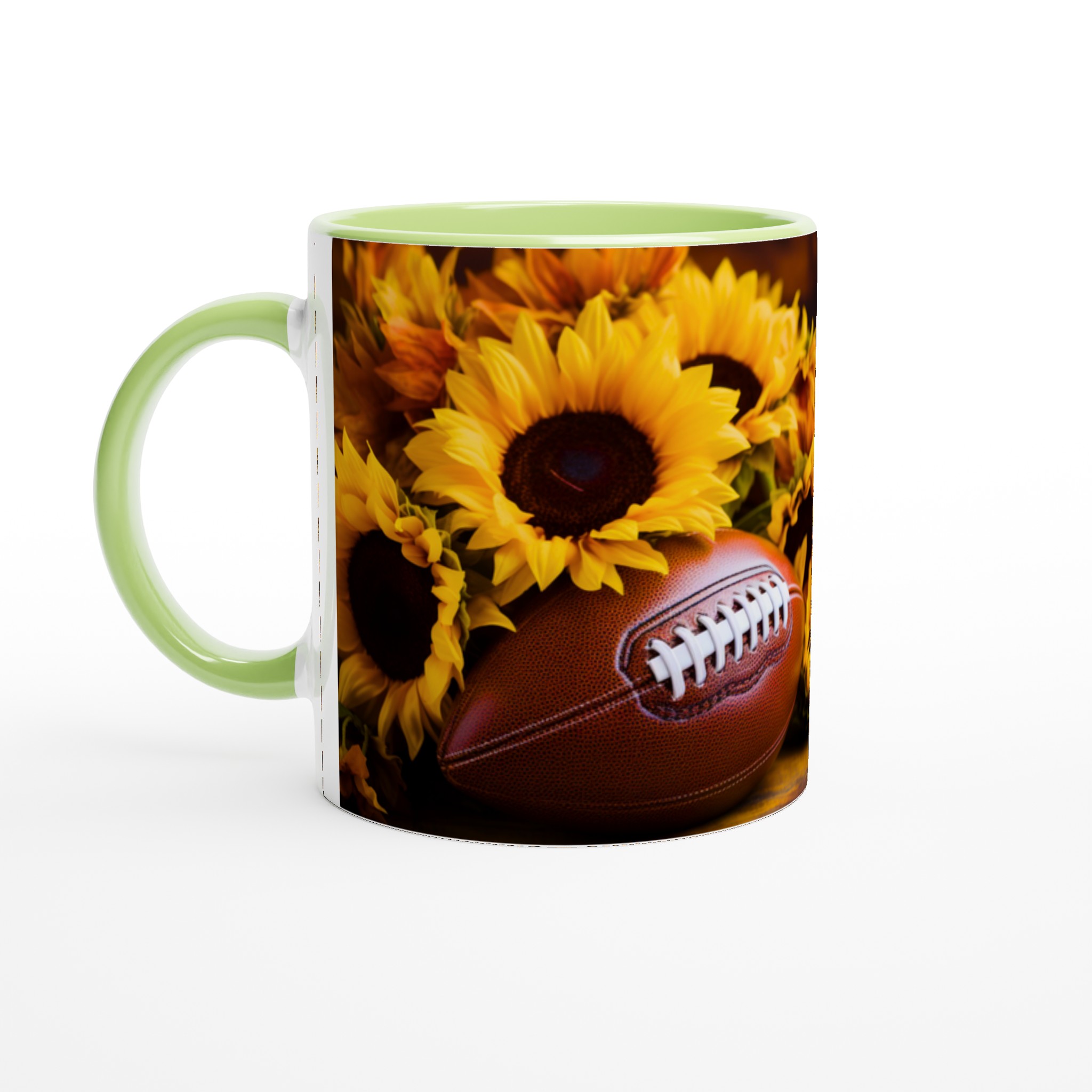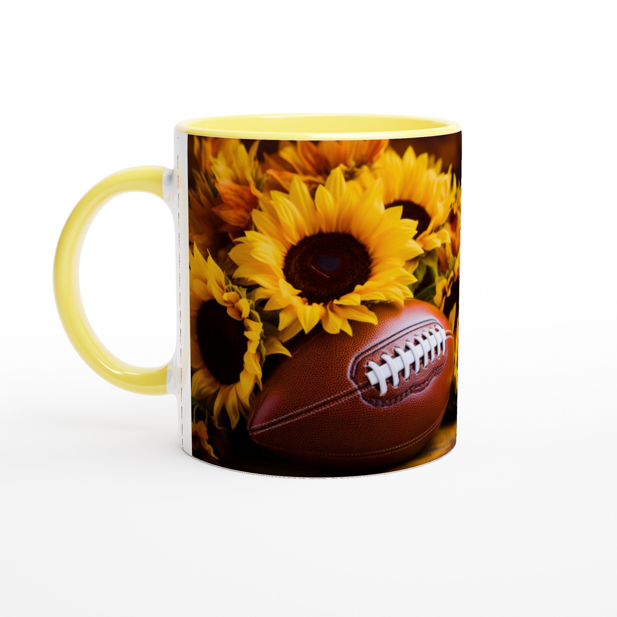 Fånga den härliga höststämningen och spänningen inför matchdagen med denna charmiga keramiska mugg, perfekt för varje fotbollsentusiast och älskare av varma drycker. Med sitt levande motiv av en amerikansk fotboll omgiven av strålande solrosor, för den med sig en känsla av glädje, gemenskap och passion direkt till ditt köksbord. Denna mugg är inte bara en behållare för din favoritdryck – den är en hyllning till de gyllene bladen, den krispiga luften och de oförglömliga matcherna.