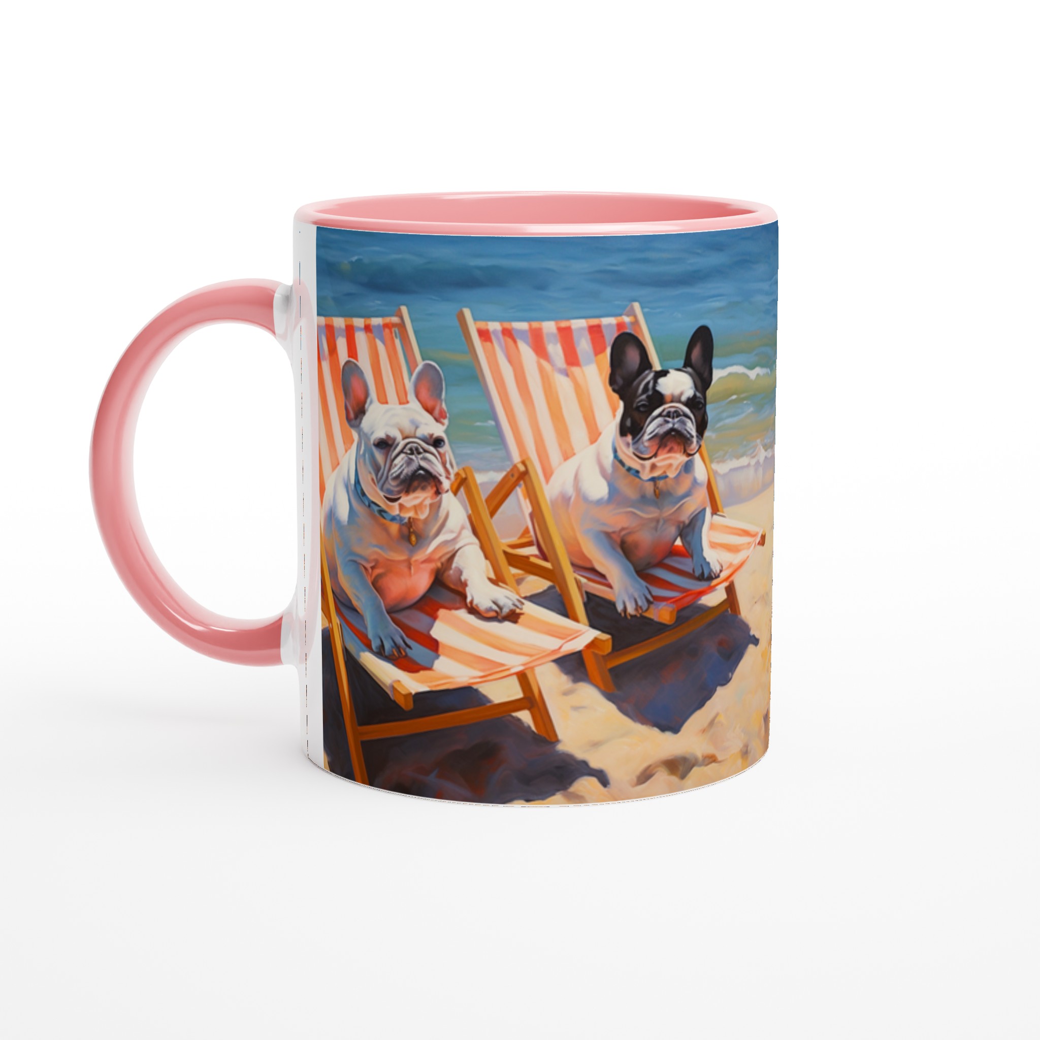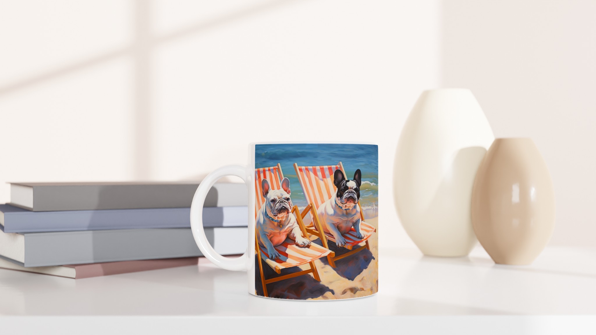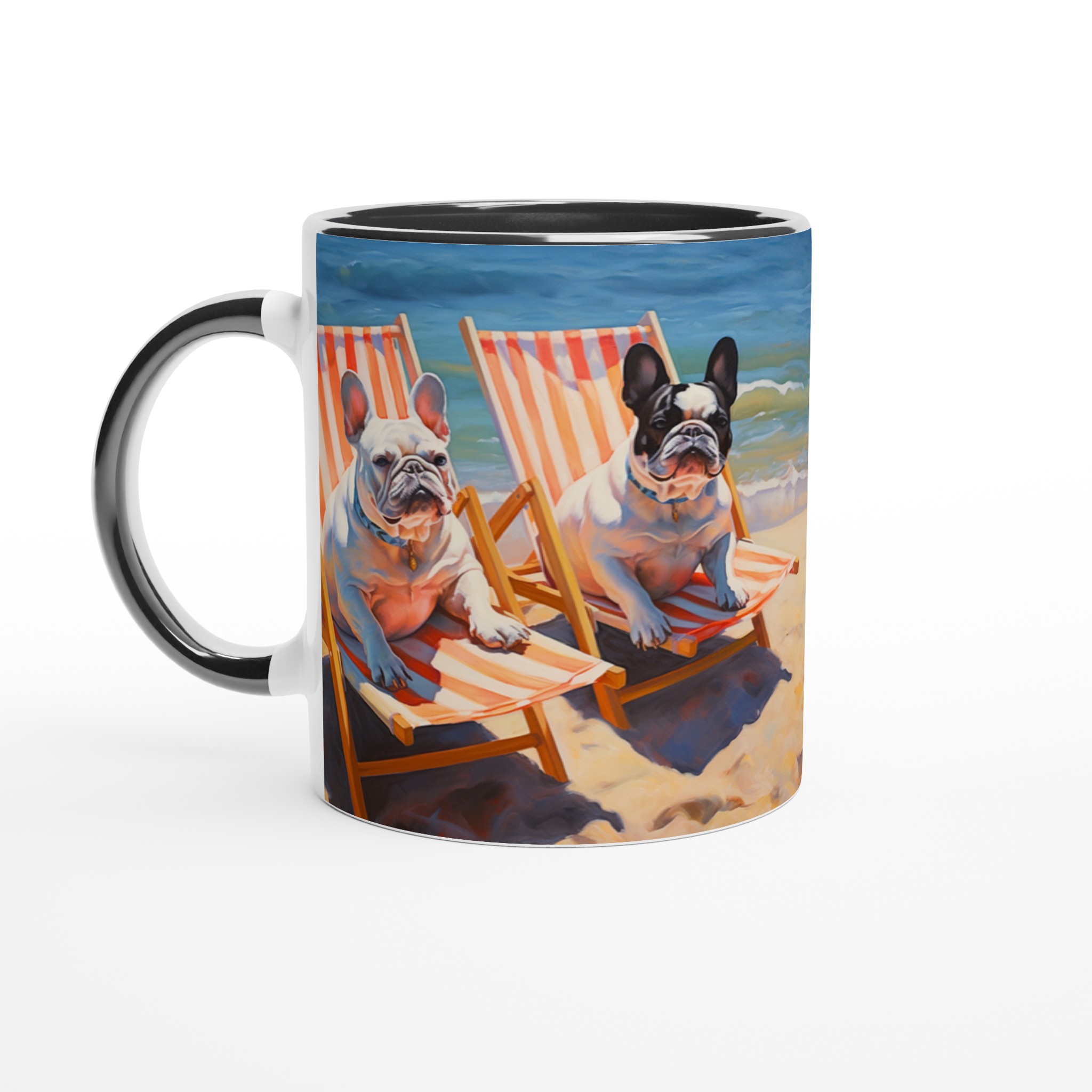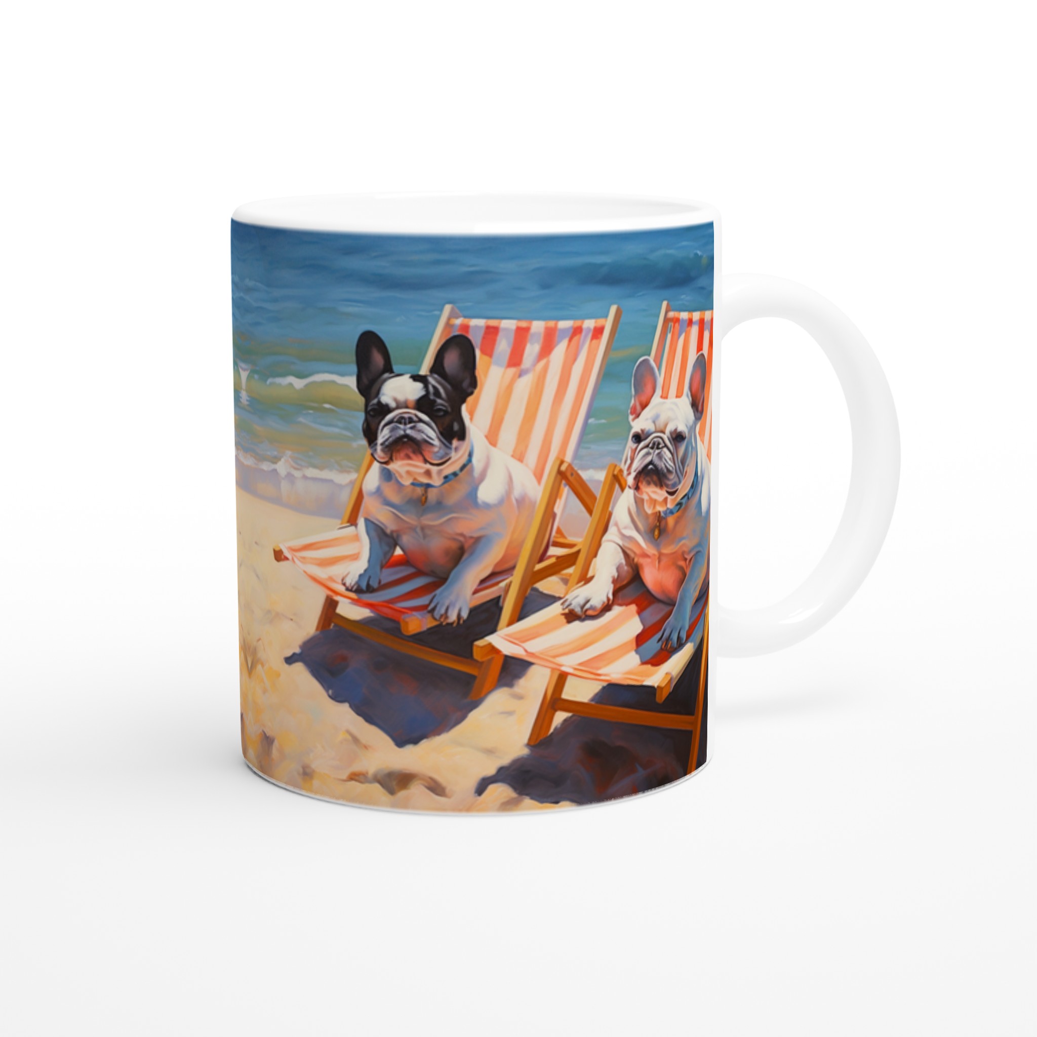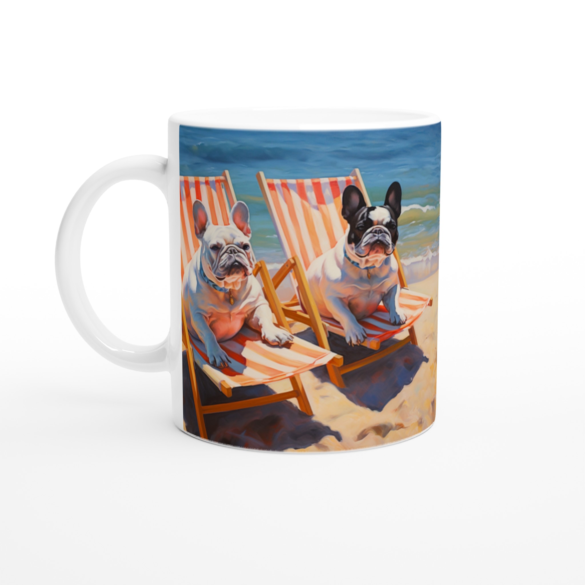 Föreställ dig en solig stranddag, en svalkande bris och din favoritmugg i handen. Den här charmiga keramiska muggen, prydd med två ljuvliga franska bulldoggar som slappar i solstolar vid havet, förvandlar varje sipp till en minisemester. Den unika, konstnärliga designen fångar den avslappnade strandviben perfekt och blir snabbt en favorit för morgonkaffet, kvällens varma choklad eller när du bara vill njuta av en kopp te.