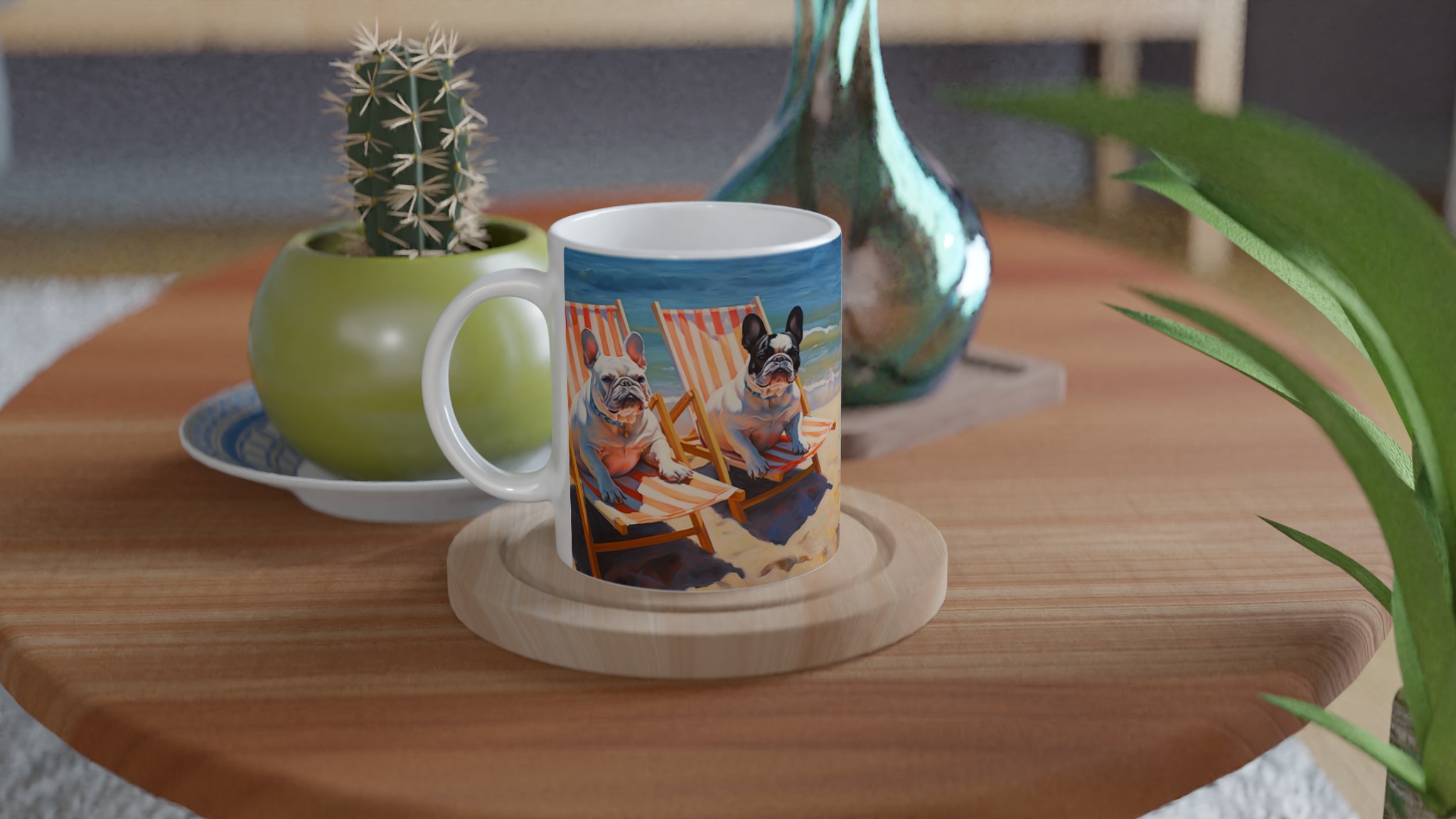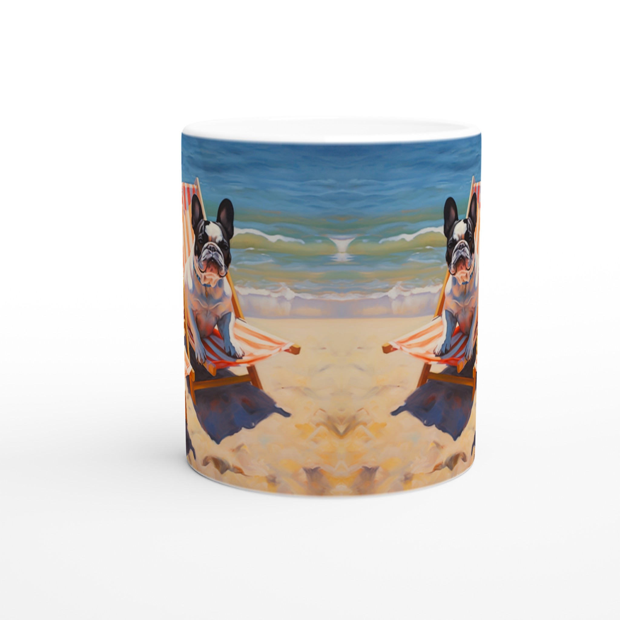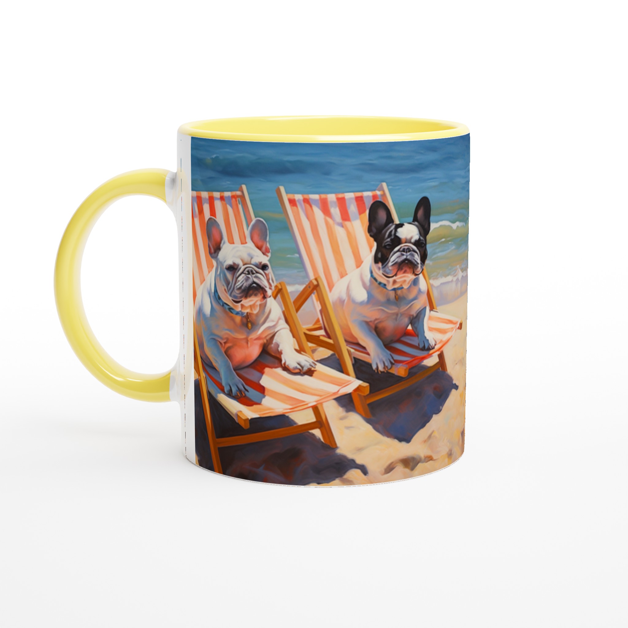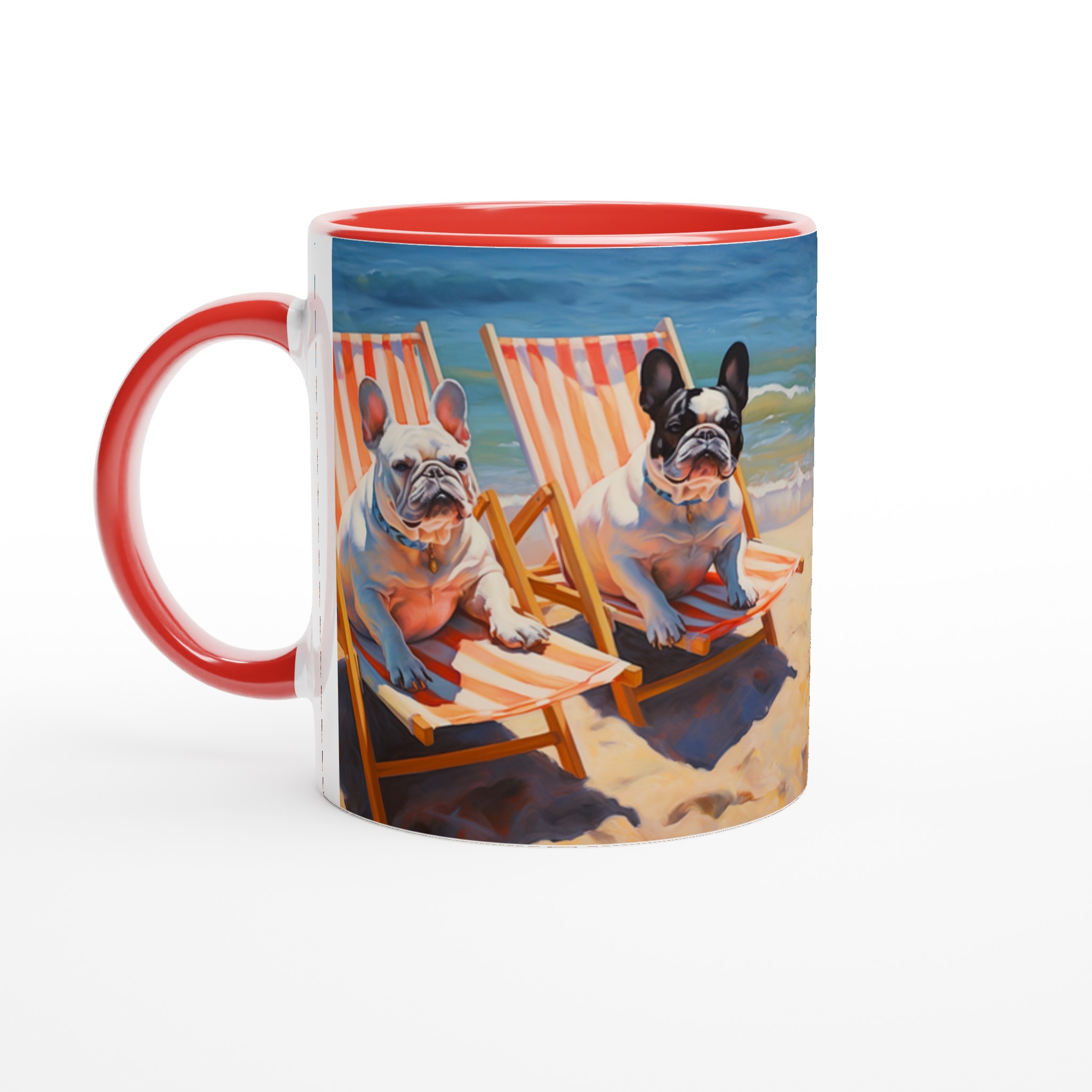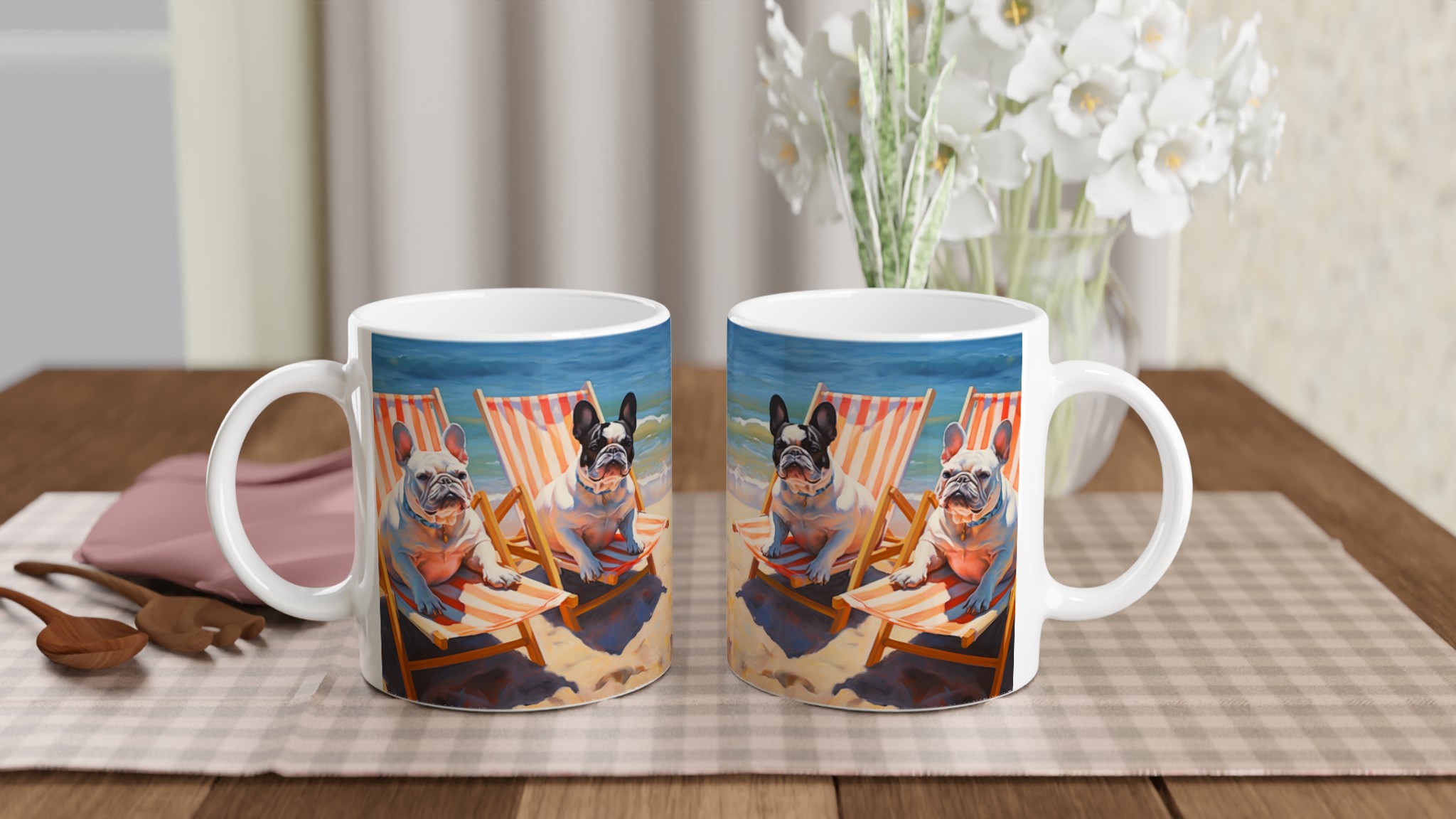 Föreställ dig en solig stranddag, en svalkande bris och din favoritmugg i handen. Den här charmiga keramiska muggen, prydd med två ljuvliga franska bulldoggar som slappar i solstolar vid havet, förvandlar varje sipp till en minisemester. Den unika, konstnärliga designen fångar den avslappnade strandviben perfekt och blir snabbt en favorit för morgonkaffet, kvällens varma choklad eller när du bara vill njuta av en kopp te.