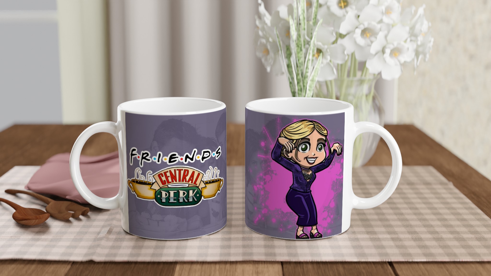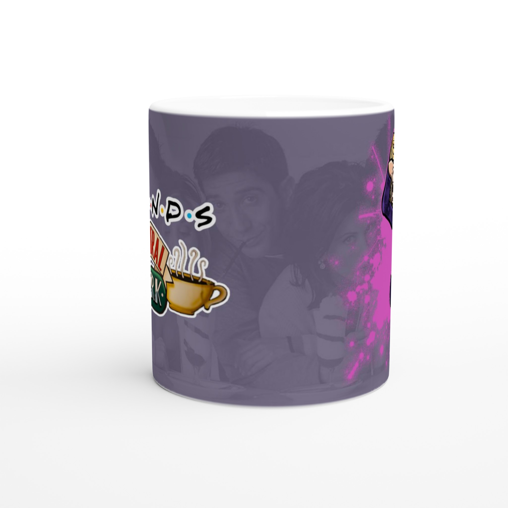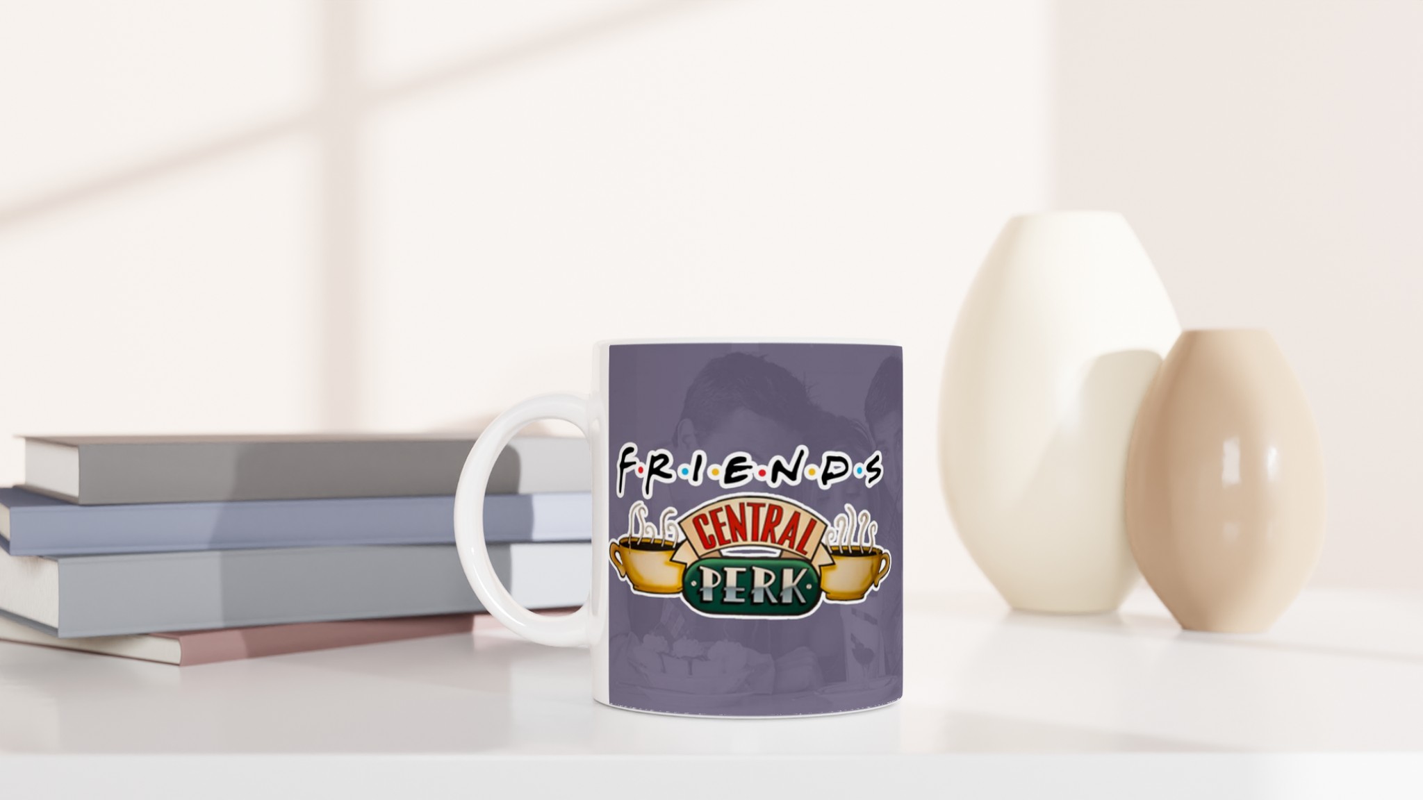 Den blanka vita ytan ser till att trycken framhävs med klara och levande färger, som håller sig fina även efter många turer i mikron och diskmaskinen. Muggen är inte bara praktisk – den är också en uppskattad present till familj, vänner eller kollegor, särskilt till den Friends-älskare som har allt. En enkel men personlig gåva som alltid kommer till användning!