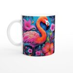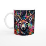 Lyft din vardagsrutin med denna unikt designade keramiska mugg, prydd med ett levande konstverk av en giraff omgiven av en explosion av färgglada blommor. Denna mugg blir snabbt en favorit, perfekt för morgonkaffet, kvällens varma choklad eller när du bara vill njuta av en kopp te i godan ro. Den blanka vita ytan låter de intensiva färgerna, från djupa lila nyanser till klara gula och rosa toner, verkligen komma till sin rätt och behålla sin lyster även efter otaliga turer i mikron och diskmaskinen.