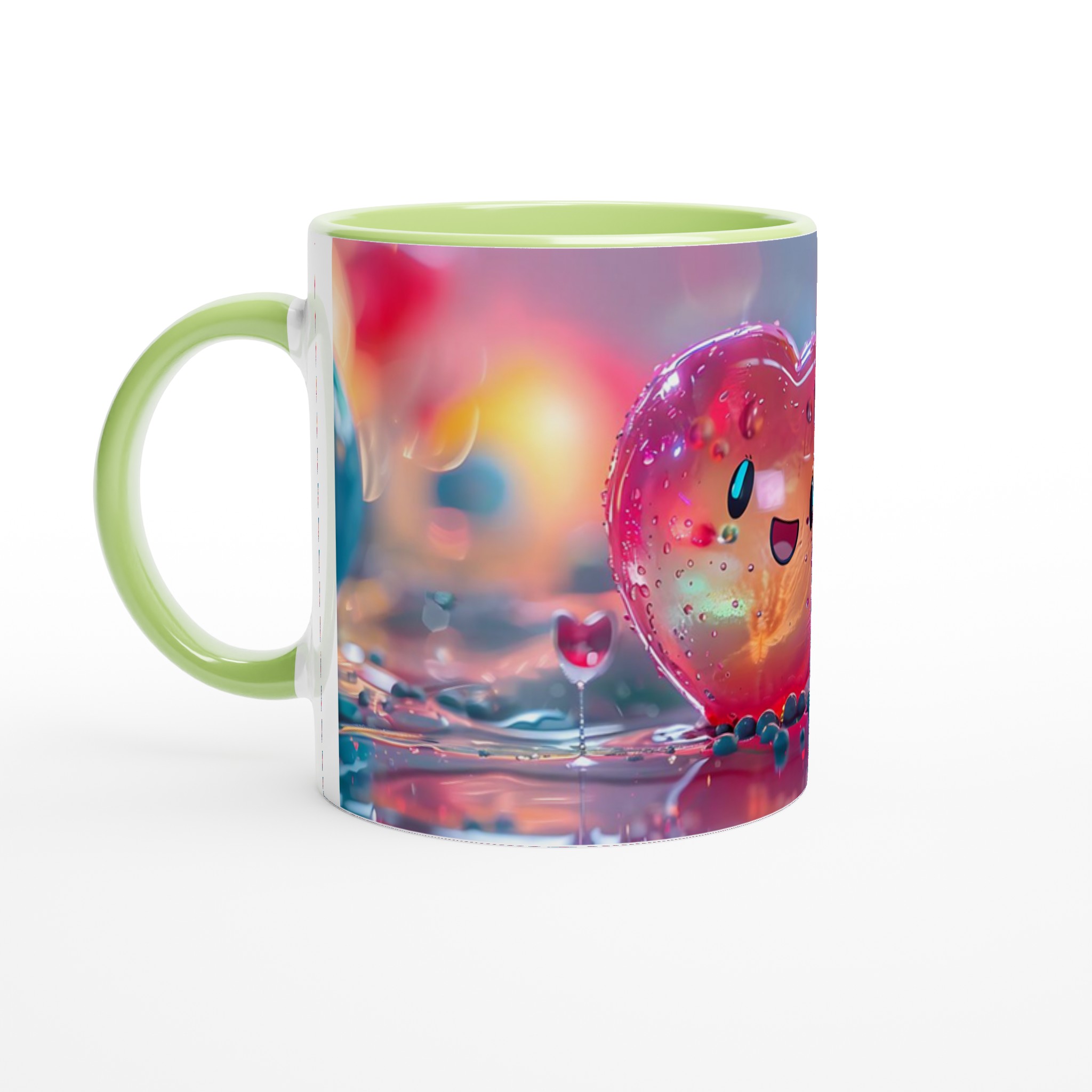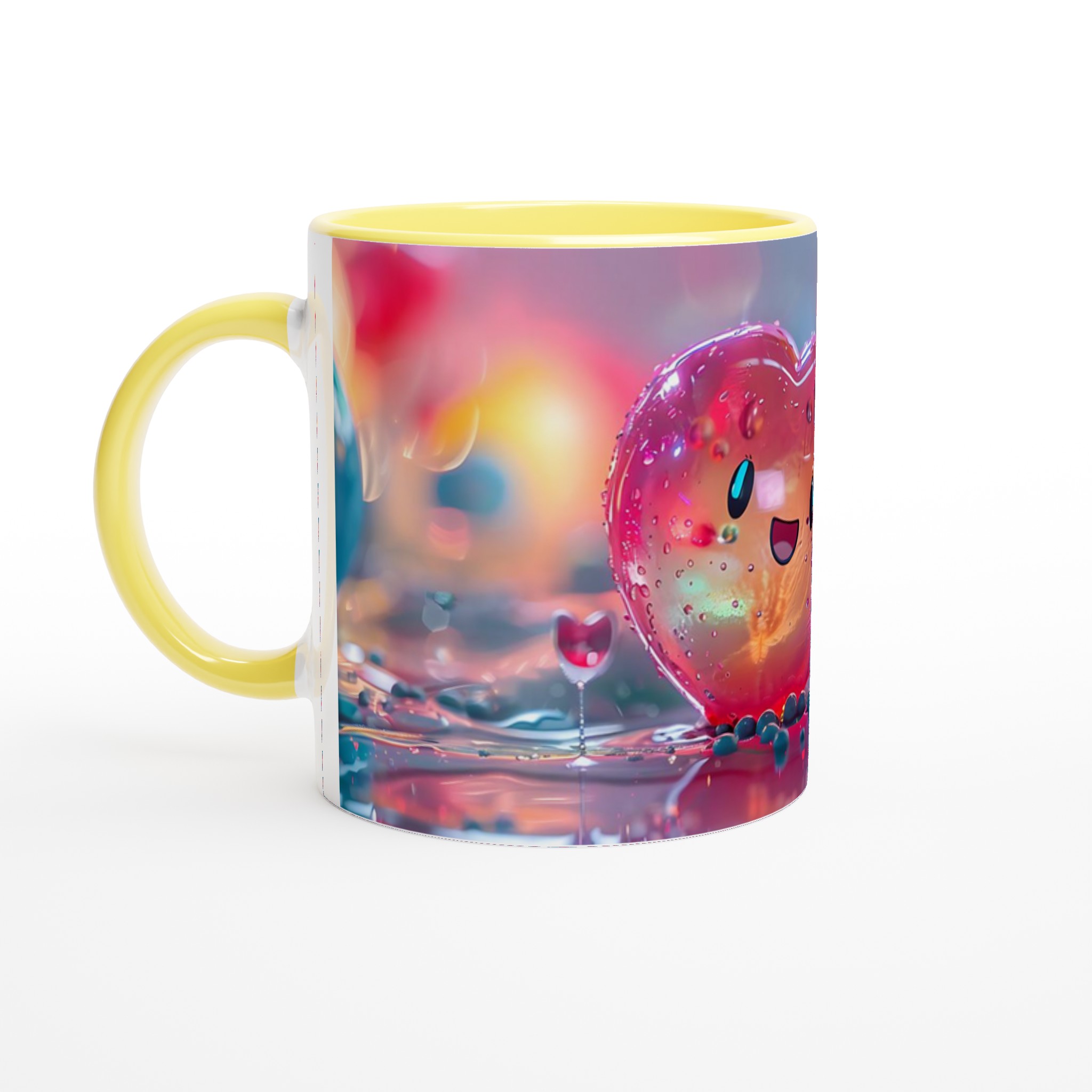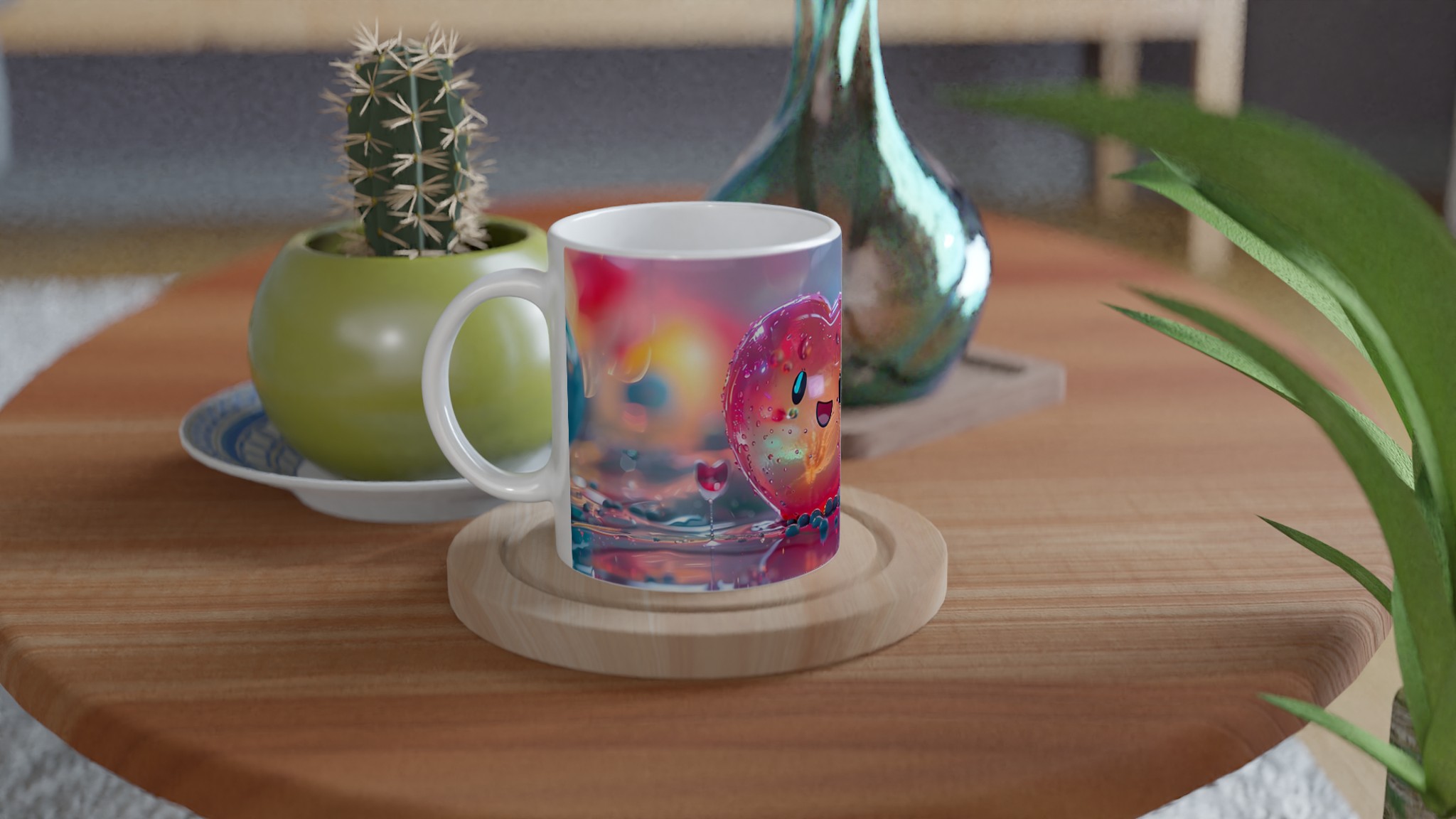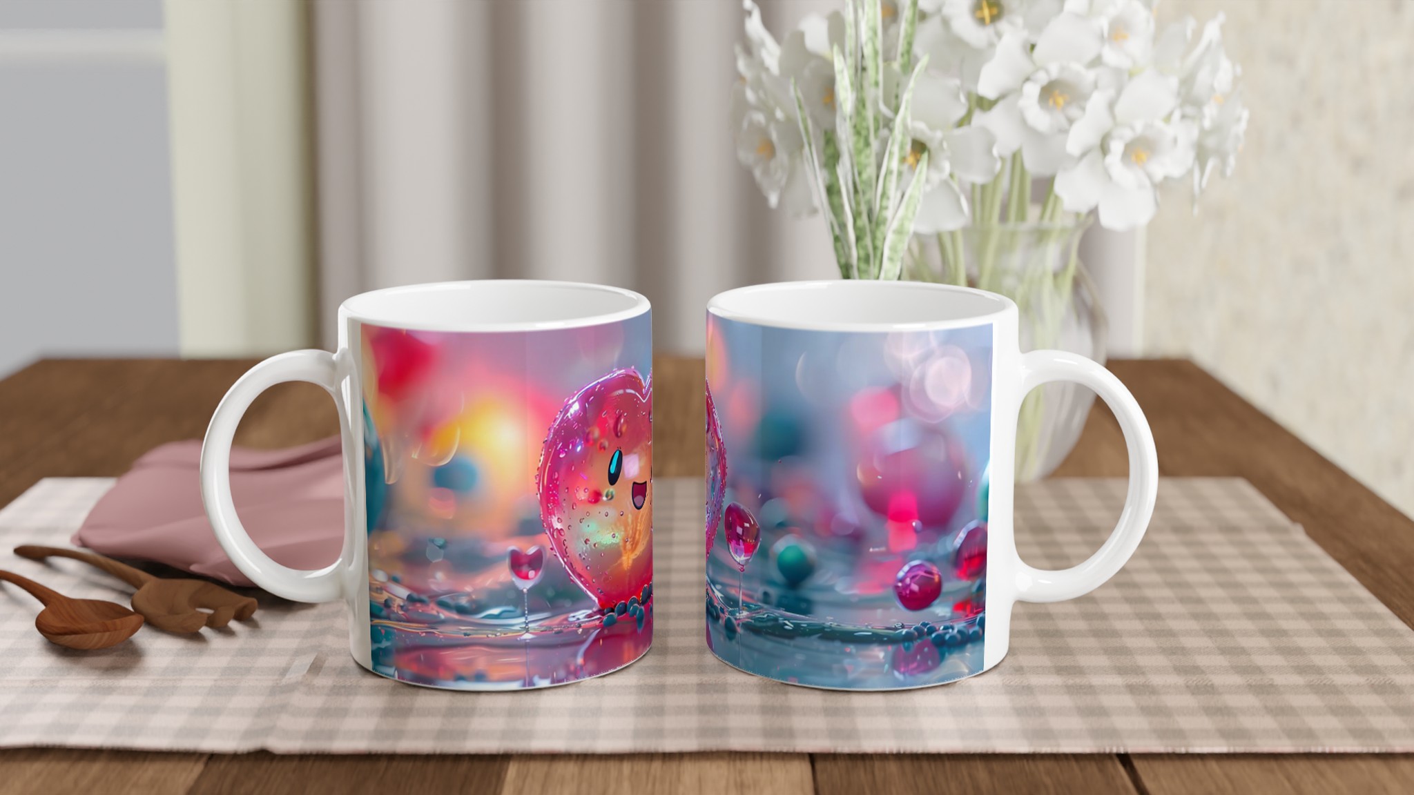 Denna livfulla keramiska mugg är mer än bara en kopp – den är en daglig dos av glädje! Inspirerad av bildens lekfulla bubbelhjärta och dess drömska färgpalett, blir denna mugg snabbt en vardagsfavorit som lyser upp varje ögonblick. Perfekt för morgonkaffet, kvällens varma choklad eller när du bara vill njuta av en kopp te med ett leende. Den blanka ytan får trycken att framhävas med klara och levande färger, som håller sig fina även efter många turer i mikron och diskmaskinen.
