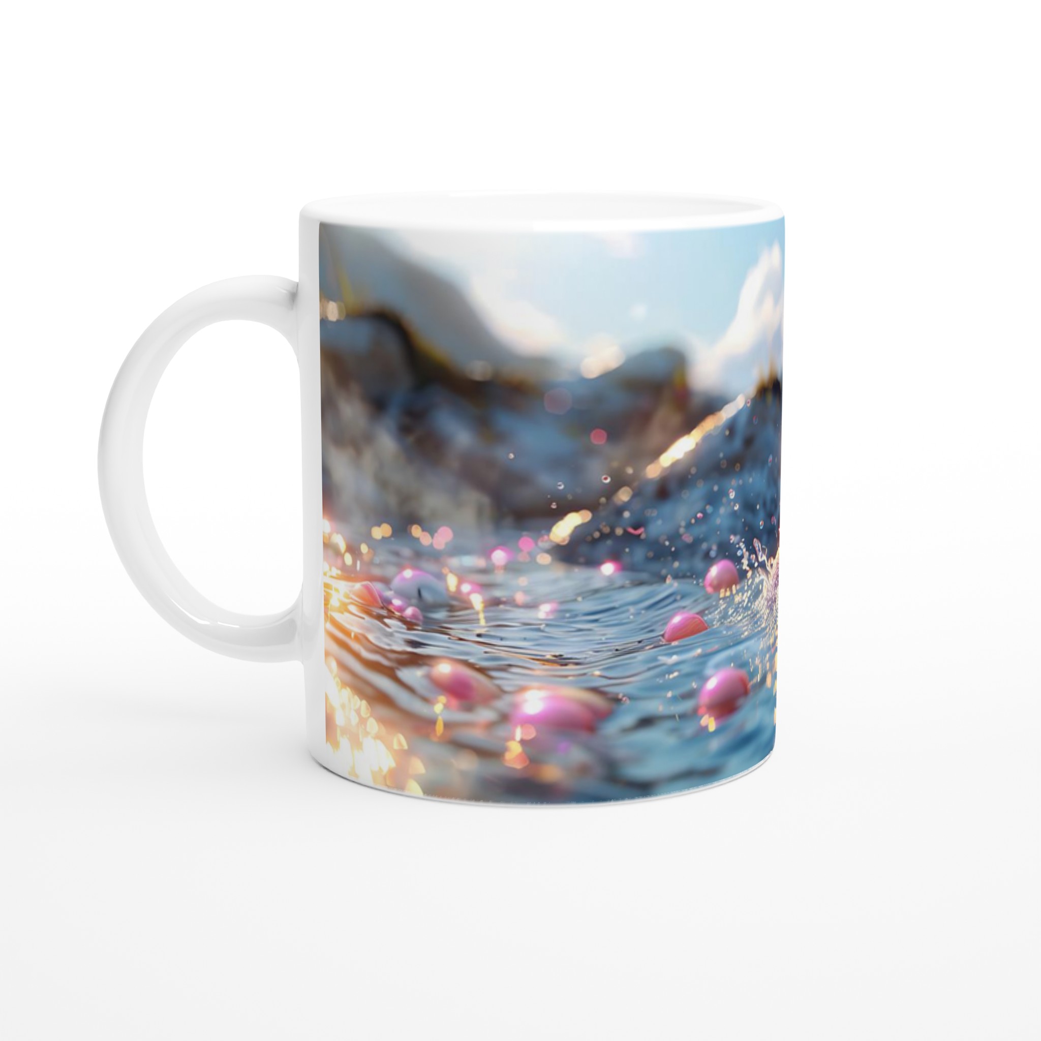 Inspirerad av den lekfulla charmen hos en bubblande gelémonster i ett glittrande vattenlandskap, är denna mugg en explosion av färg och glädje. Den blanka vita ytan ger ett skarpt och levande tryck som verkligen sticker ut, oavsett om det är en personlig design, ett roligt citat eller en present till någon du tycker om.