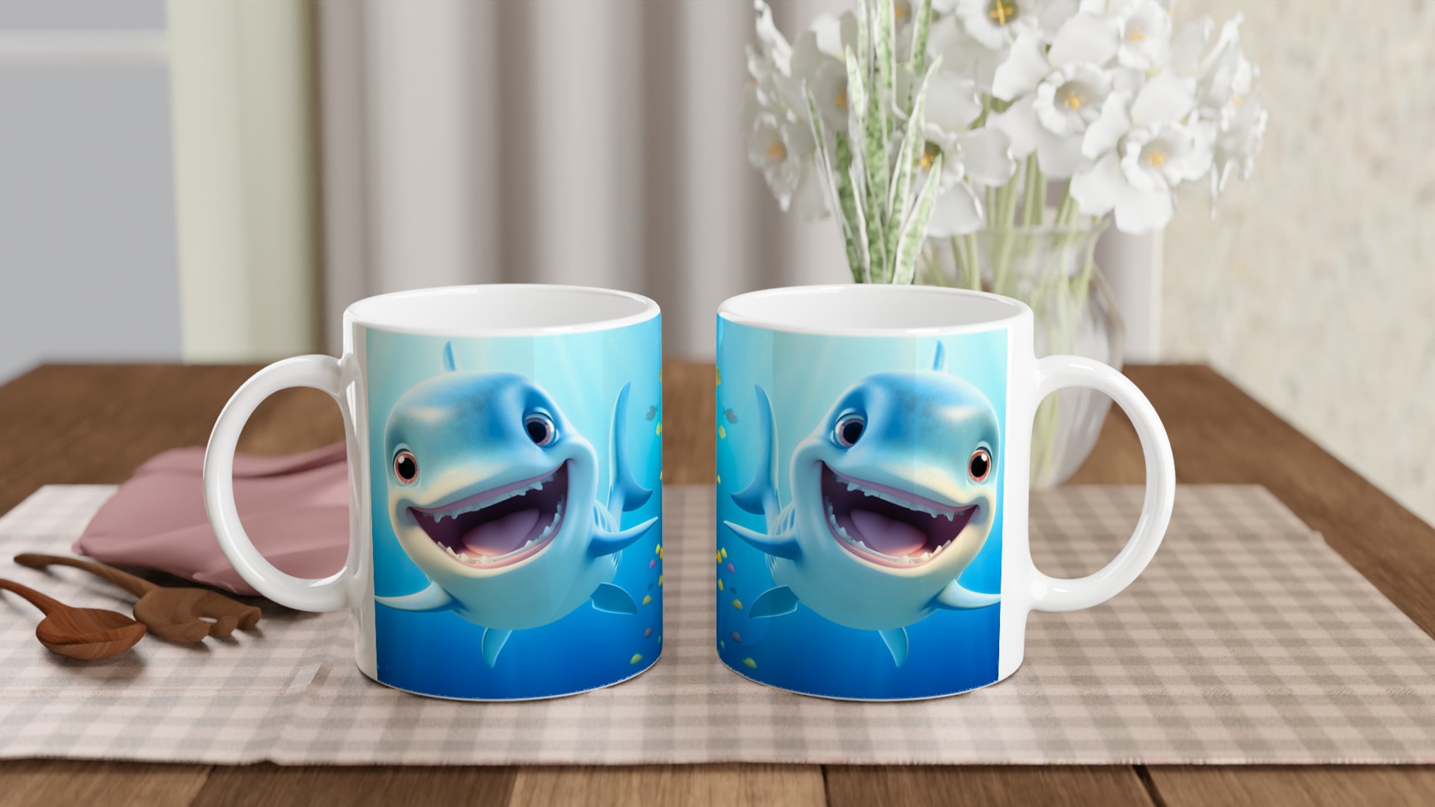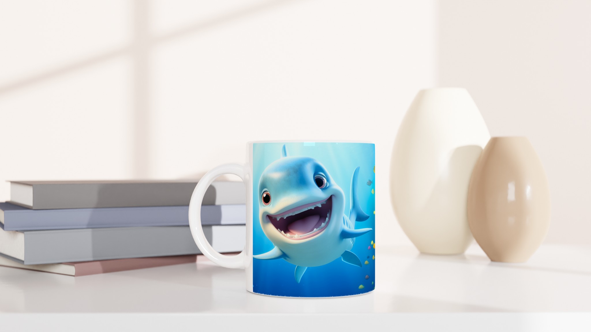 Lys upp din dag med den här förtrollande keramiska muggen, prydd med en lekfull och glad haj som garanterat sprider glädje. Varje klunk blir en liten utflykt till havets djup, perfekt för morgonkaffet, kvällens varma choklad eller när du bara vill njuta av en kopp te. Den blanka ytan framhäver hajens livliga färger, som håller sig fina även efter många turer i mikron och diskmaskinen.