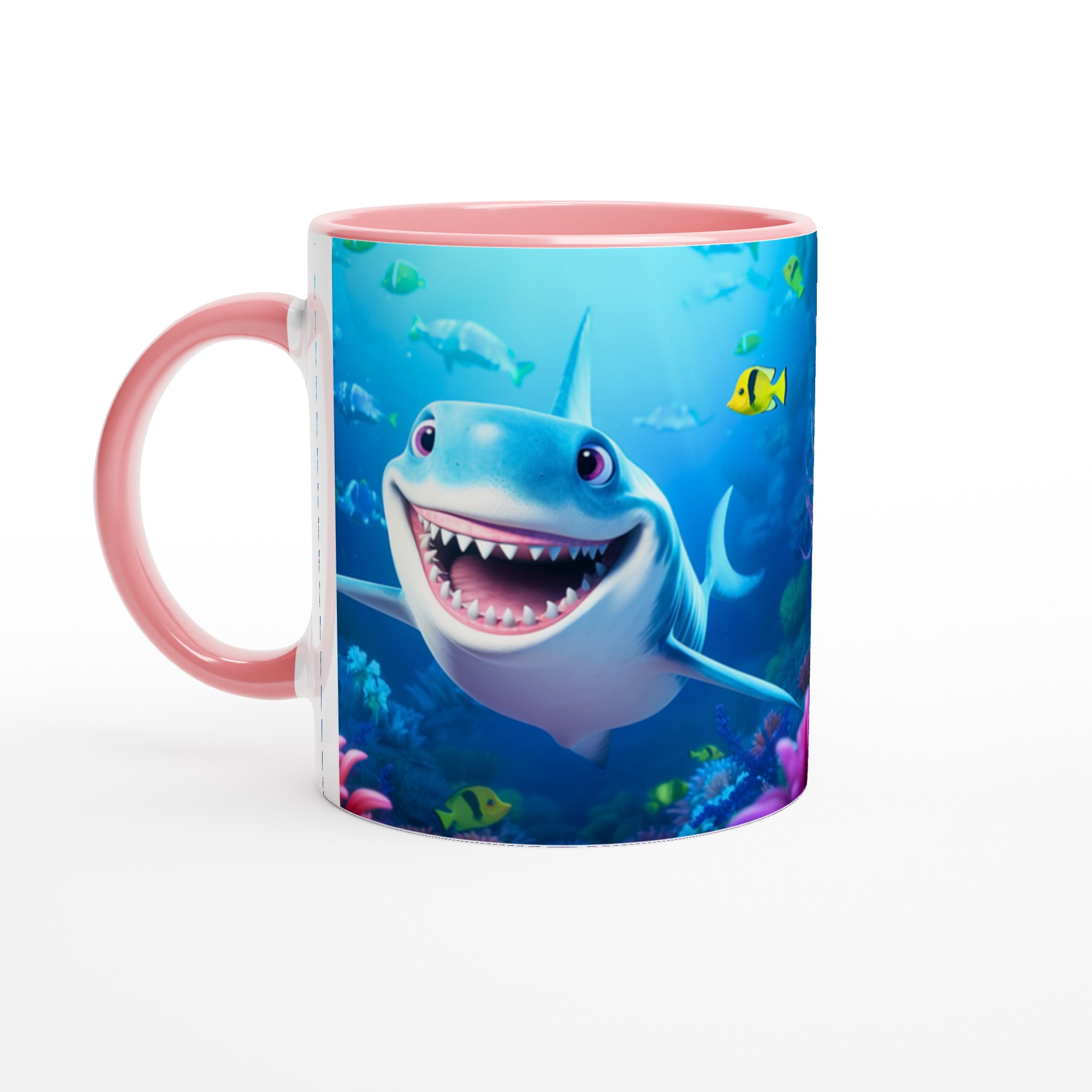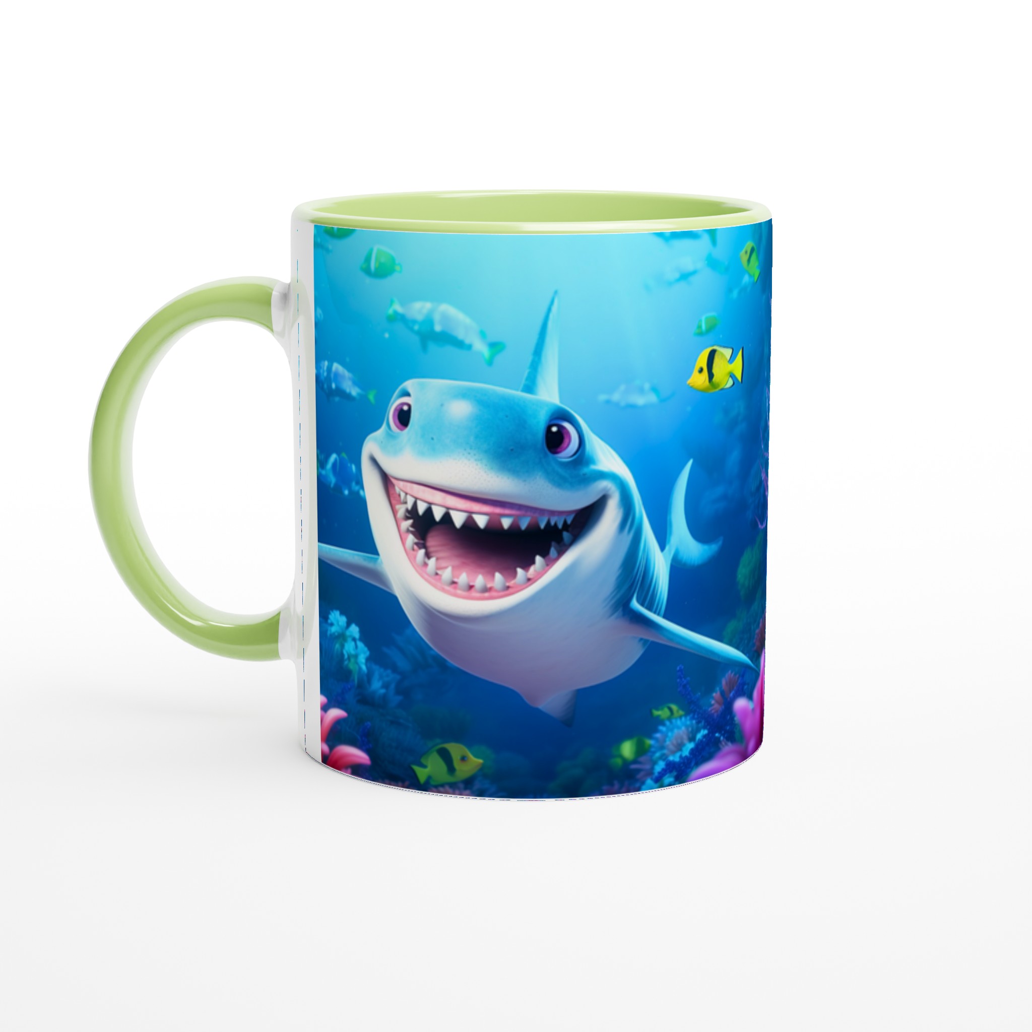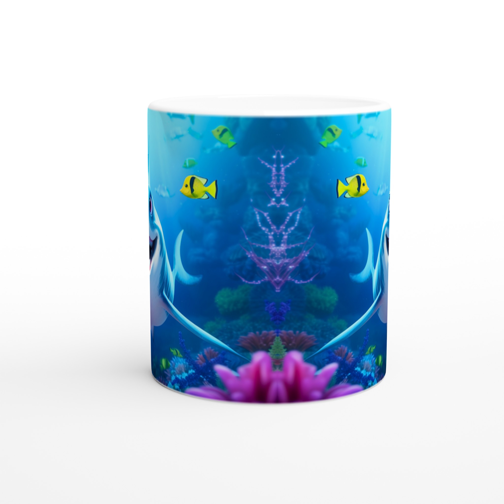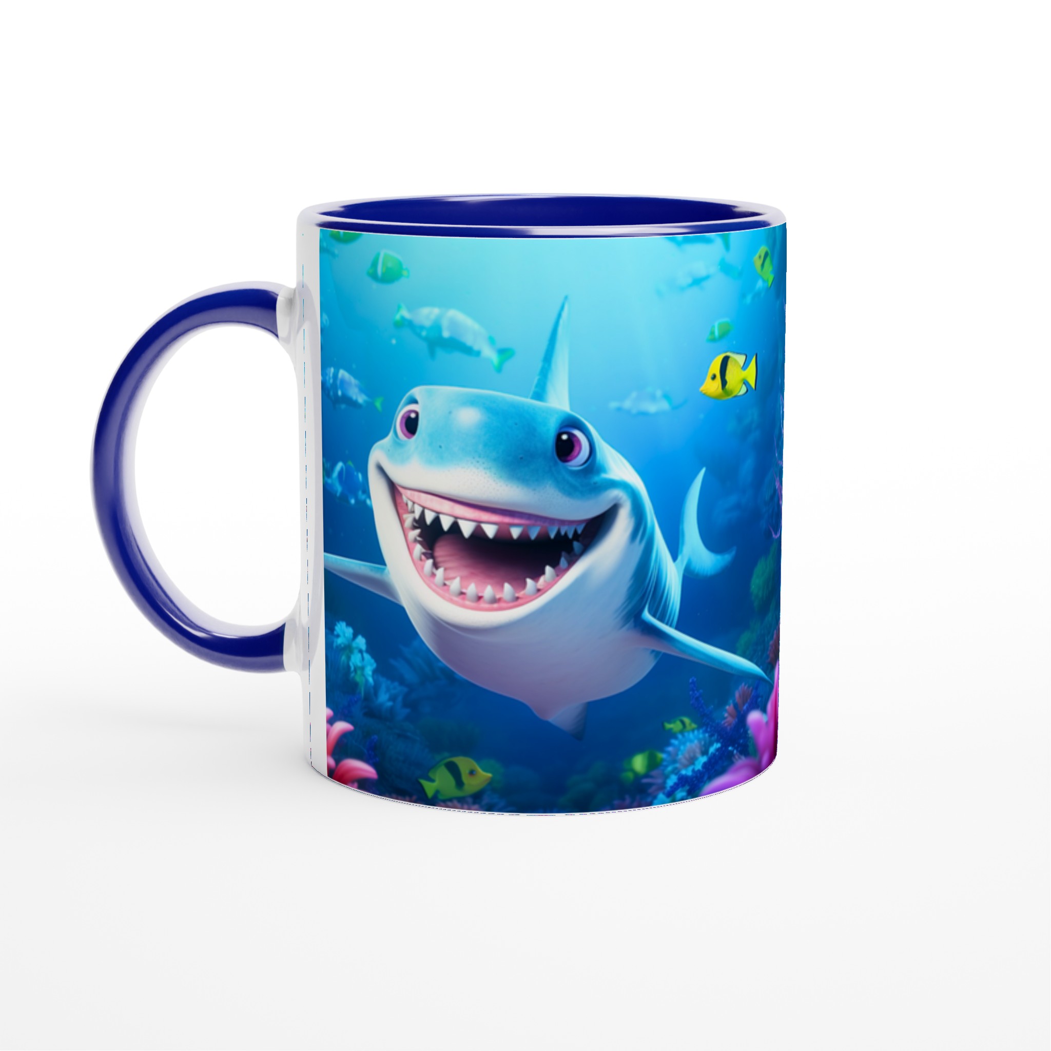 Dyk ner i en värld av glädje med vår ”Glad Haj” keramiska mugg! Denna mugg fångar den lekfulla charmen hos en tecknad haj i en livfull undervattensscen, komplett med färgglada koraller och simmande fiskar. Perfekt för morgonkaffet, kvällens varma choklad eller när du bara vill njuta av en kopp te, och låta dig inspireras av havets lugn och spänning.