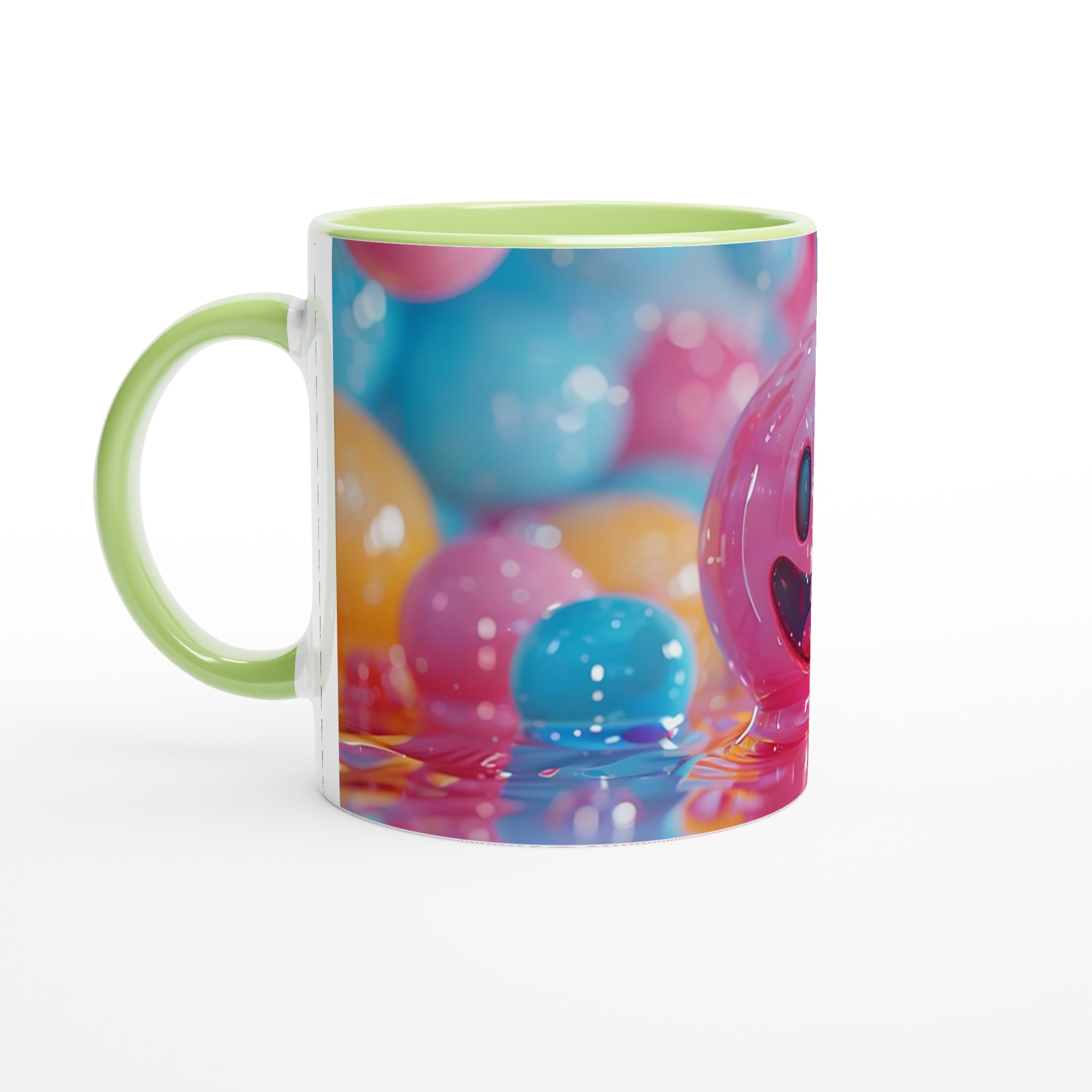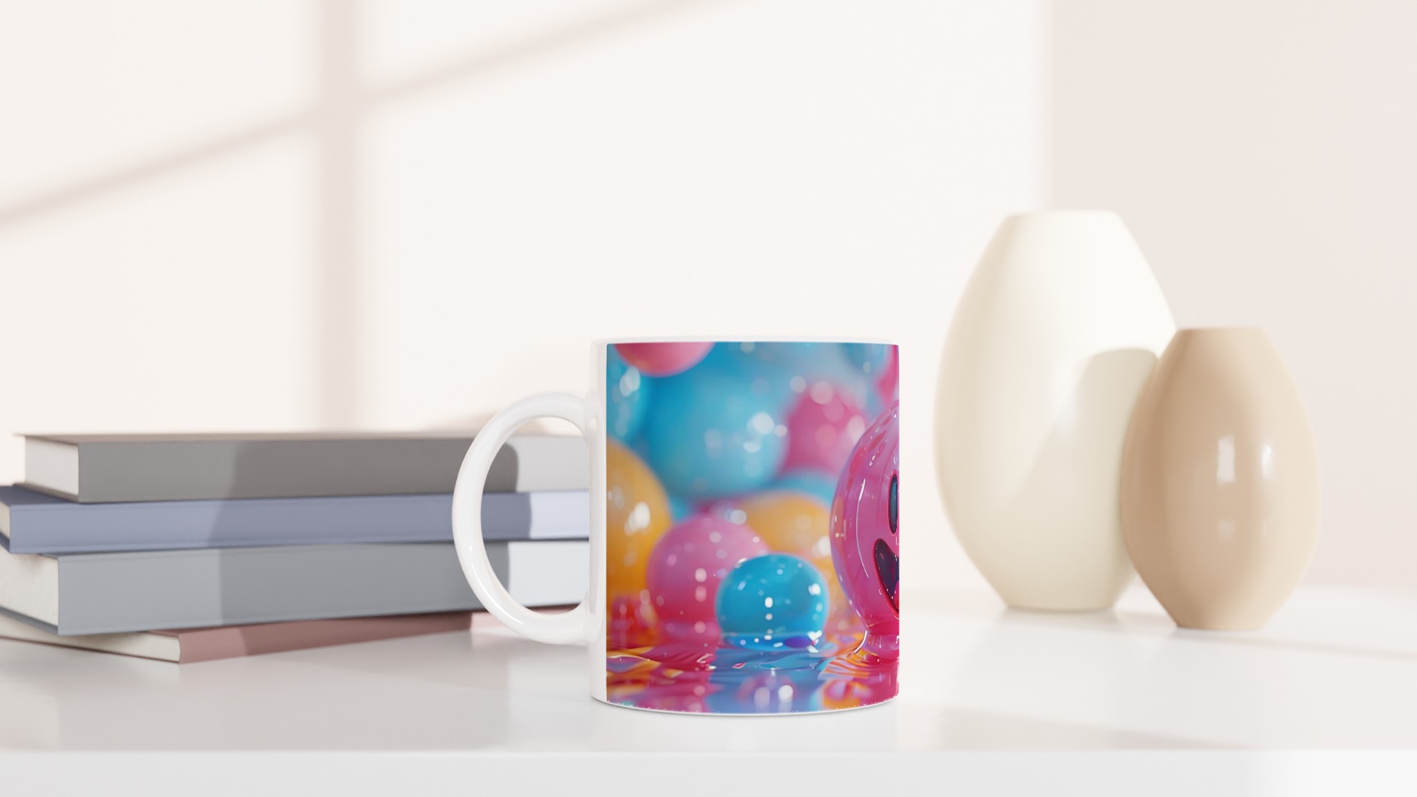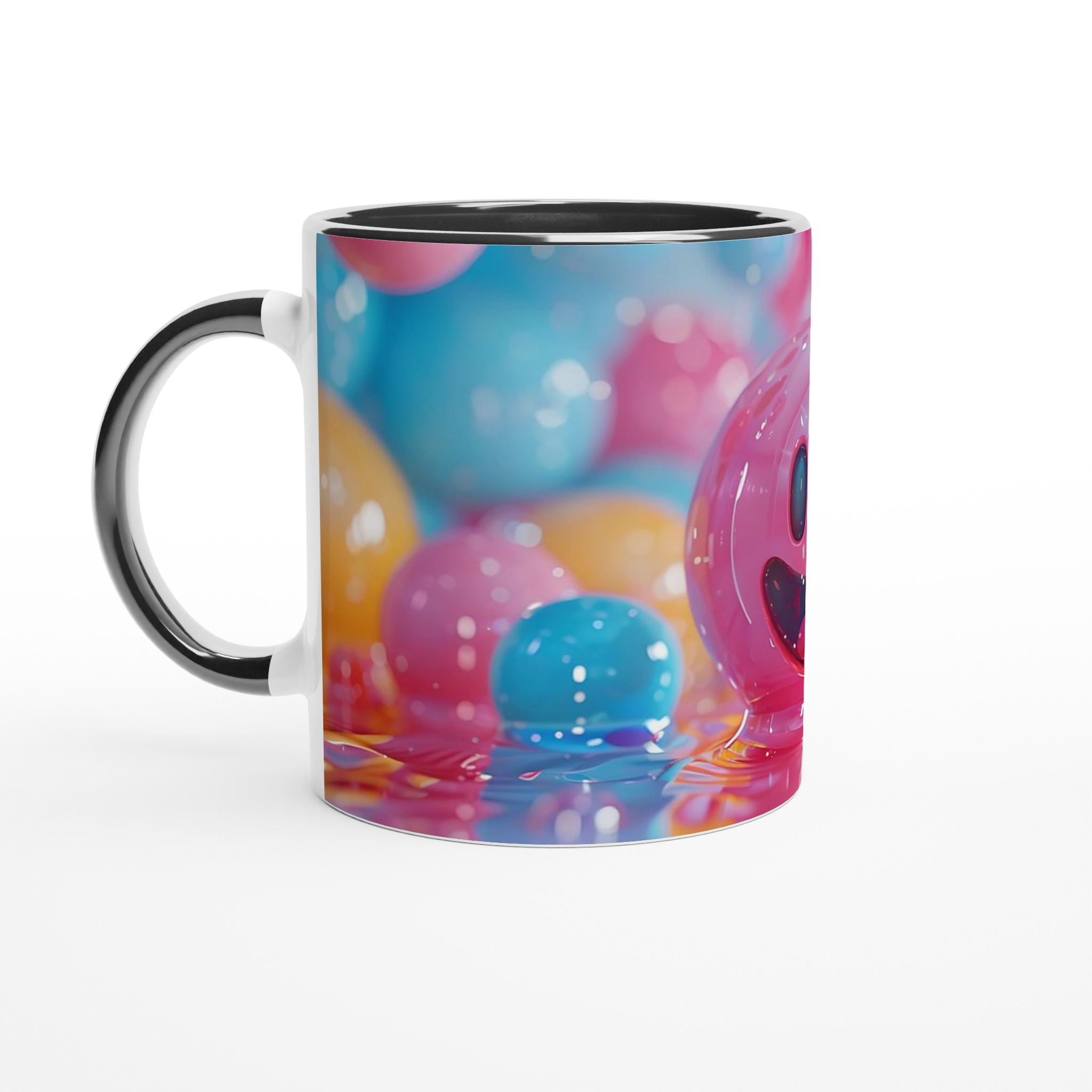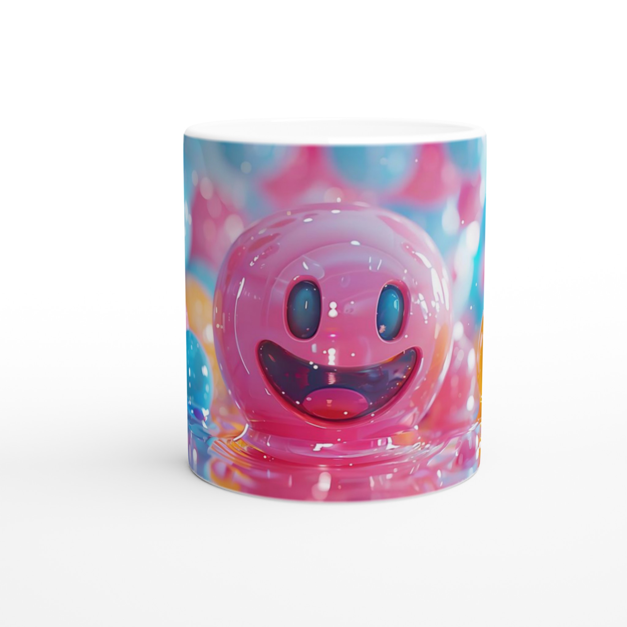 Lys upp din dag med vår glada keramikmugg! Denna charmiga mugg blir snabbt en favorit, perfekt för morgonkaffet, kvällens varma choklad eller när du bara vill njuta av en kopp te. Med sin blanka yta framhävs trycken med klara och levande färger som behåller sin lyster, även efter otaliga turer i mikron och diskmaskinen. Välj den färg som bäst speglar din personlighet och låt varje klunk bli en liten glädjestund.