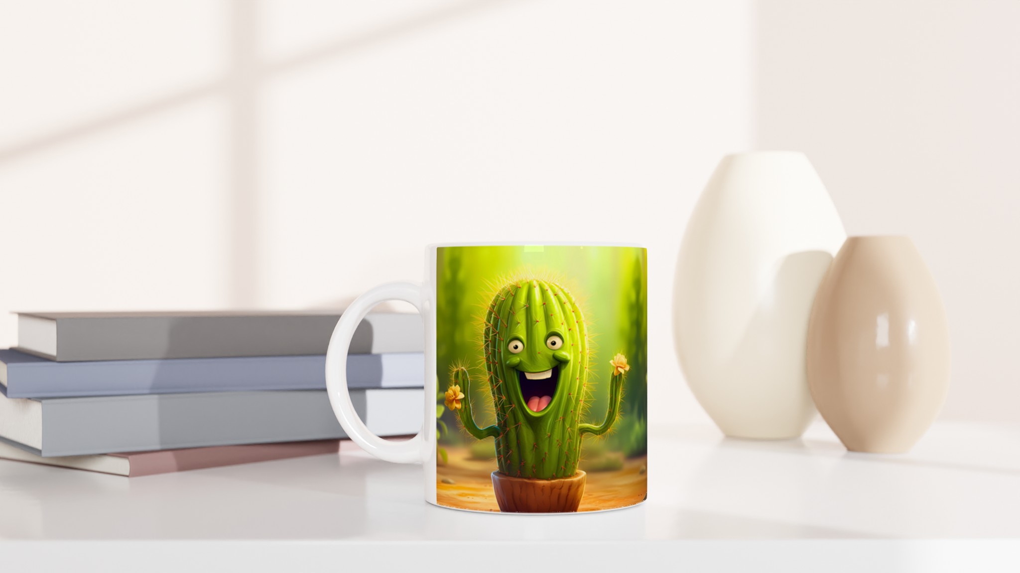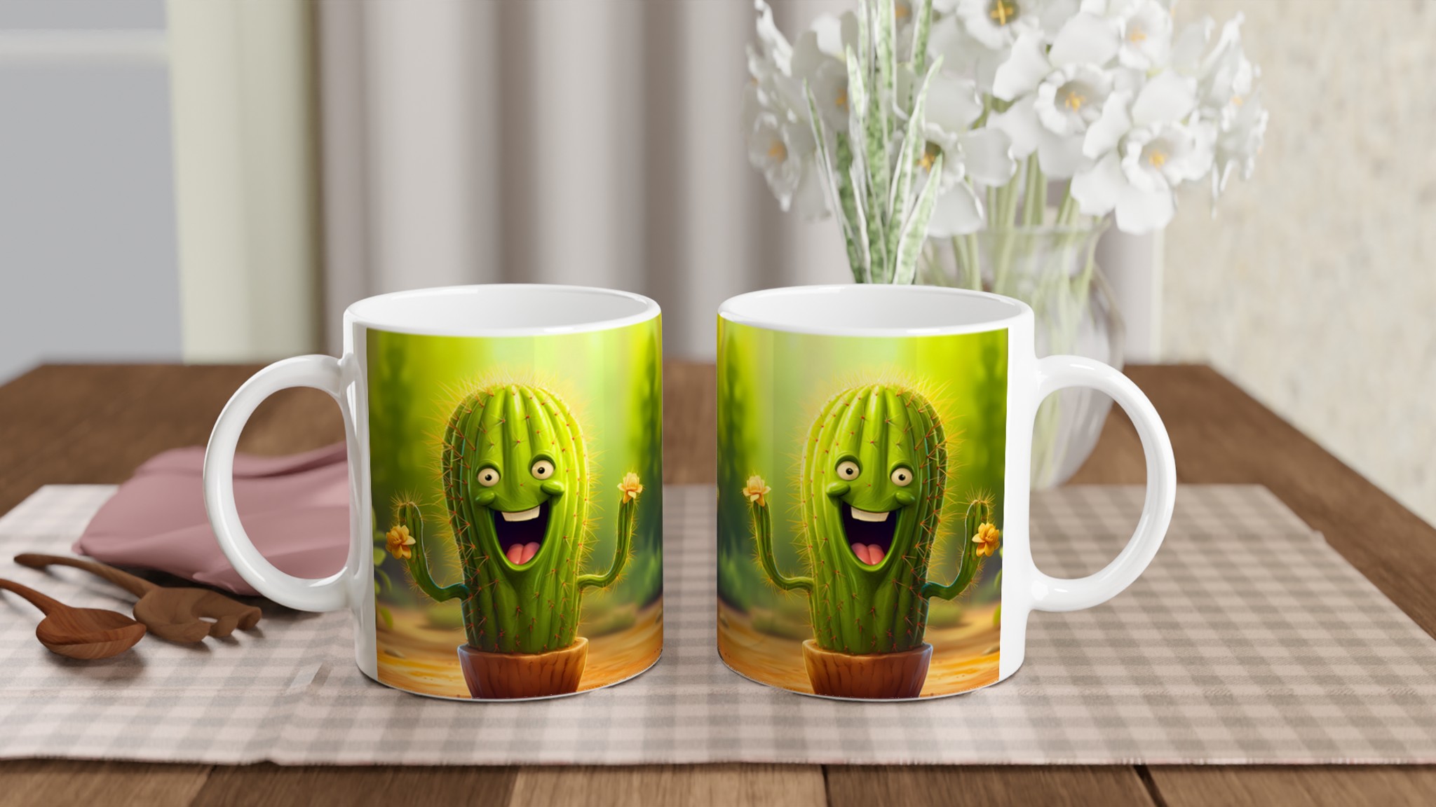 Starta dagen med ett leende med vår glada kaktusmugg! Den här stilrena keramiska muggen, prydd med en lekfull och charmig kaktus som sprider glädje, blir snabbt en vardagsfavorit. Perfekt för morgonkaffet, kvällens varma choklad eller när du bara vill njuta av en kopp te. Den blanka ytan får den livfulla kaktusbilden att framhävas med klara och levande färger, som håller sig fina även efter många turer i mikron och diskmaskinen.