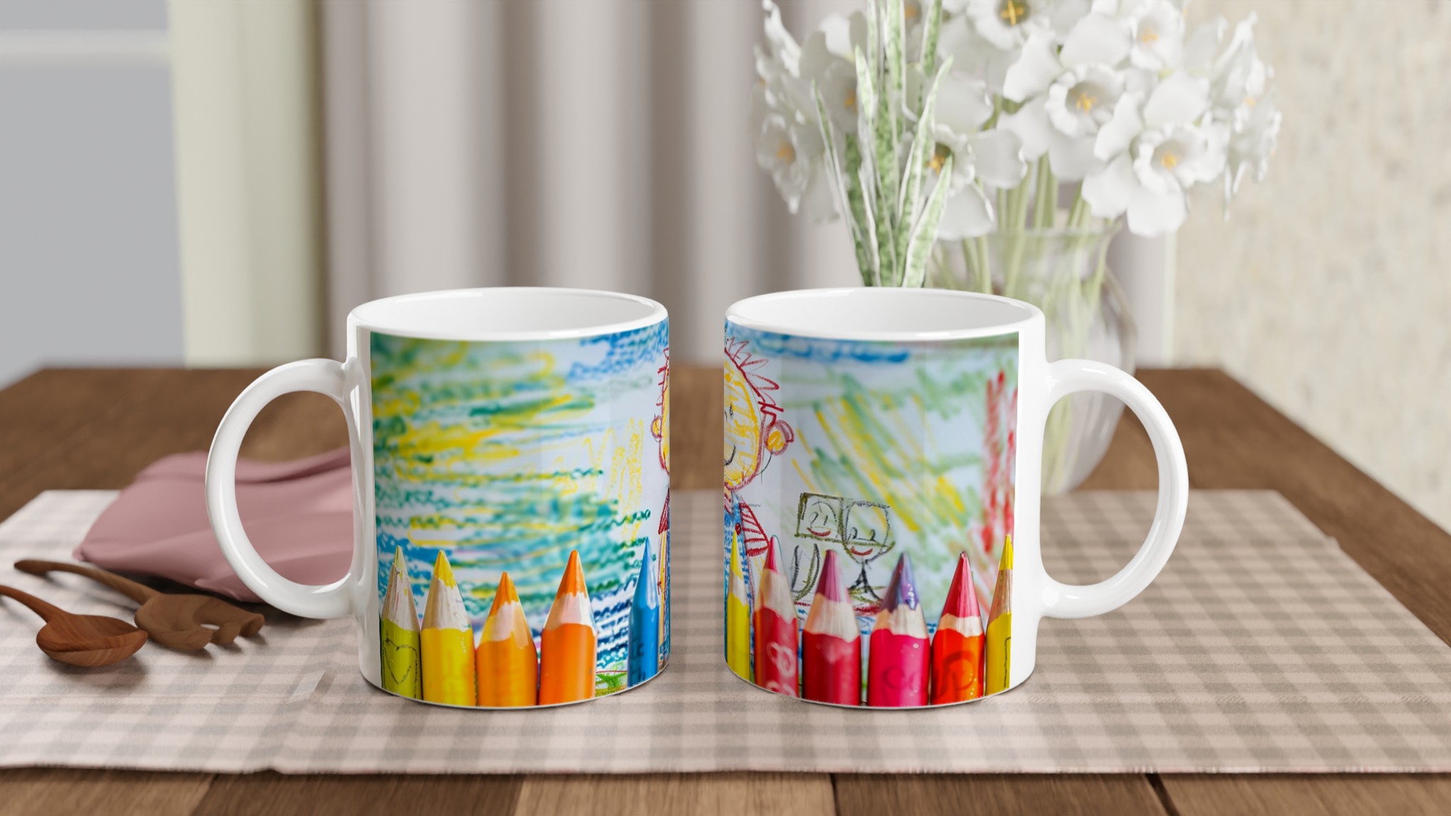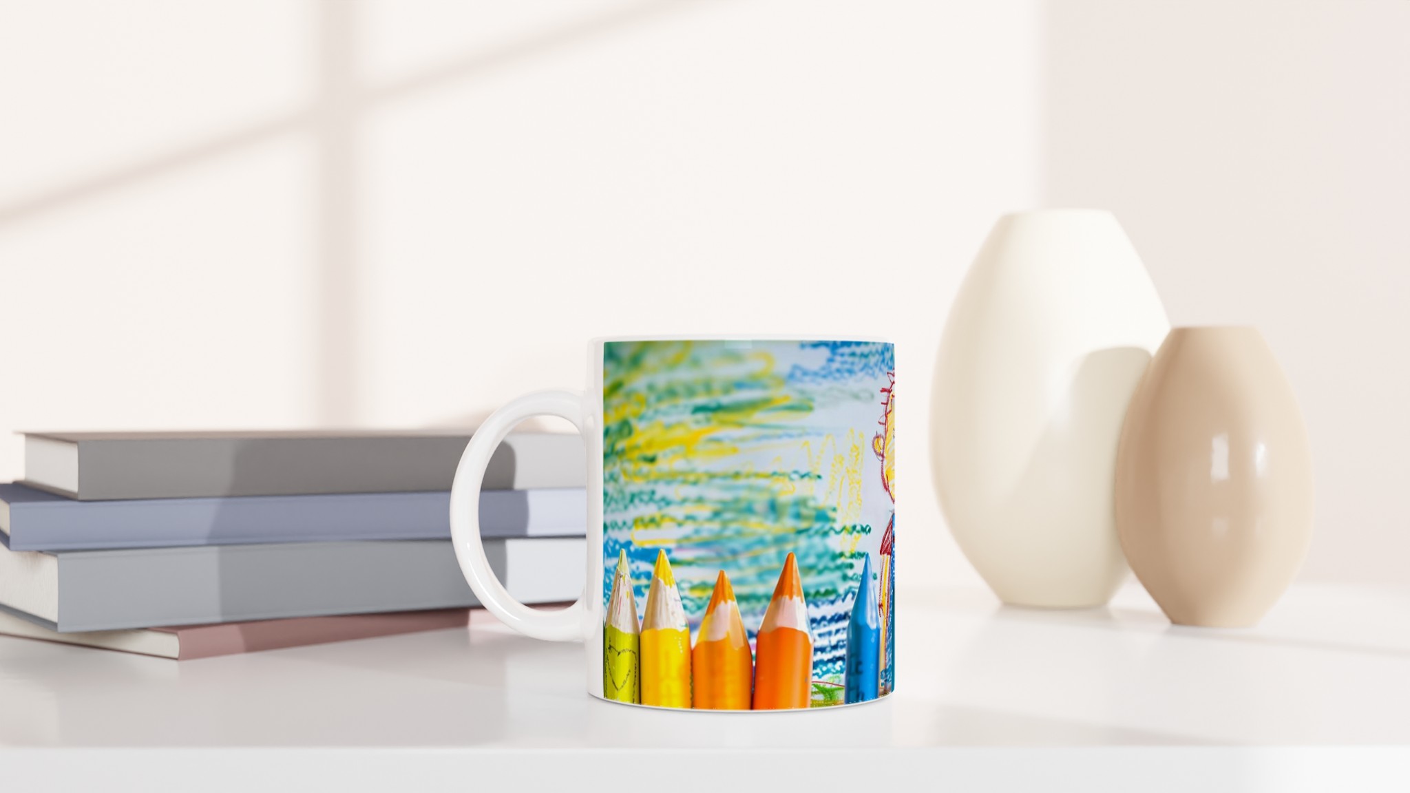 Låt ditt innersta barn skina igenom varje fika! Inspirerad av den lekfulla charmen i en barns teckning, fångar denna mugg den spontana glädjen och de klara, rena färgerna som gör varje ögonblick speciellt. Välj den nyans som speglar din personlighet – från klassiskt Ceramic White till energiska toner som Ceramic Yellow, Pink, Green, Red, Black eller Blue. Varje färgval förstärker trycket och skapar en unik upplevelse.
