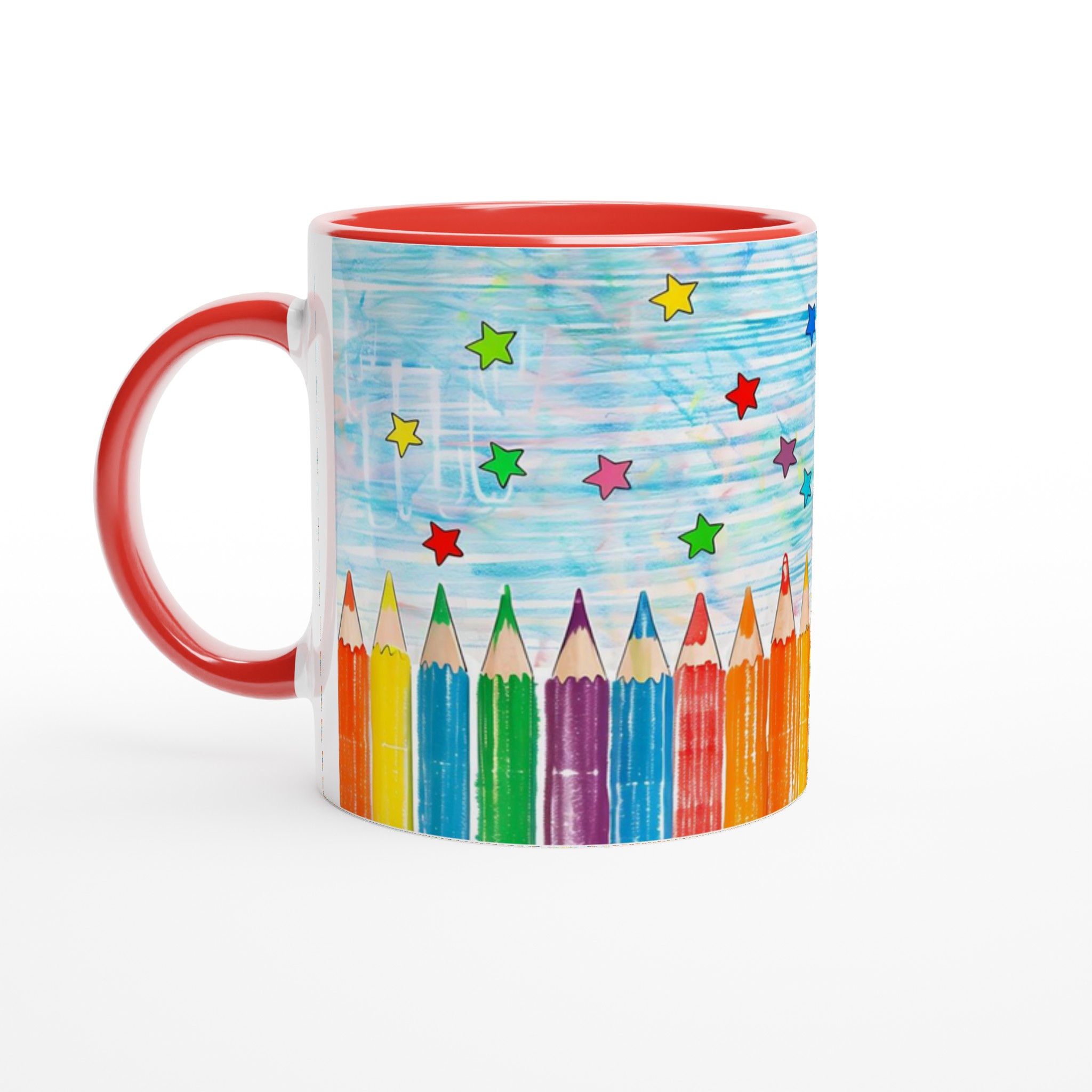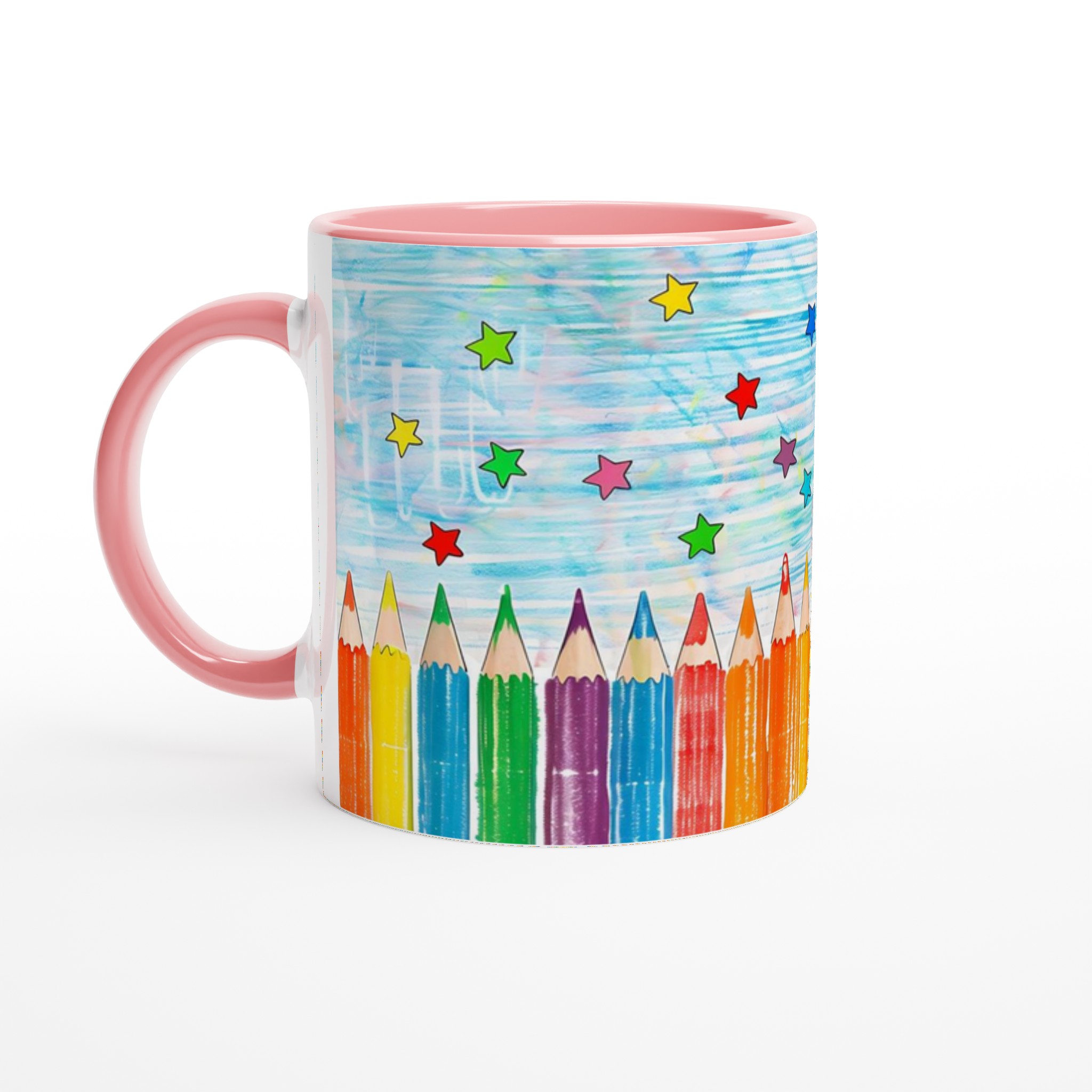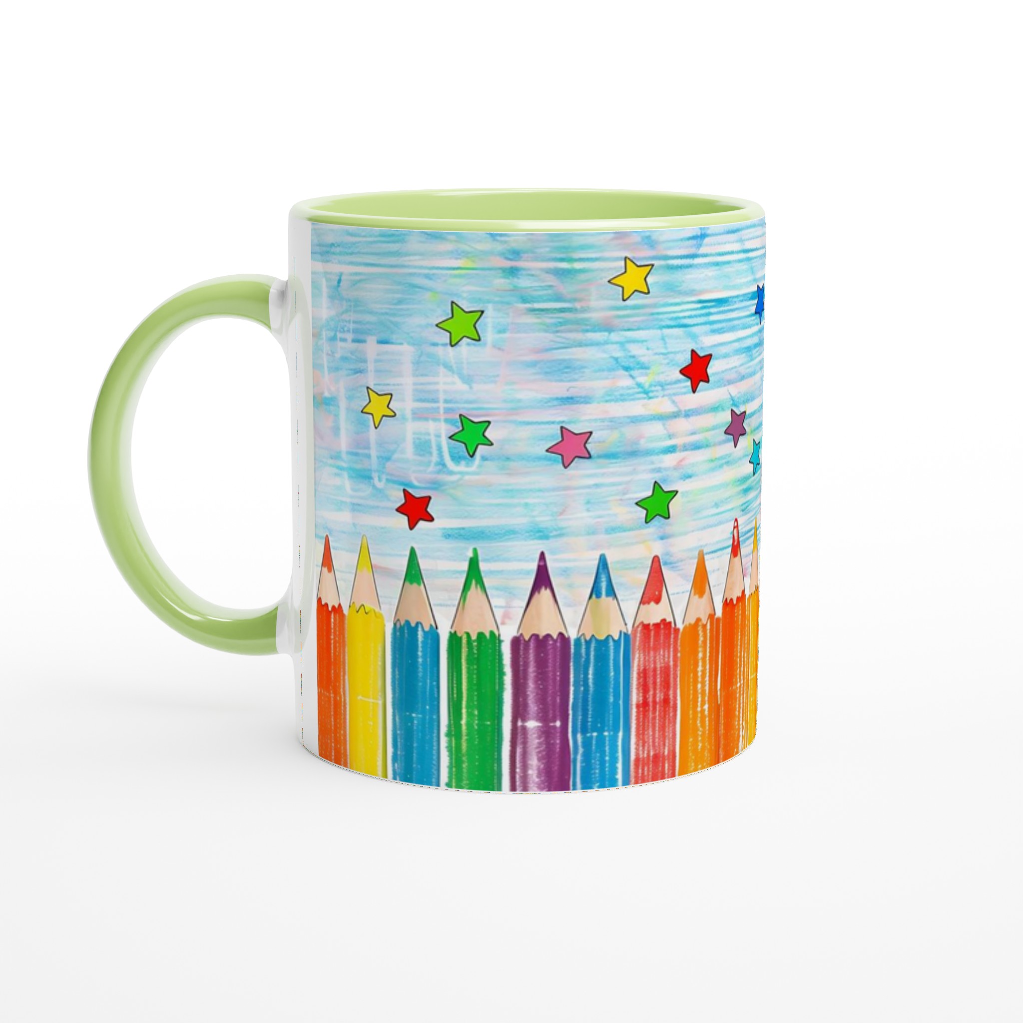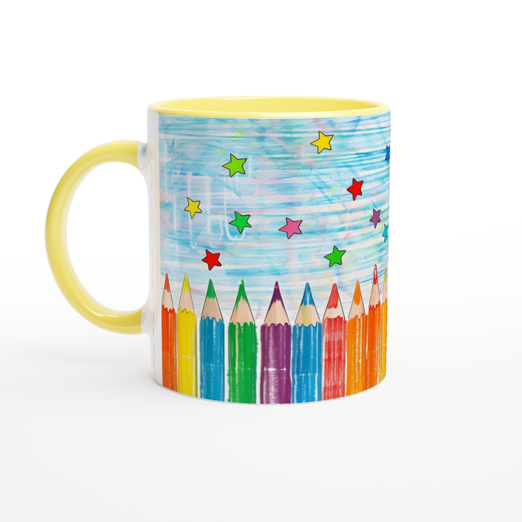 Väck barnasinnet med denna lekfulla keramiska mugg, prydd med en charmig design inspirerad av barns fantasifulla teckningar. Varje detalj, från de glada stjärnorna till den söta lilla flickan och de livfulla kritorna, skapar en känsla av glädje och nostalgi. Denna mugg blir snabbt en vardagsfavorit, perfekt för morgonkaffet, kvällens varma choklad eller när du bara vill njuta av en kopp te.