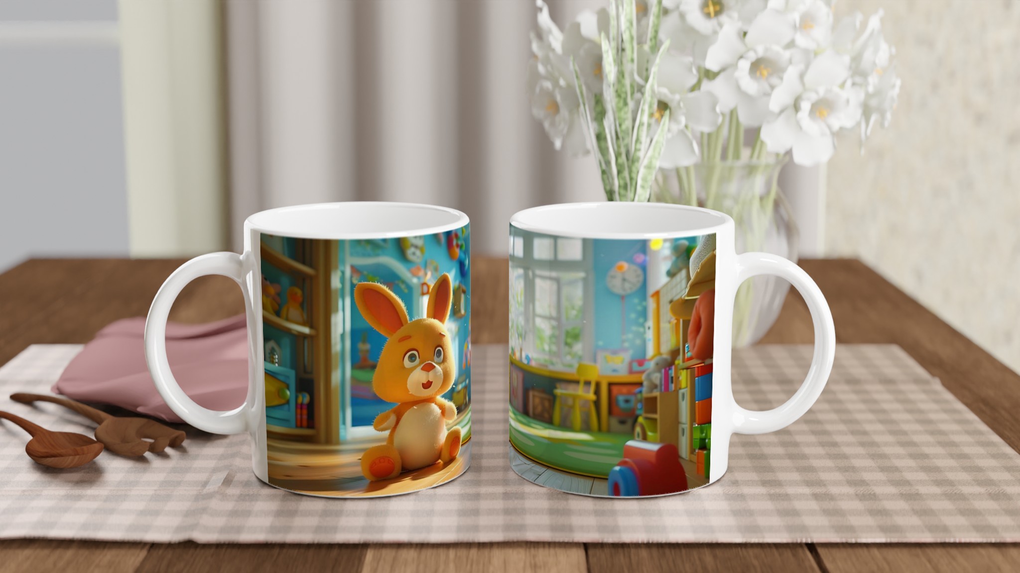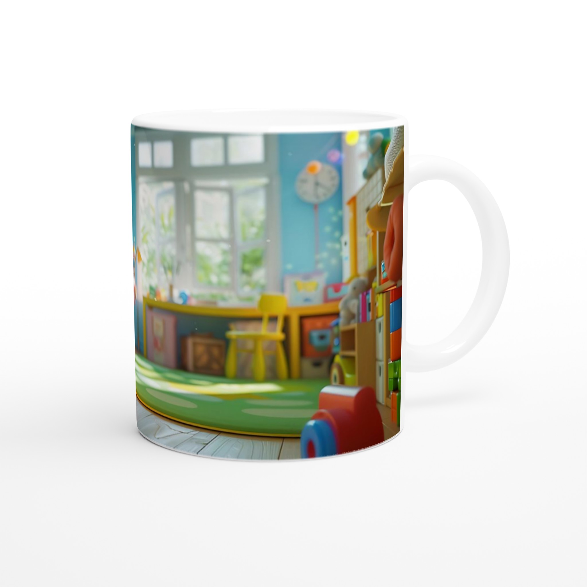 Lyft din fikastund med vår glädjefulla keramiska mugg, inspirerad av fantasifulla barnrum och soliga lekmorgnar. Den här stilrena muggen blir snabbt en vardagsfavorit, perfekt för morgonkaffet, kvällens varma choklad eller när du bara vill njuta av en kopp te. Med sin blanka yta framhävs trycken med klara och levande färger, som håller sig fina även efter många turer i mikron och diskmaskinen – precis som de lekfulla färgerna i ett barnrum.