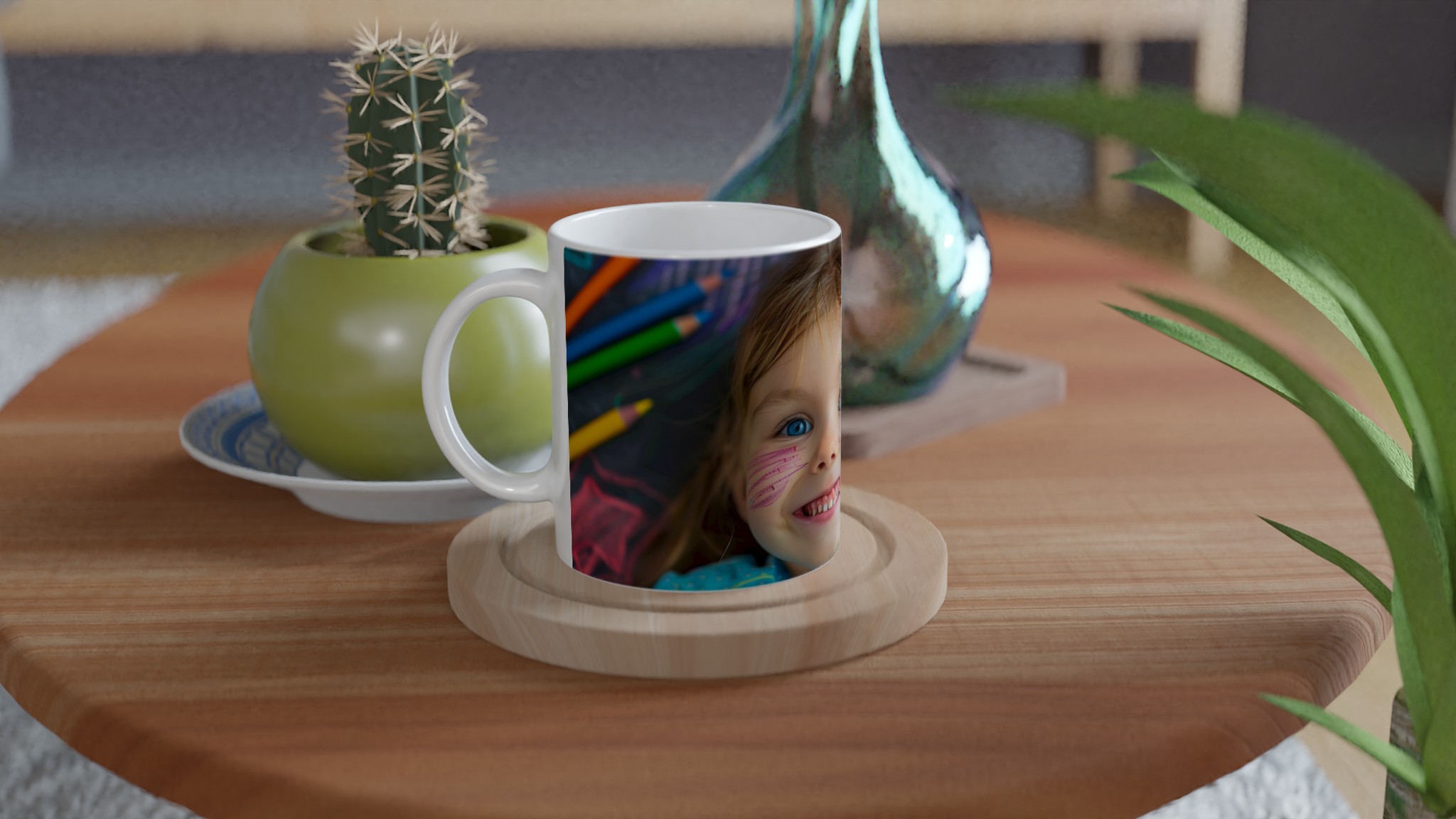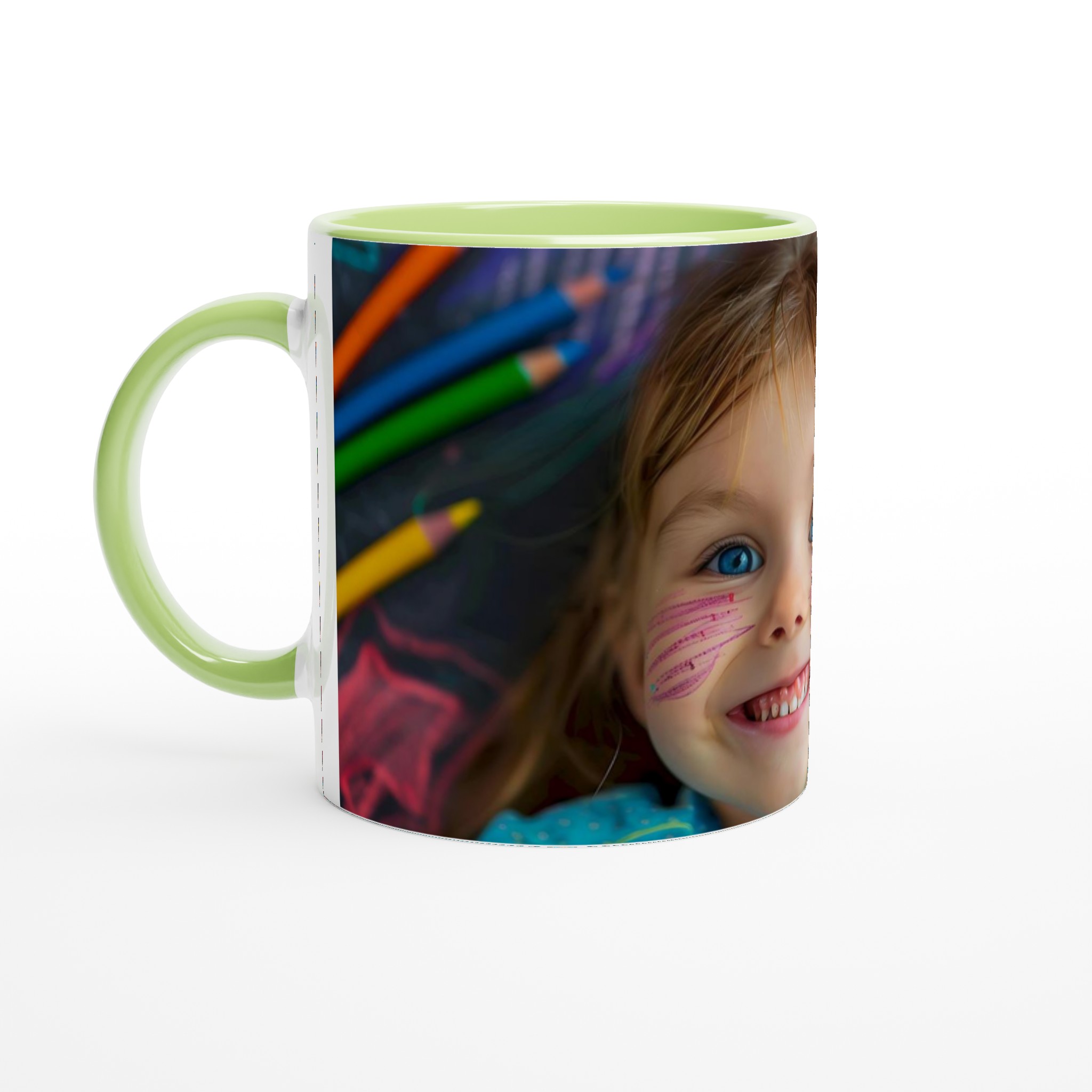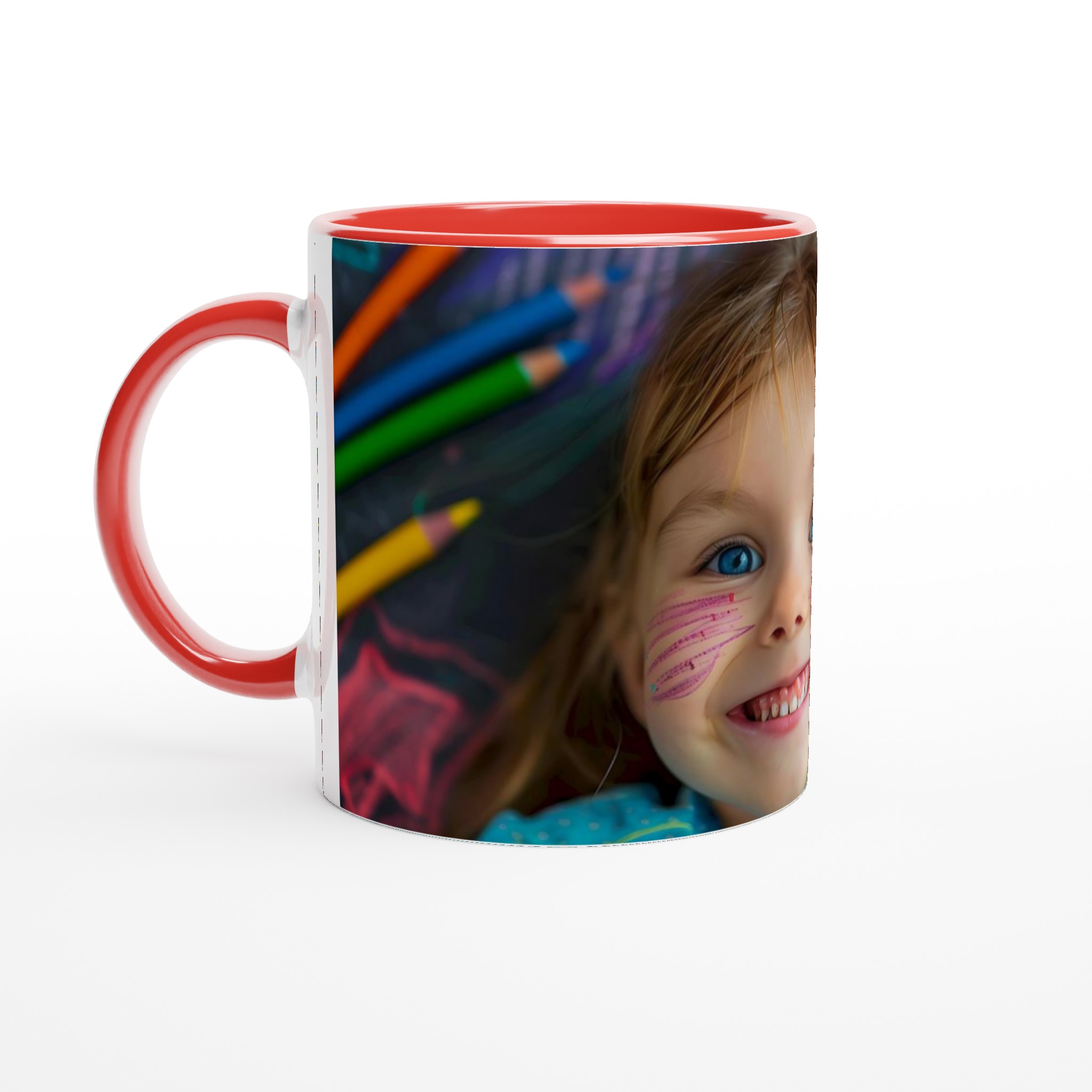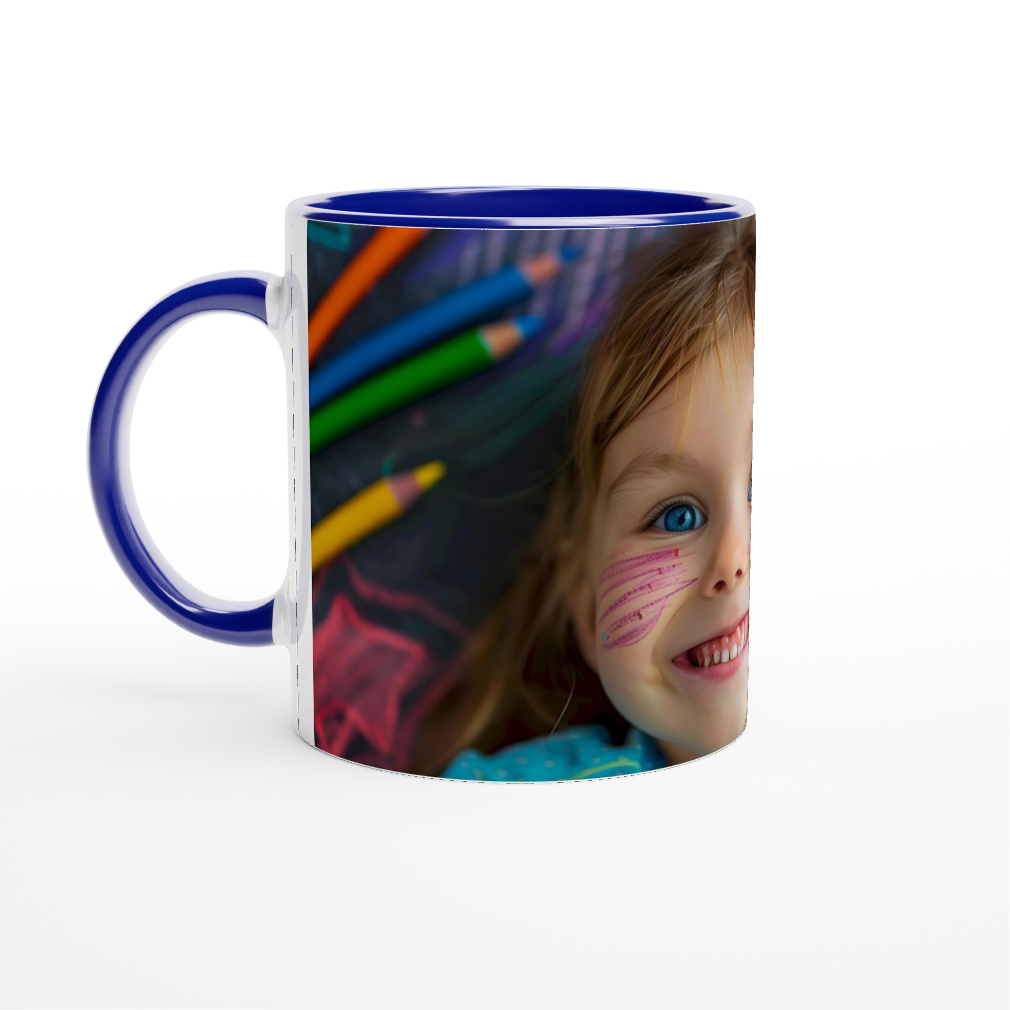 Lys upp din dag med vår glädjefulla keramiska mugg! Med en design som påminner om lekfull kreativitet och sprudlande fantasi, är denna mugg mer än bara en kopp – den är en daglig påminnelse om livets små, lyckliga stunder. Perfekt för morgonkaffet, kvällens varma choklad eller när du bara vill njuta av en kopp te. Den blanka ytan gör att trycken framhävs med klara och levande färger, som håller sig fina även efter många turer i mikron och diskmaskinen.