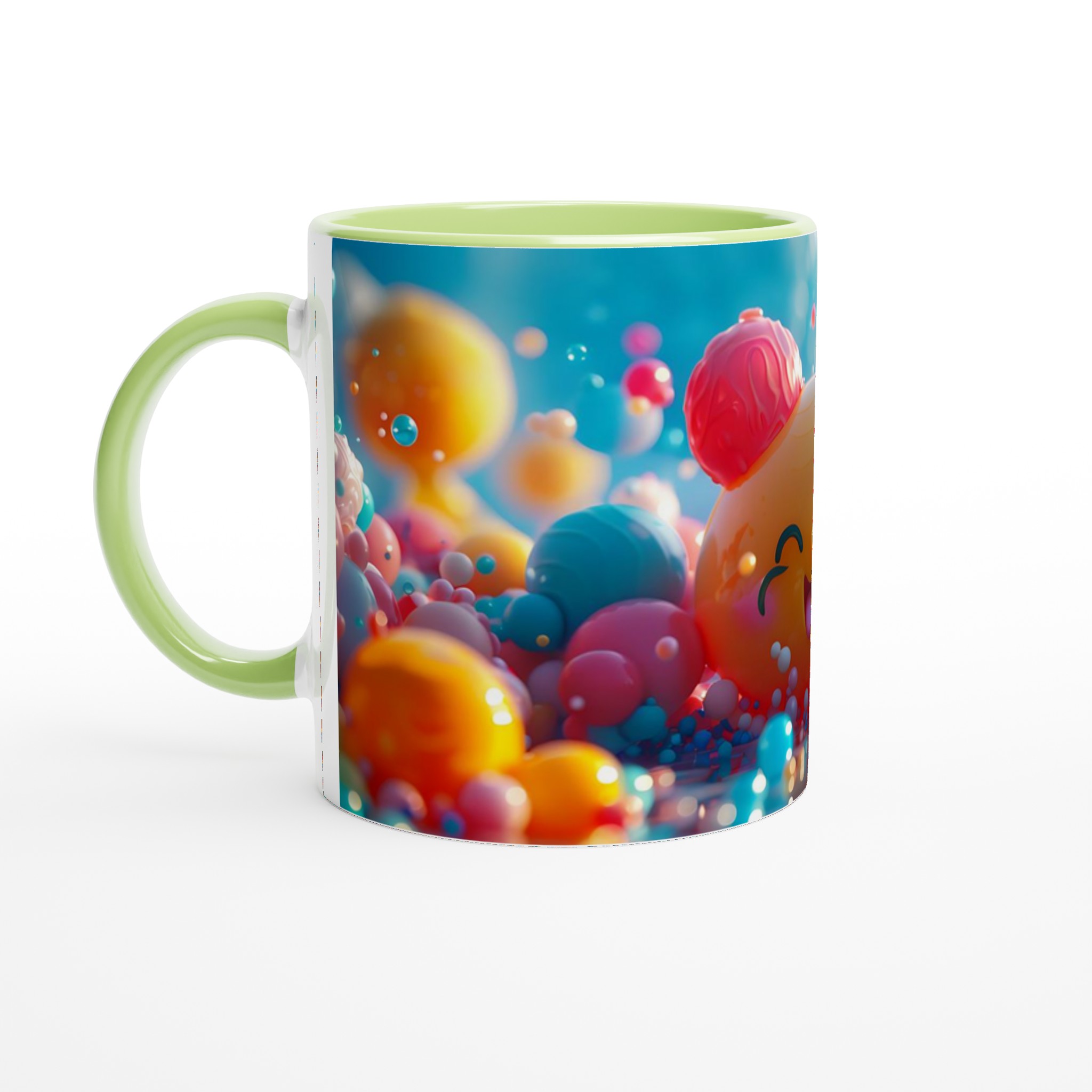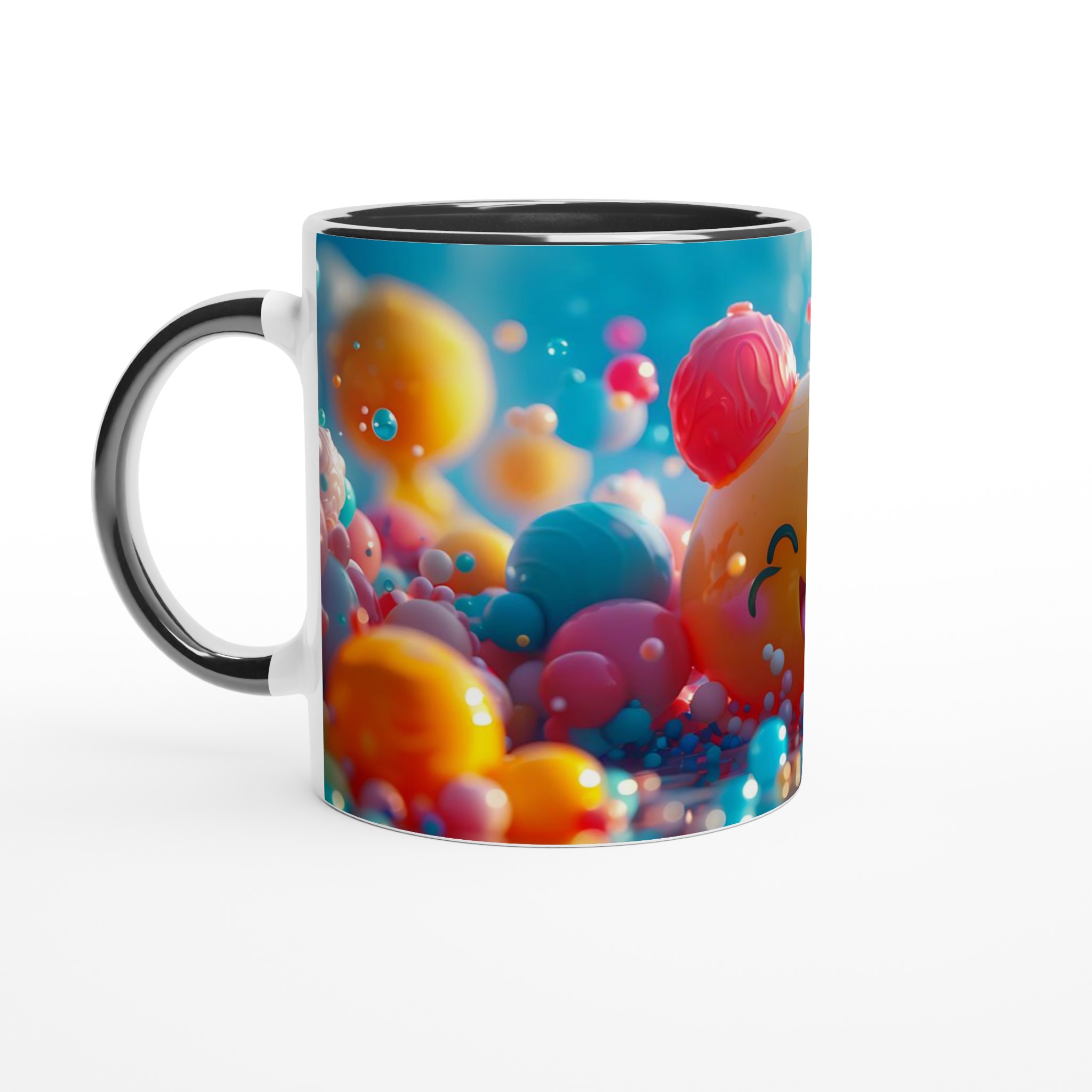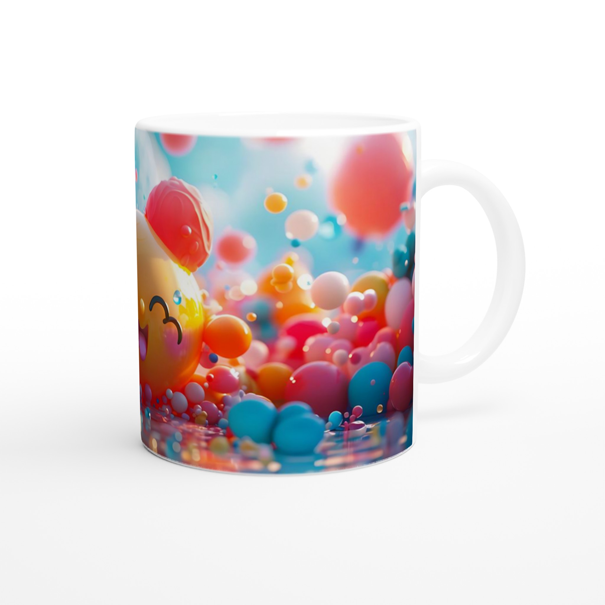 Väck liv i din fikapaus med denna oemotståndligt glada keramiska mugg! Inspirerad av den bubblande energin och de lekfulla färgerna, blir denna mugg snabbt en vardagsfavorit. Perfekt för morgonkaffet, kvällens varma choklad eller när du bara vill njuta av en kopp te. Den blanka ytan gör att trycken framhävs med klara och levande färger, som håller sig fina även efter många turer i mikron och diskmaskinen.