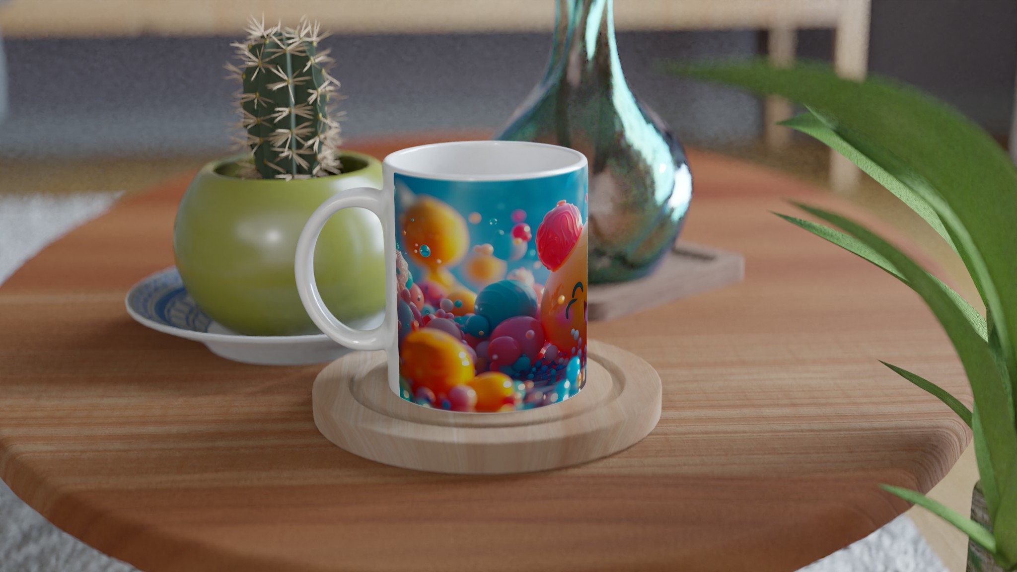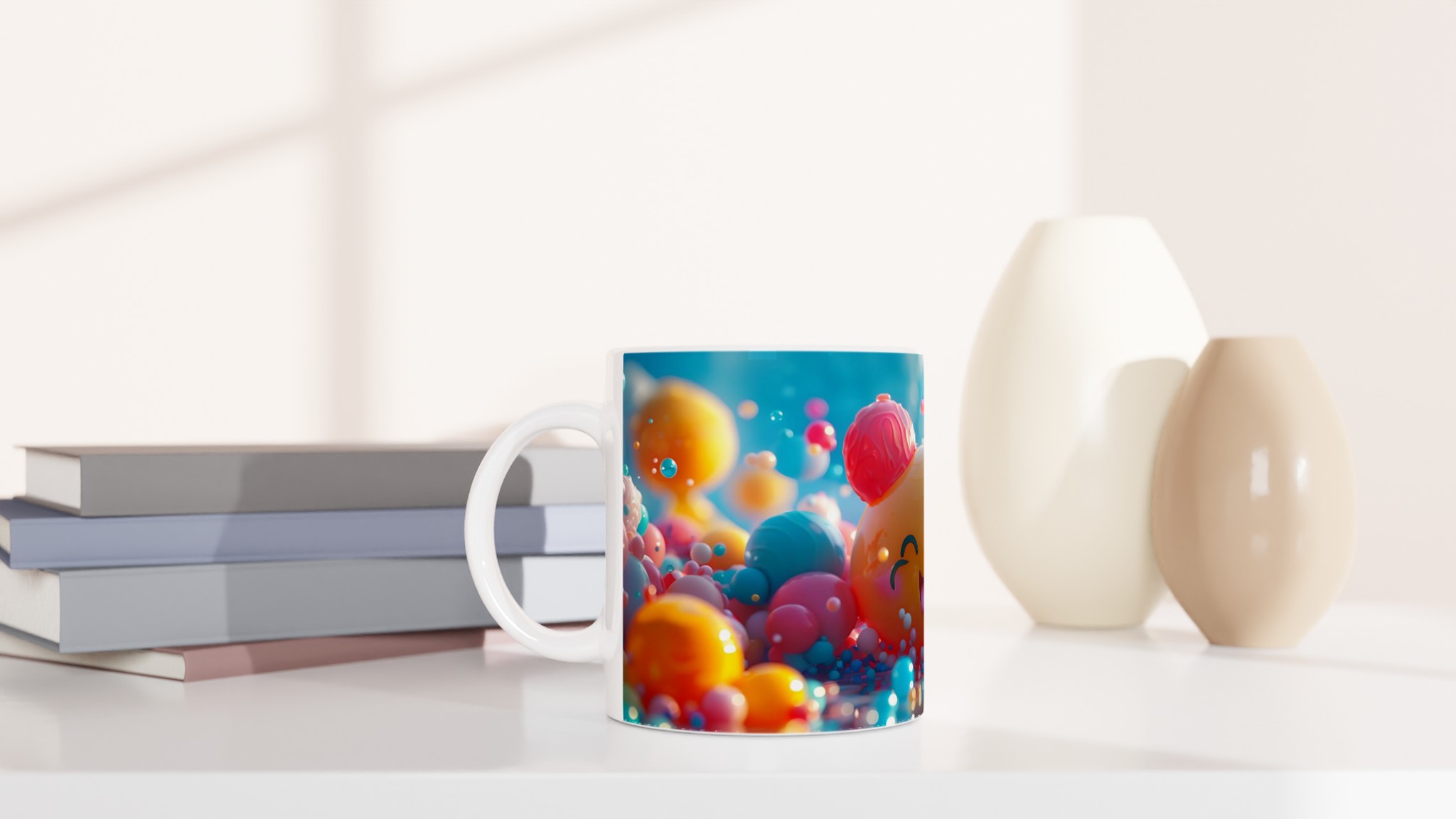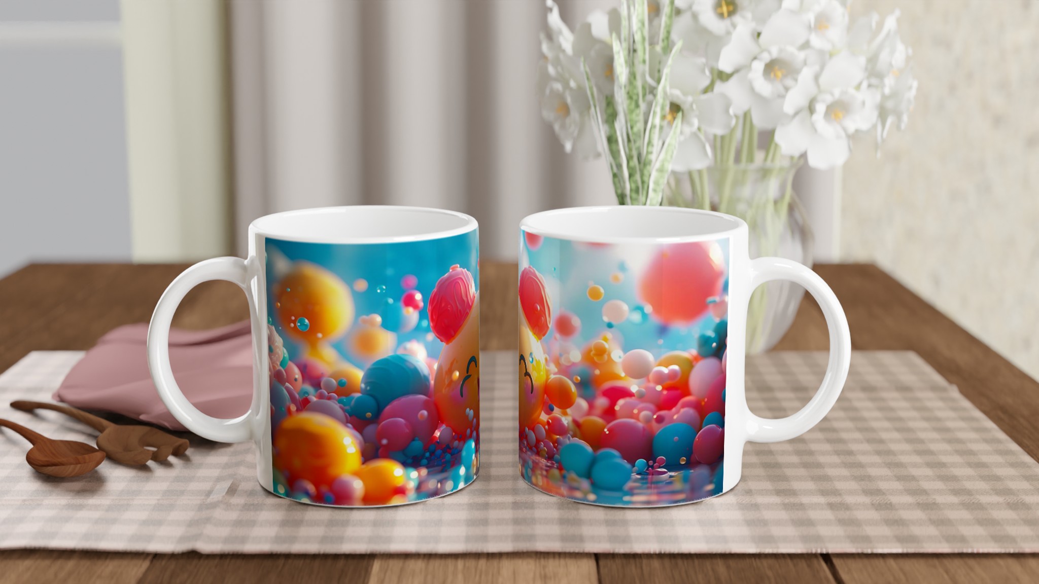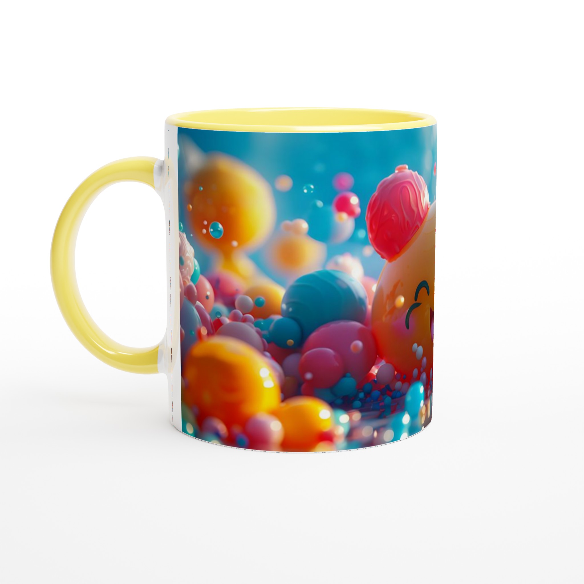 Väck liv i din fikapaus med denna oemotståndligt glada keramiska mugg! Inspirerad av den bubblande energin och de lekfulla färgerna, blir denna mugg snabbt en vardagsfavorit. Perfekt för morgonkaffet, kvällens varma choklad eller när du bara vill njuta av en kopp te. Den blanka ytan gör att trycken framhävs med klara och levande färger, som håller sig fina även efter många turer i mikron och diskmaskinen.