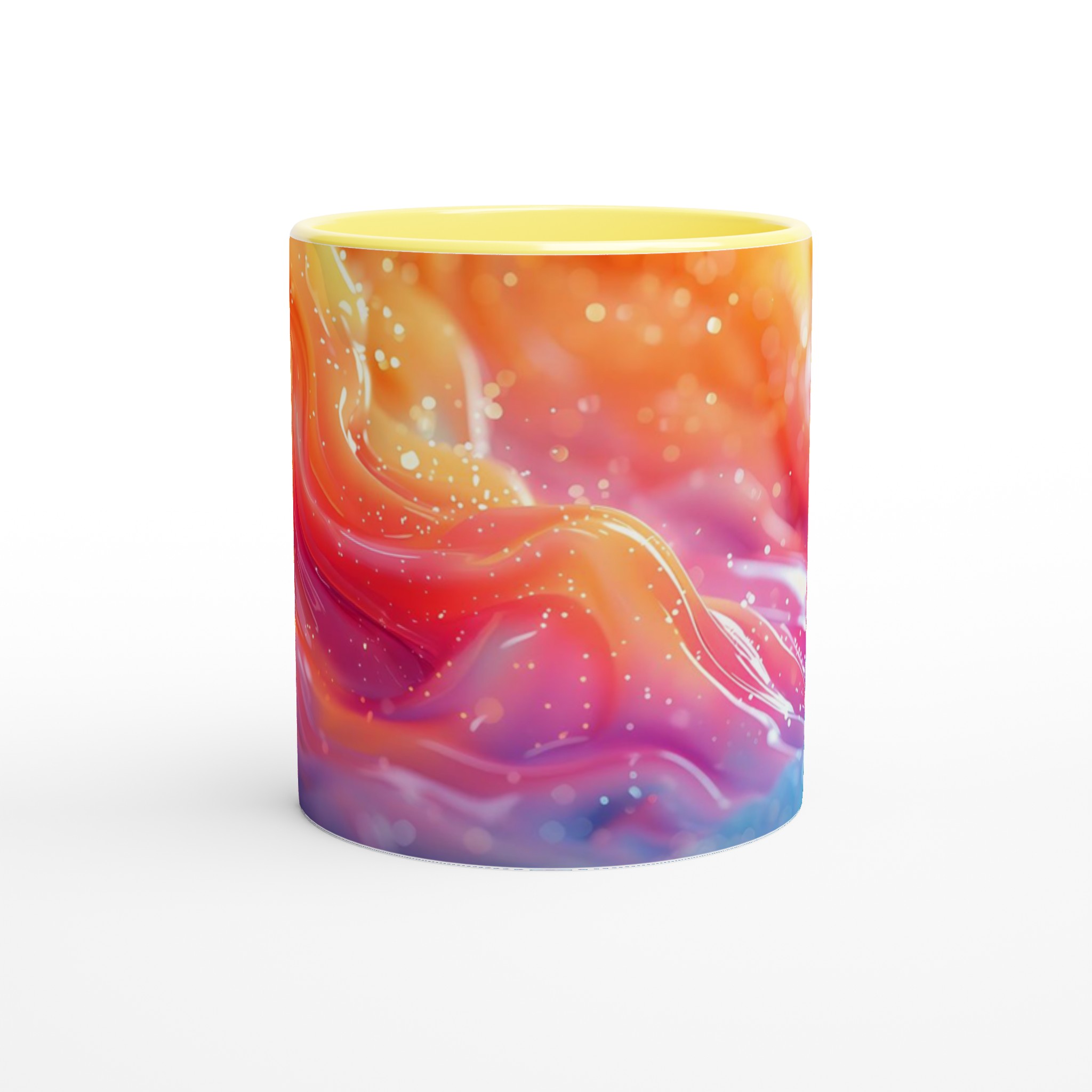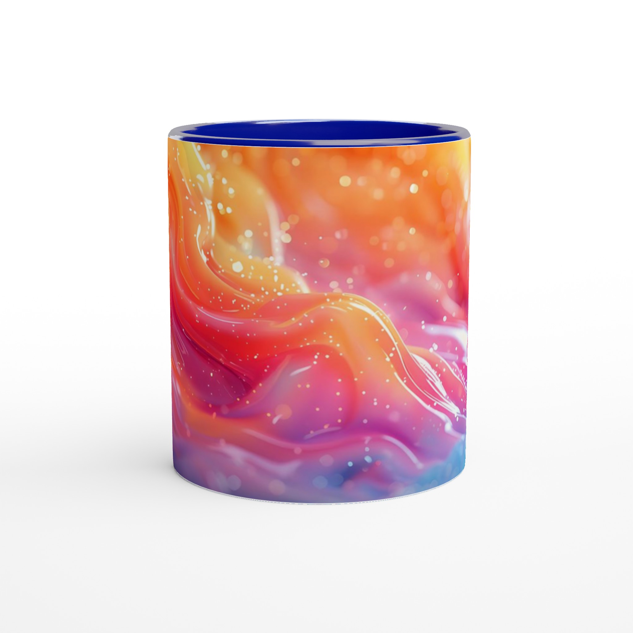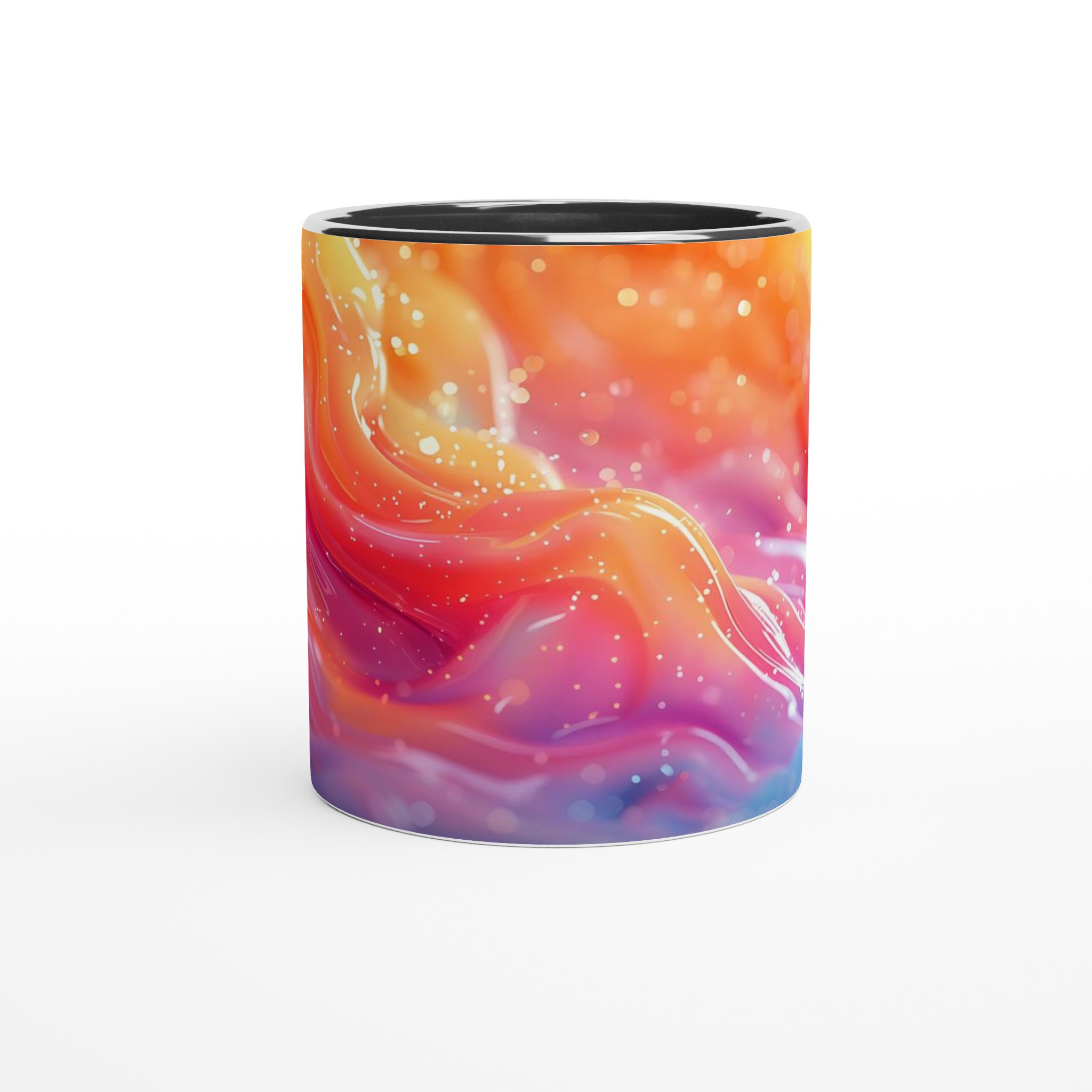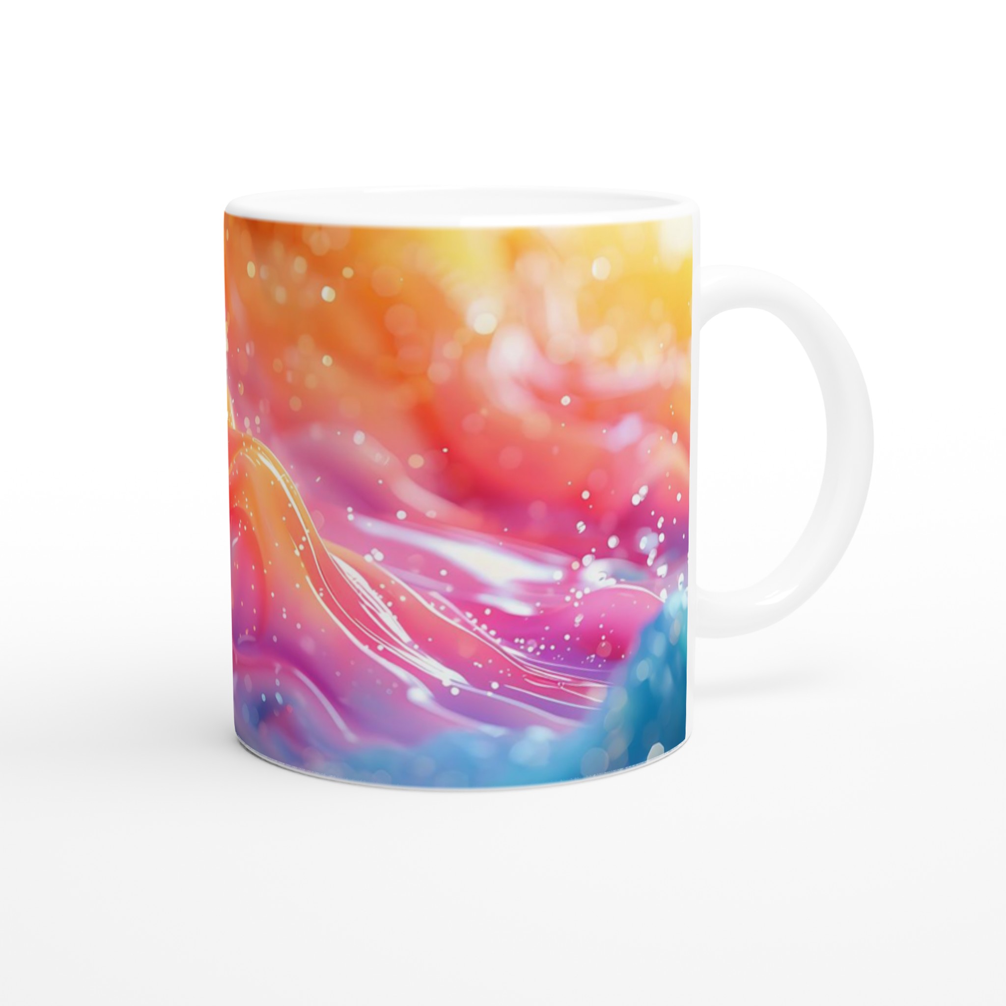 Föreställ dig att du omfamnas av en glittrande solnedgång varje gång du tar en klunk! Denna stilrena och vackra keramikmugg, inspirerad av den fängslande blandningen av varma och svala nyanser, är perfekt för alla dagens stunder – morgonkaffet, en värmande kopp te eller en härlig varm choklad. Den blanka vita ytan gör att trycken framträder klart och färgstarkt, vilket gör muggen till en riktig favorit i vardagen. Varje färgval förstärker den drömska glöden och den flytande elegansen från ett skimrande skymningslandskap.