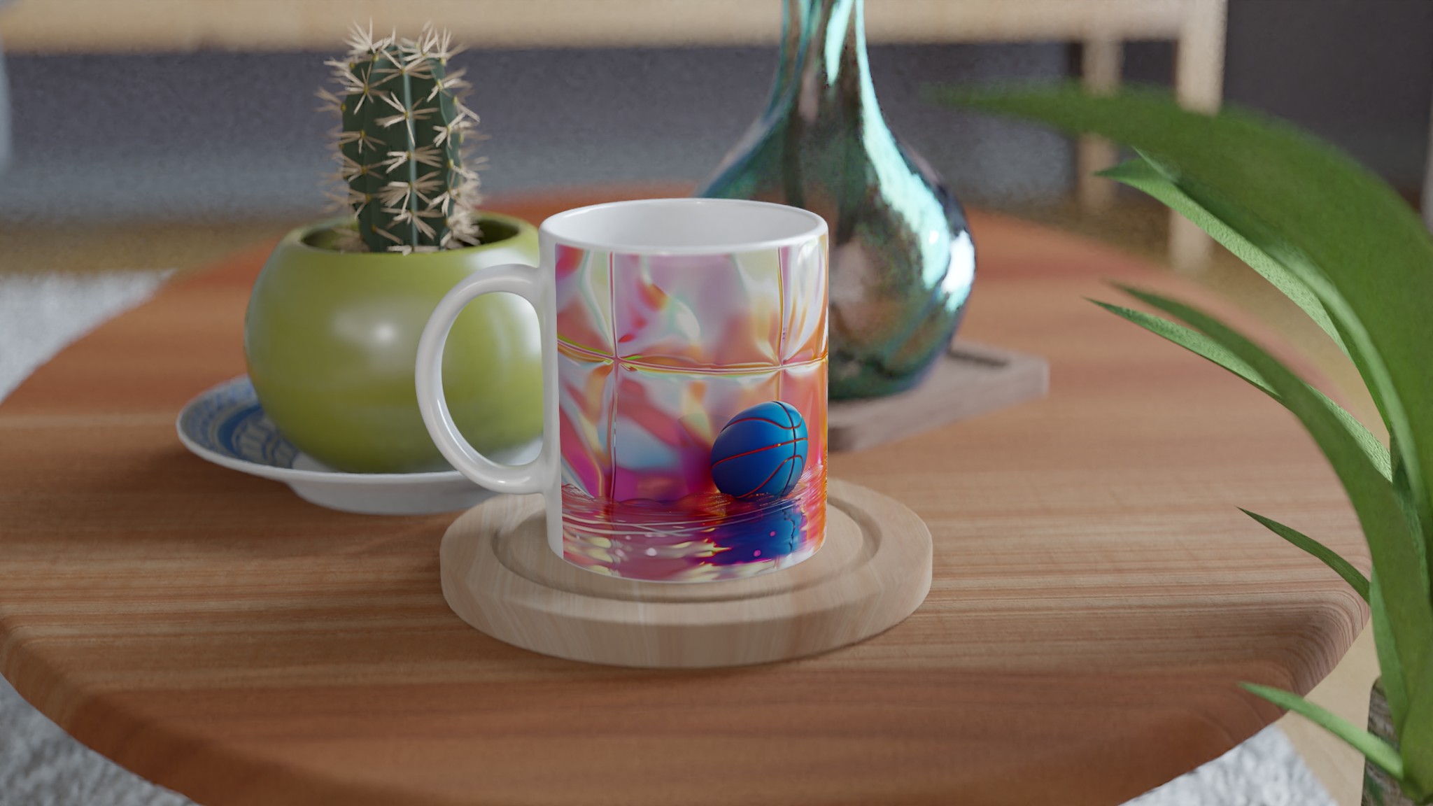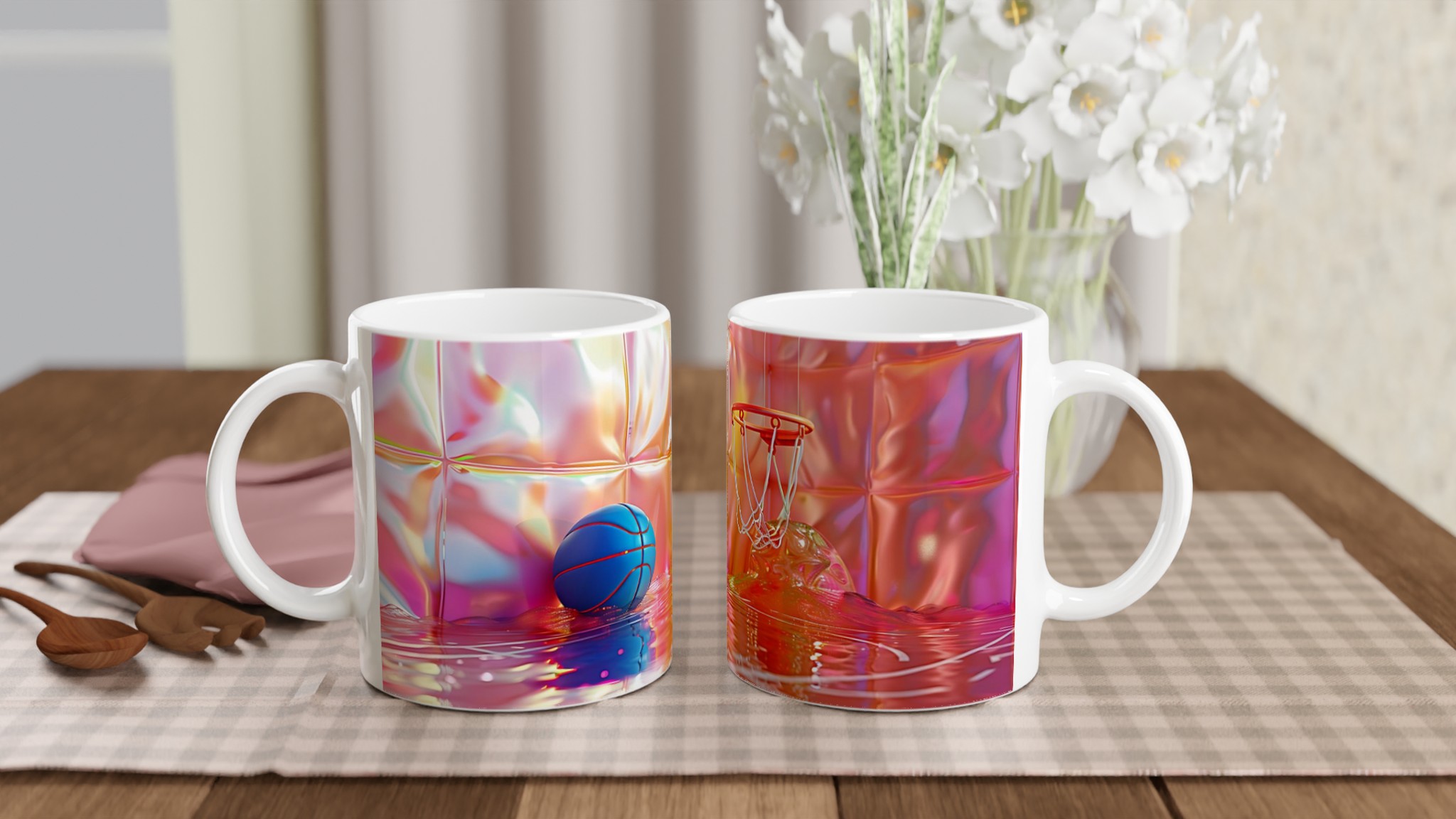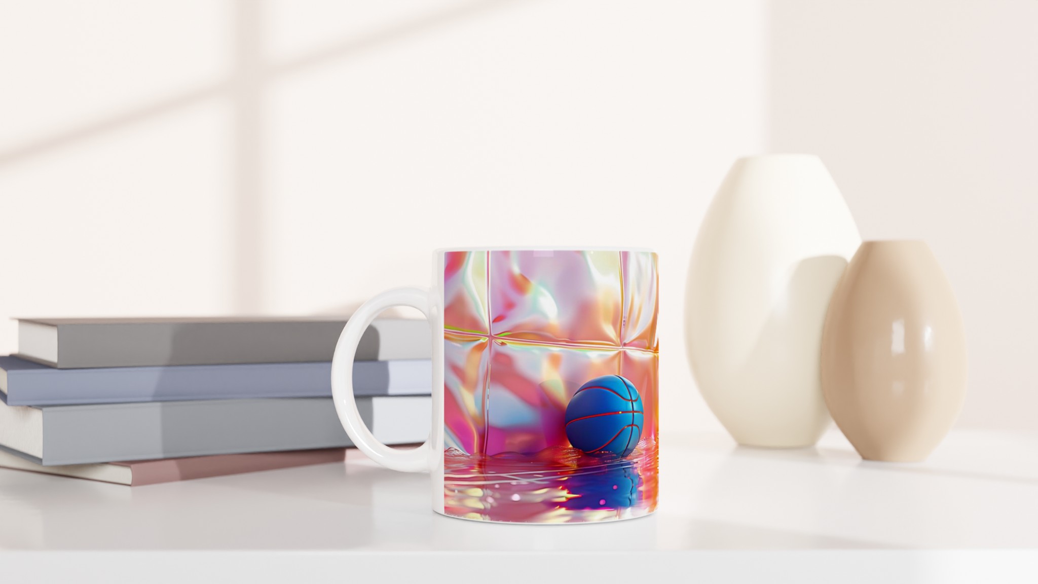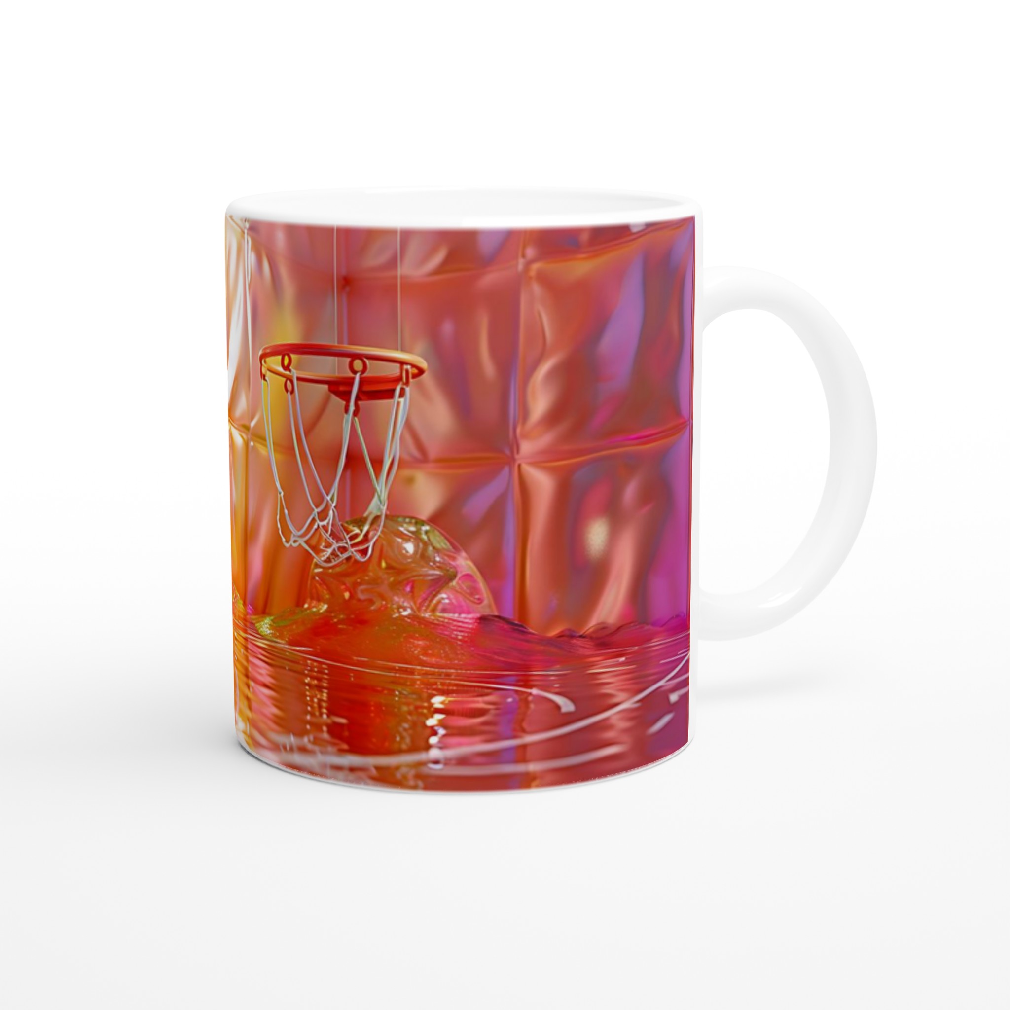 Stig in i en värld av glödande färger med denna fängslande keramiska mugg. Varje klunk blir en resa till en drömlik arena, inspirerad av den surrealistiska skönheten och de vibrerande nyanserna från en neonbelyst basketplan. Denna mugg är inte bara en behållare för din dryck; den är en upplevelse, en konversationsstartare och din nya favorit för de stunder då du vill fly vardagen.