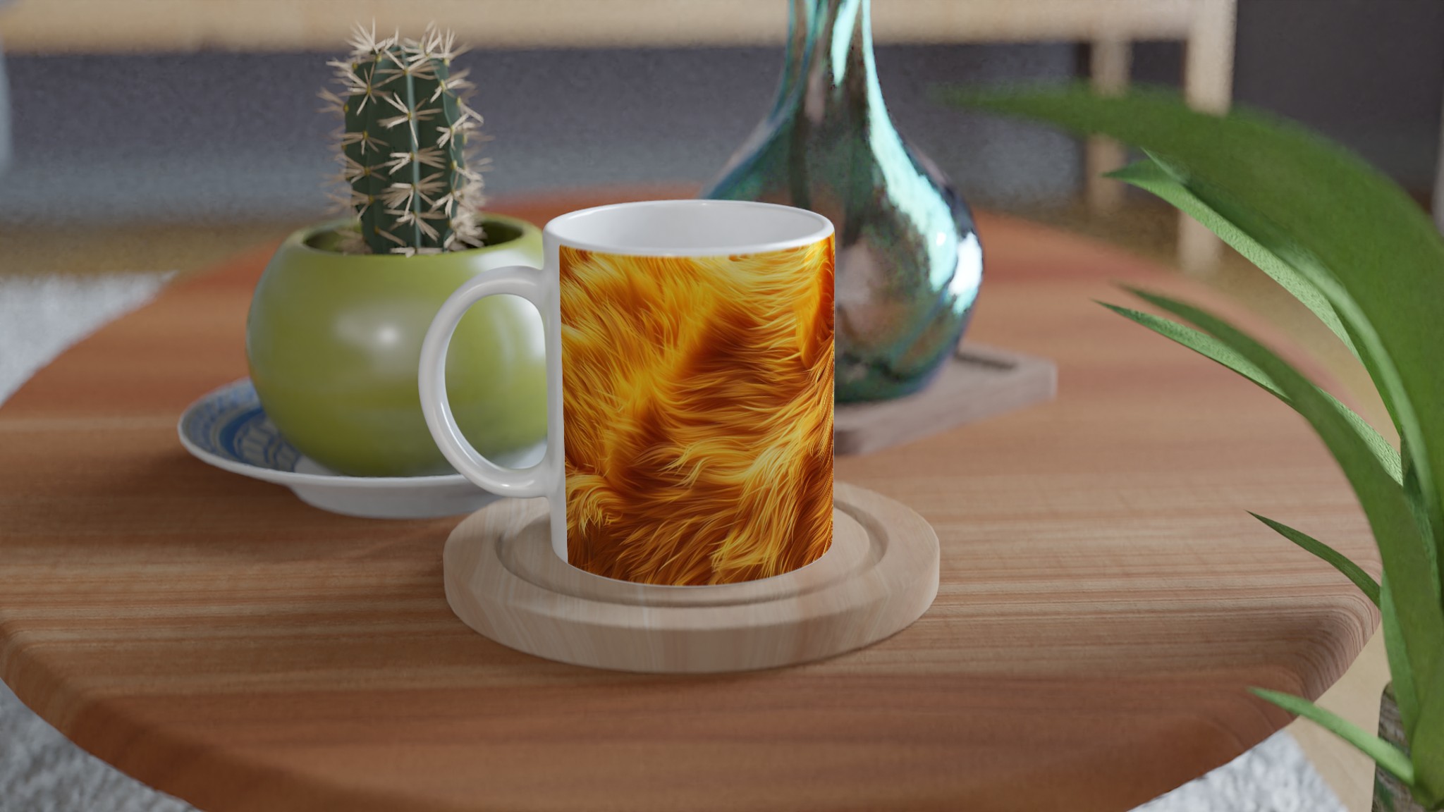 Låt din morgon glöda med denna energifyllda keramiska mugg, inspirerad av solnedgångens varma nyanser. Den här stilrena muggen blir snabbt en vardagsfavorit, perfekt för morgonkaffet, kvällens varma choklad eller när du bara vill njuta av en kopp te. Den blanka ytan framhäver tryck med klara och levande färger, som håller sig fina även efter många turer i mikron och diskmaskinen.