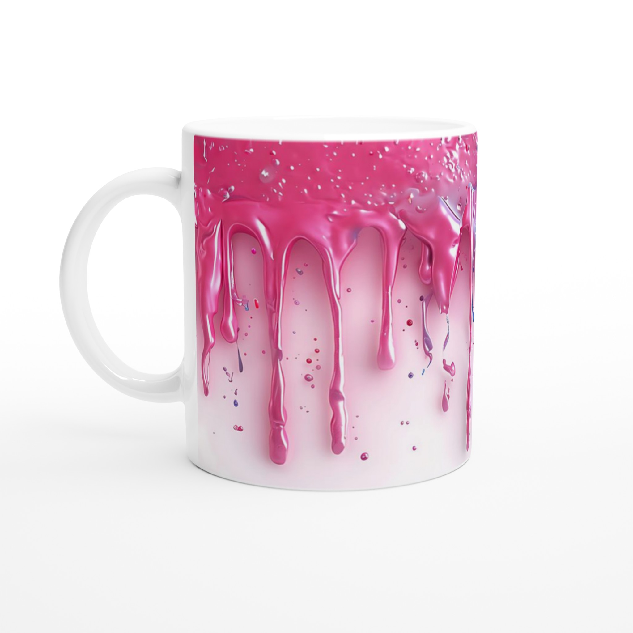 Släpp loss en färgexplosion i varje klunk. Denna 11 oz keramiska mugg med glänsande drip–art-design i rosa och blått förvandlar din morgonkaffe eller te till en kreativ stund. Perfekt för att pigga upp köksbordet eller ge bort som gåva till konstälskaren.