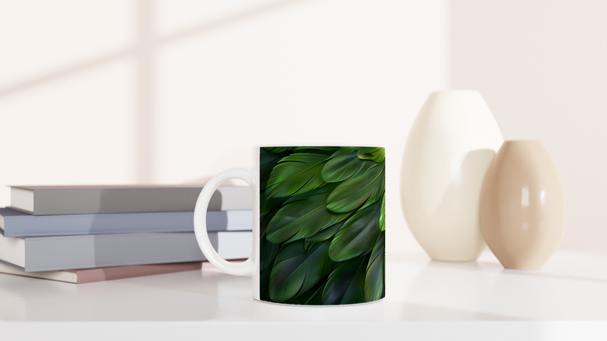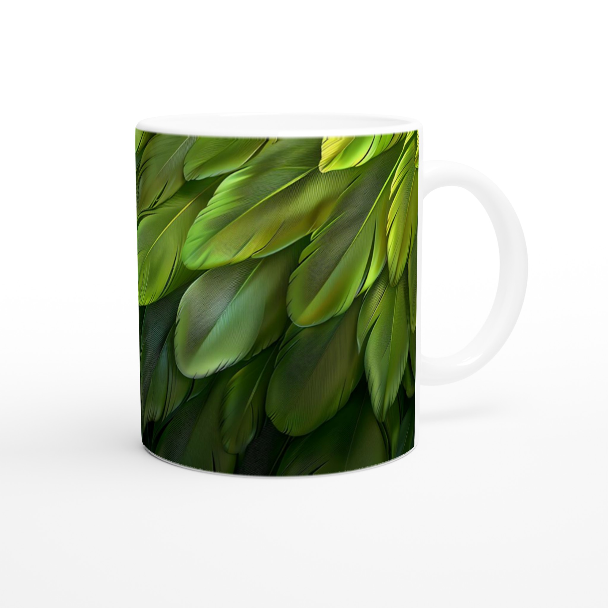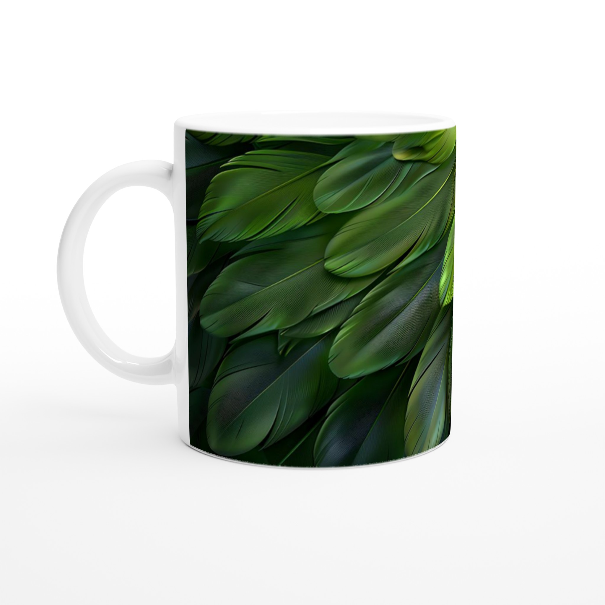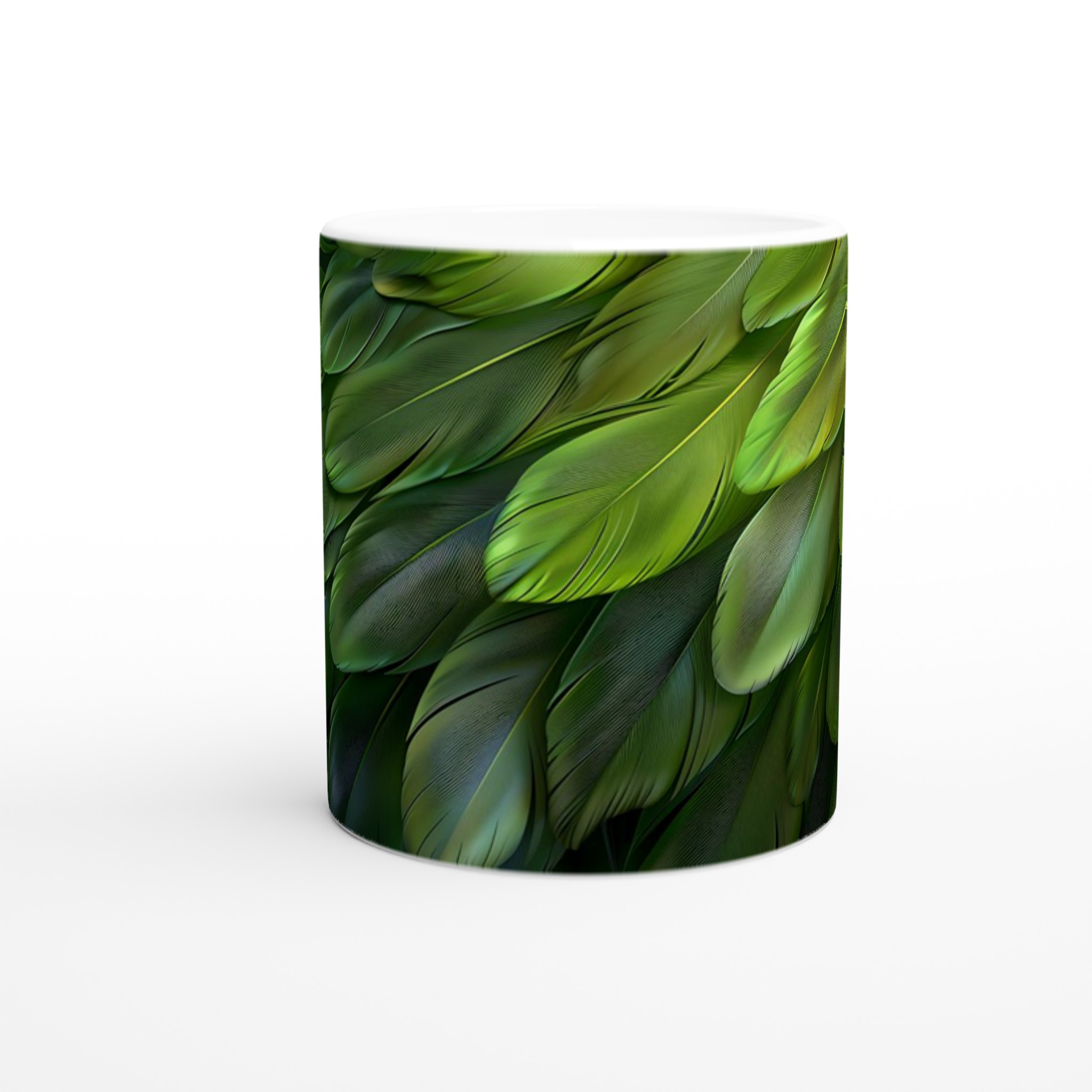 Låt dig inspireras av naturens skönhet varje dag med denna förtrollande keramiska mugg, prydd med ett detaljerat mönster av gröna fjädrar. De skiftande nyanserna från mörkt skogsgrönt till livfullt limegrönt skapar en känsla av lugn och harmoni, perfekt för en stunds avkoppling. Den här stilrena keramiska muggen blir snabbt en vardagsfavorit. Perfekt för morgonkaffet, kvällens varma choklad eller när du bara vill njuta av en kopp te.