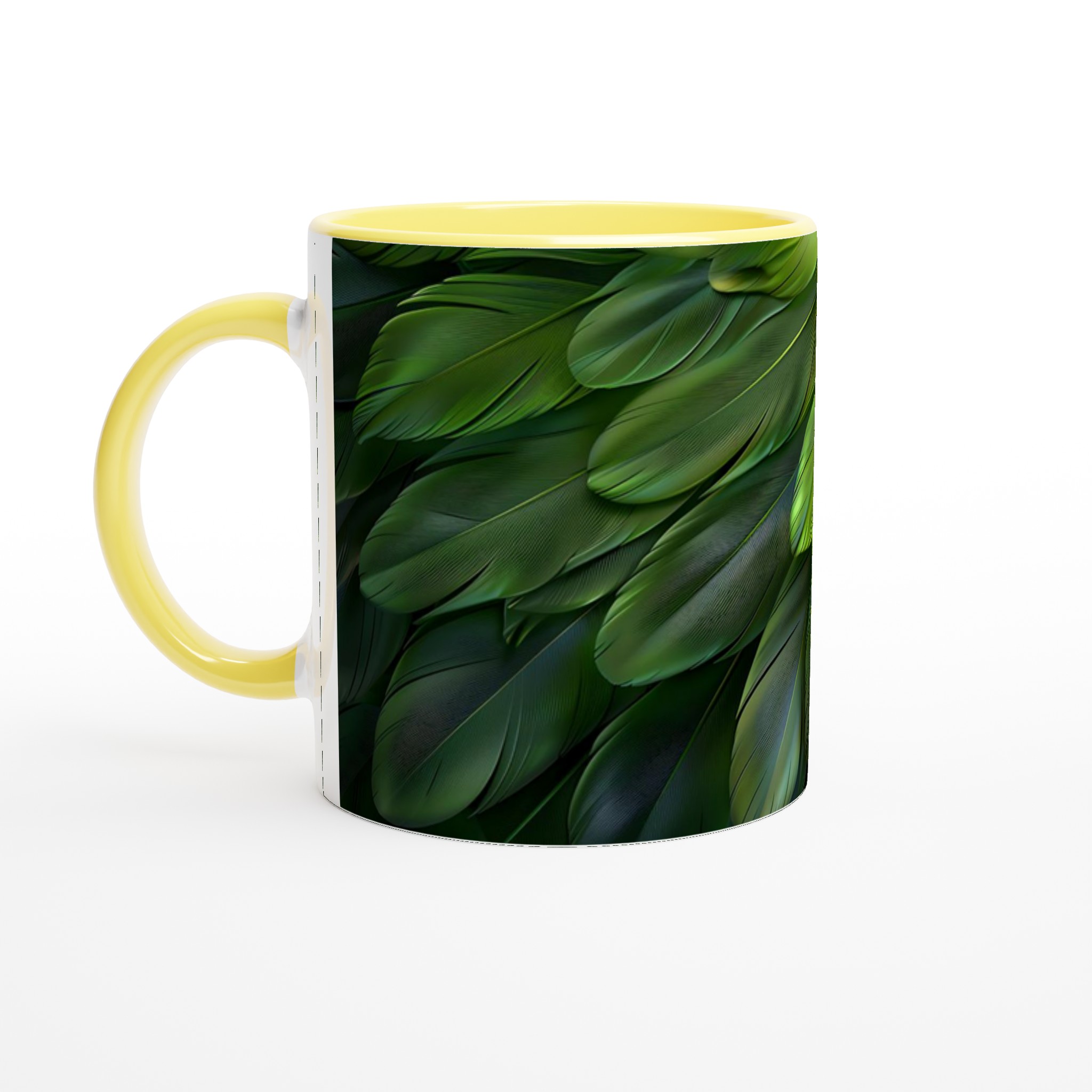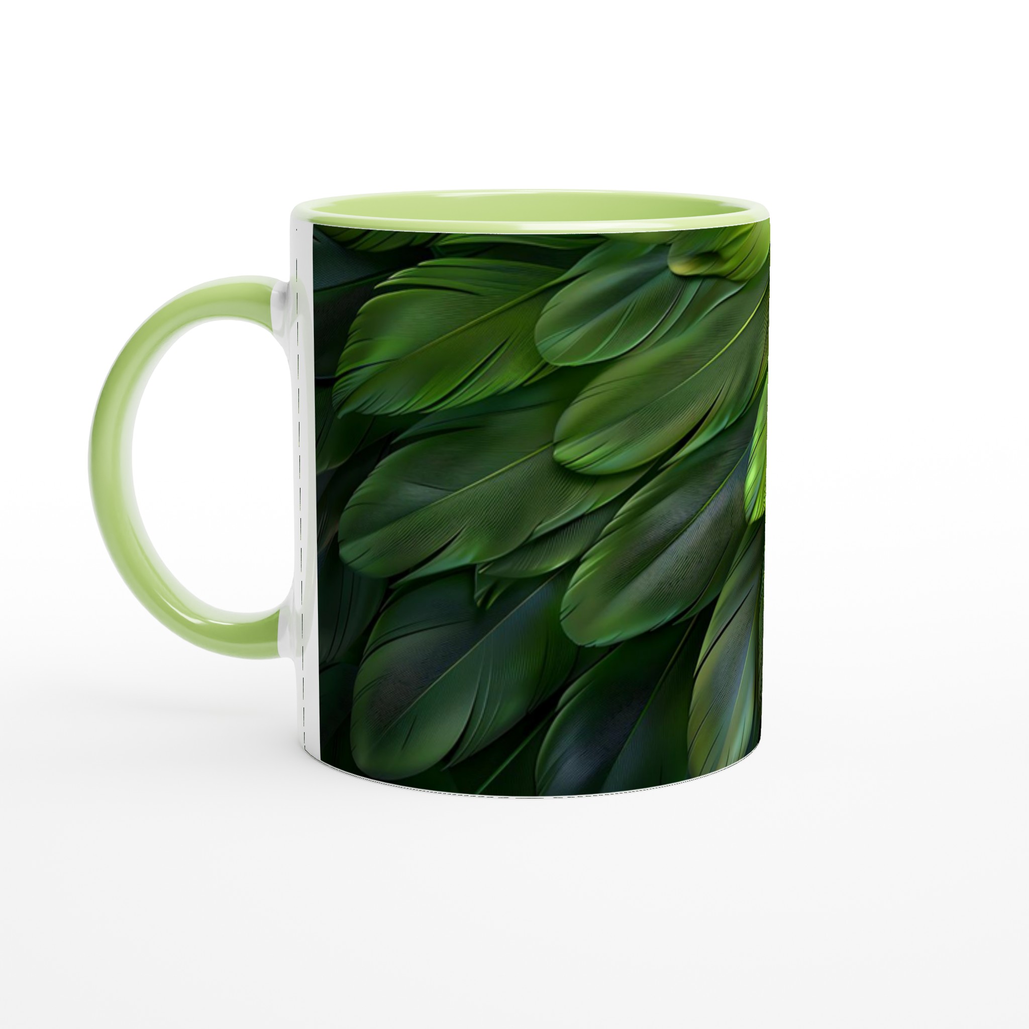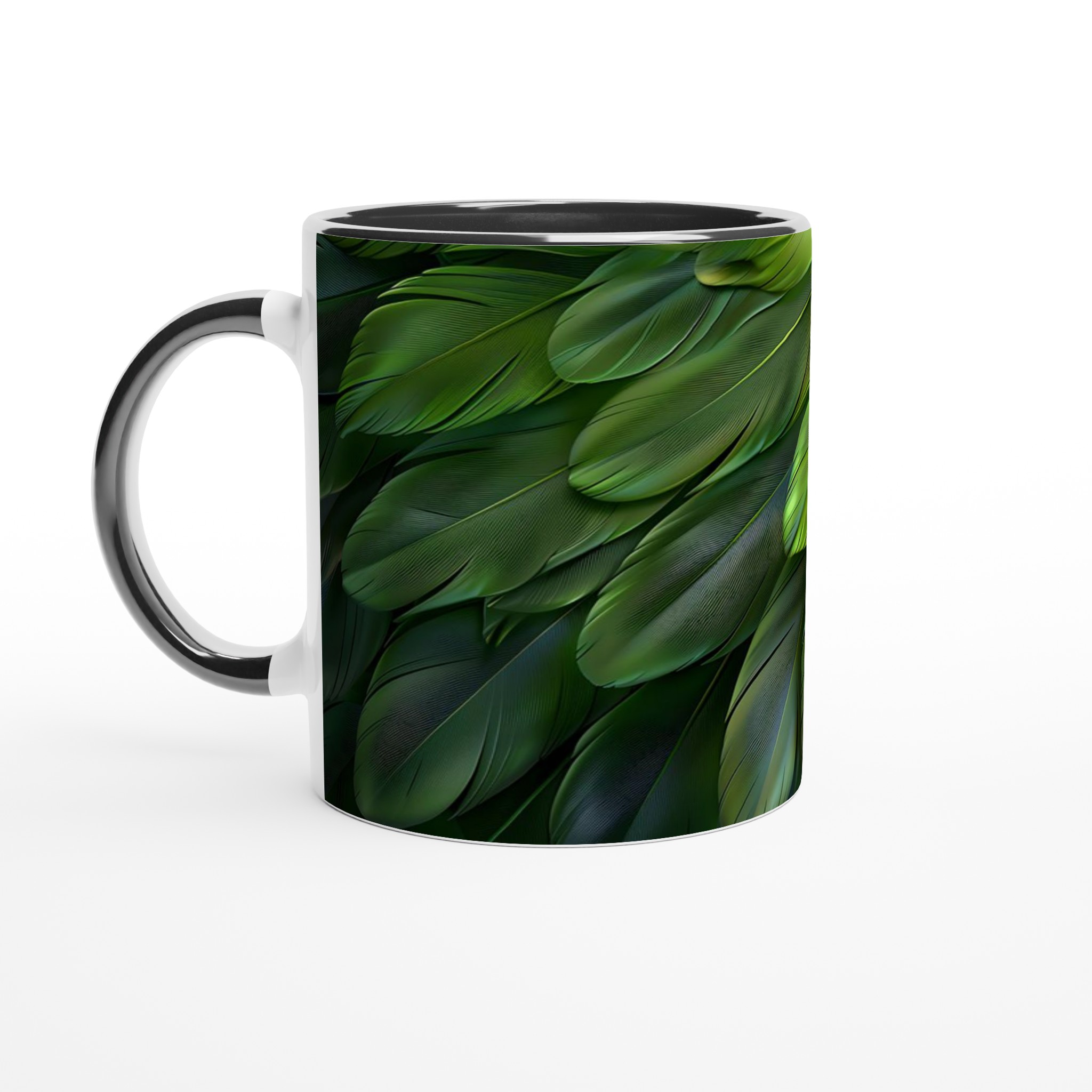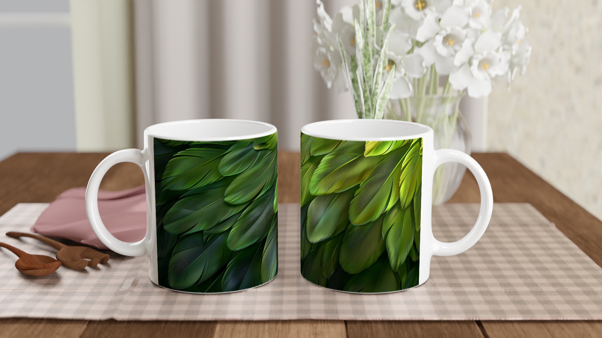 Låt dig inspireras av naturens skönhet varje dag med denna förtrollande keramiska mugg, prydd med ett detaljerat mönster av gröna fjädrar. De skiftande nyanserna från mörkt skogsgrönt till livfullt limegrönt skapar en känsla av lugn och harmoni, perfekt för en stunds avkoppling. Den här stilrena keramiska muggen blir snabbt en vardagsfavorit. Perfekt för morgonkaffet, kvällens varma choklad eller när du bara vill njuta av en kopp te.