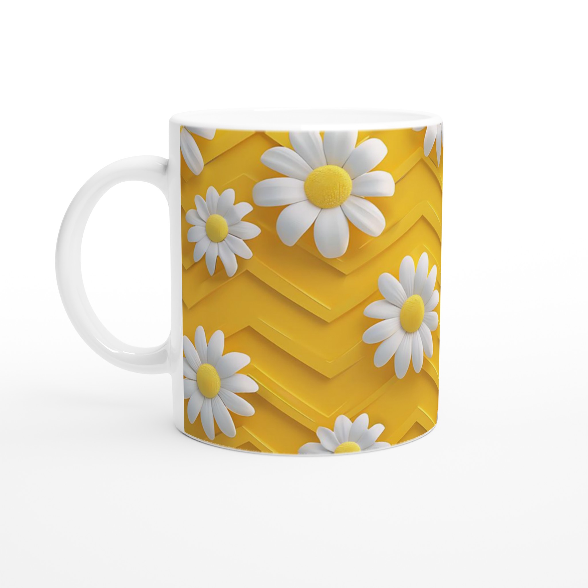 Inspirerad av soliga dagar och lekfulla tusenskönor, denna mugg förvandlar din dryckesupplevelse till en ren glädje. Den blanka vita ytan ger ett skarpt och levande tryck som verkligen sticker ut, oavsett om det är en personlig design, ett roligt citat eller en present till någon du tycker om.
