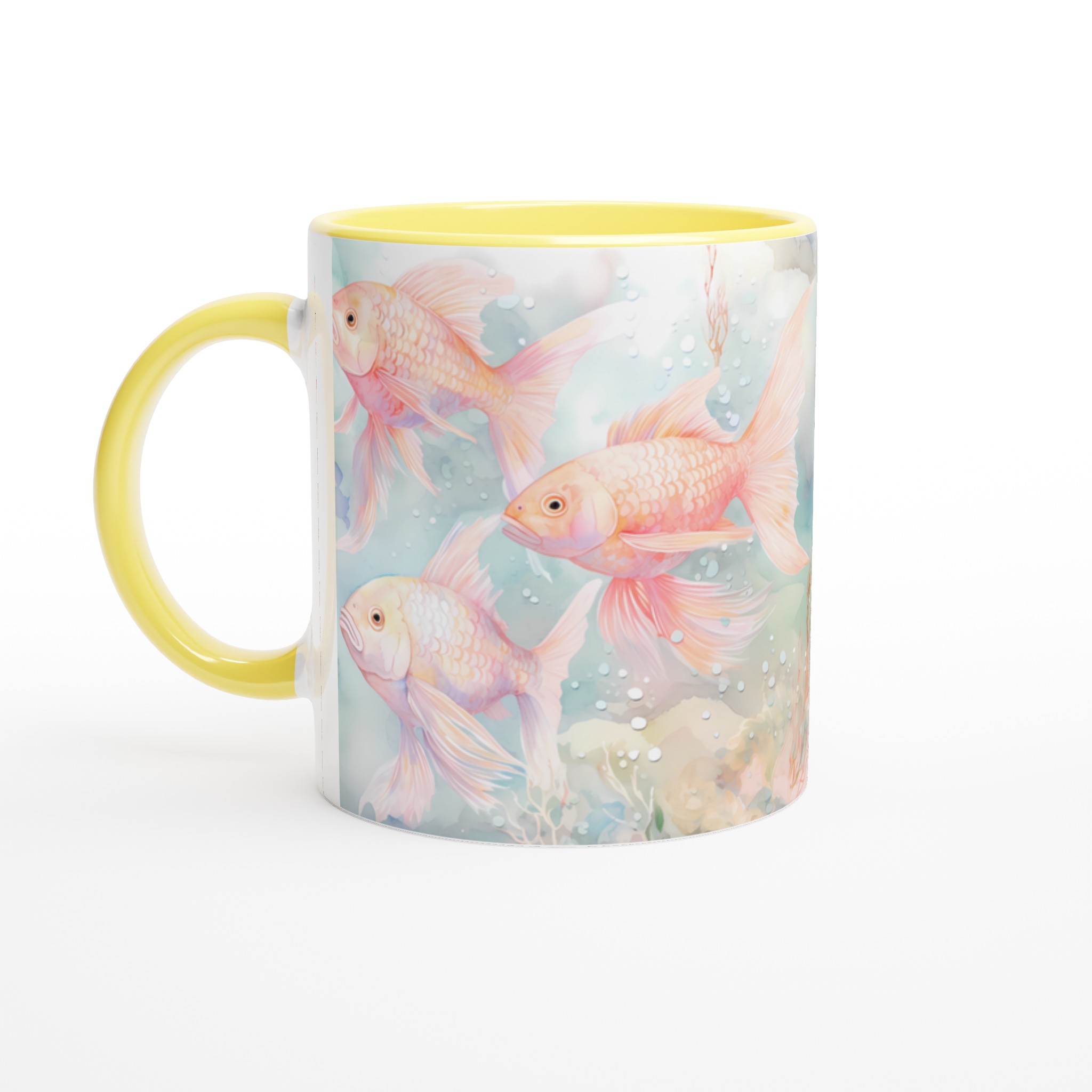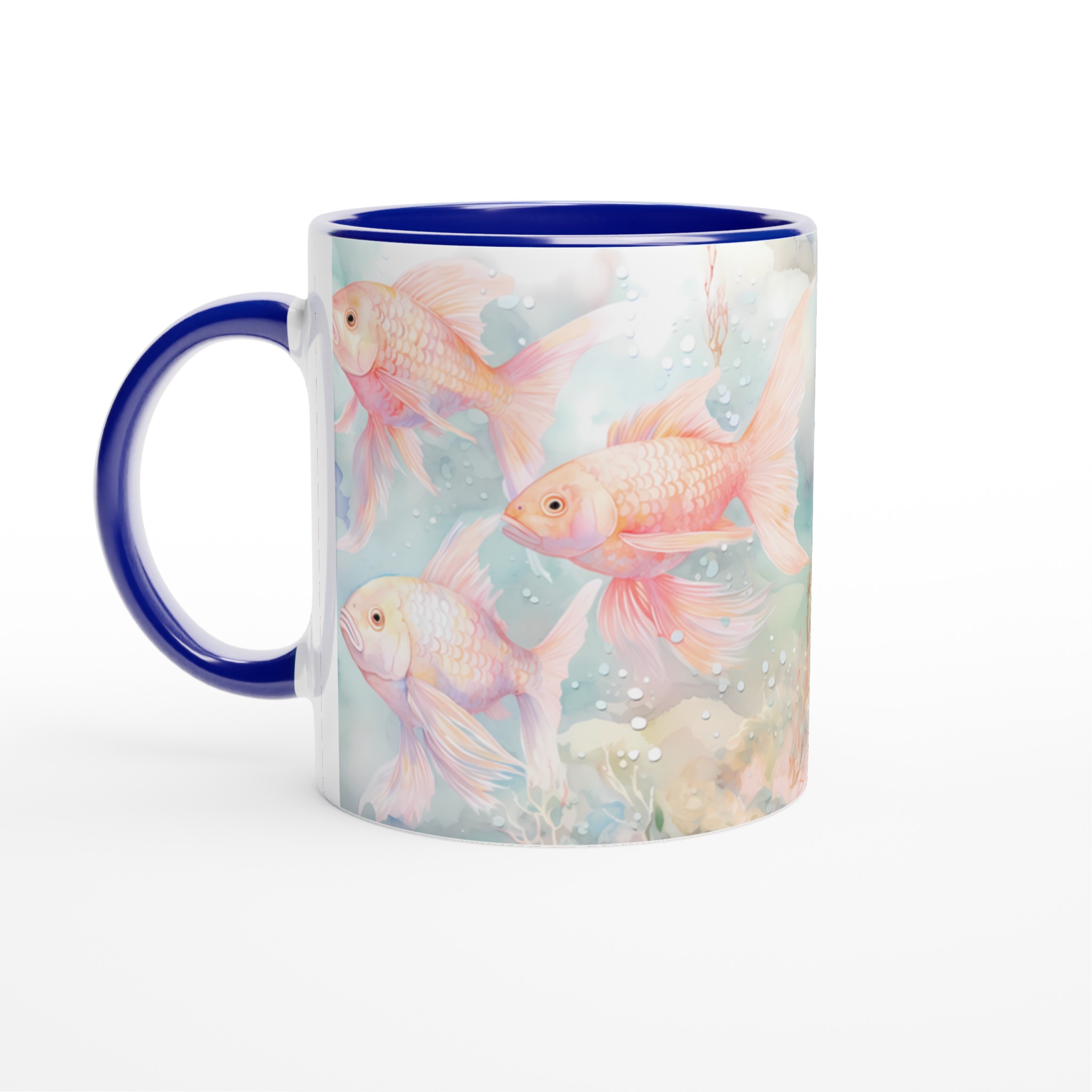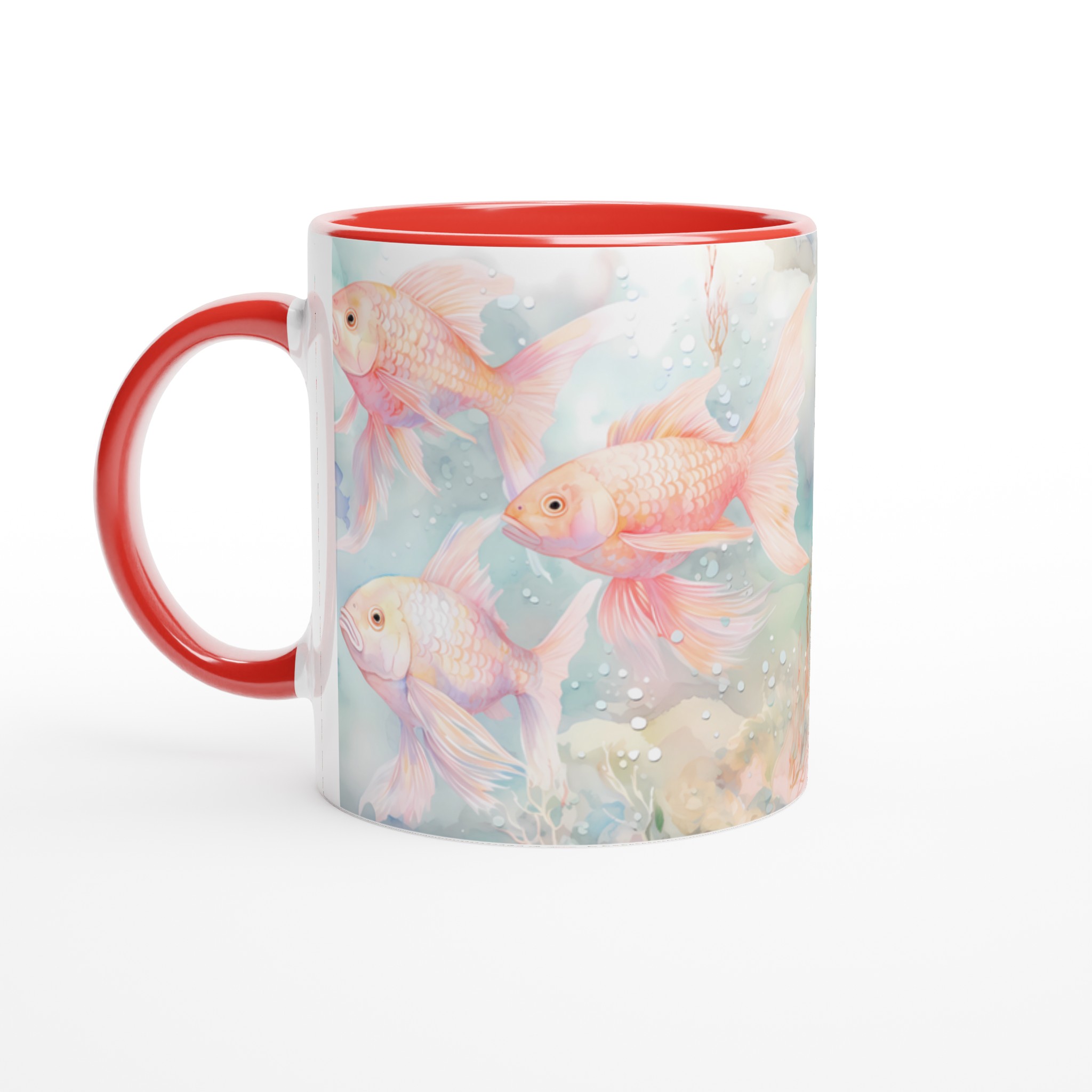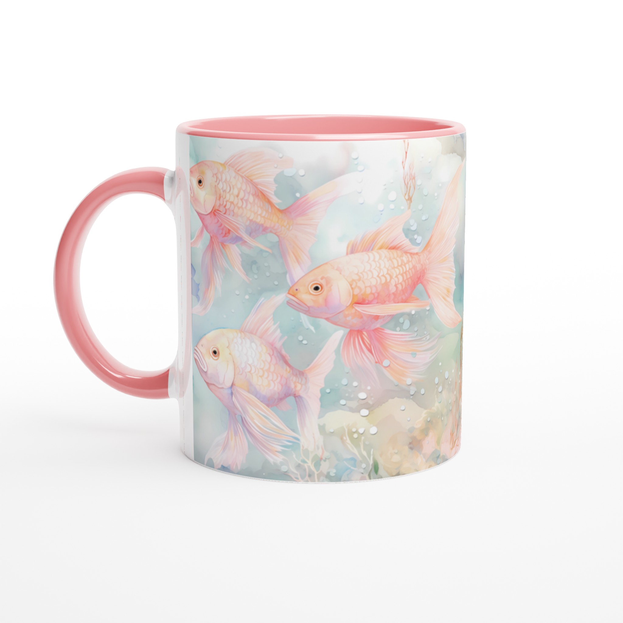 Fånga den lugnande skönheten från undervattensvärlden med vår akvarellmugg. Denna mugg är prydd med en konstnärlig illustration av simmande guldfiskar i drömska pastelltoner av rosa och mintgrönt, vilket skapar en känsla av rofylldhet vid varje användning. Låt den bli din dagliga påminnelse om lugn och harmoni, perfekt för din morgonrutin eller en avkopplande stund.