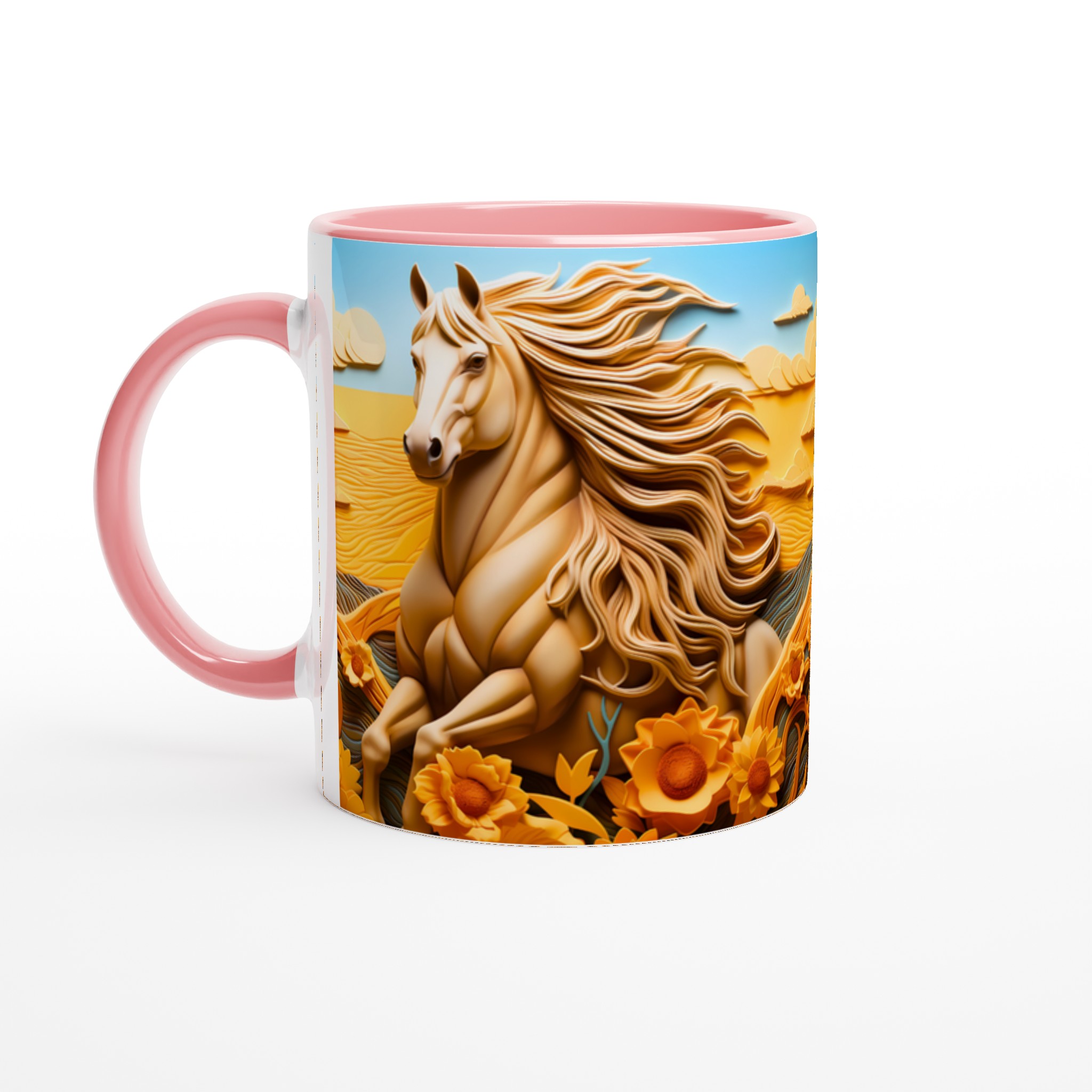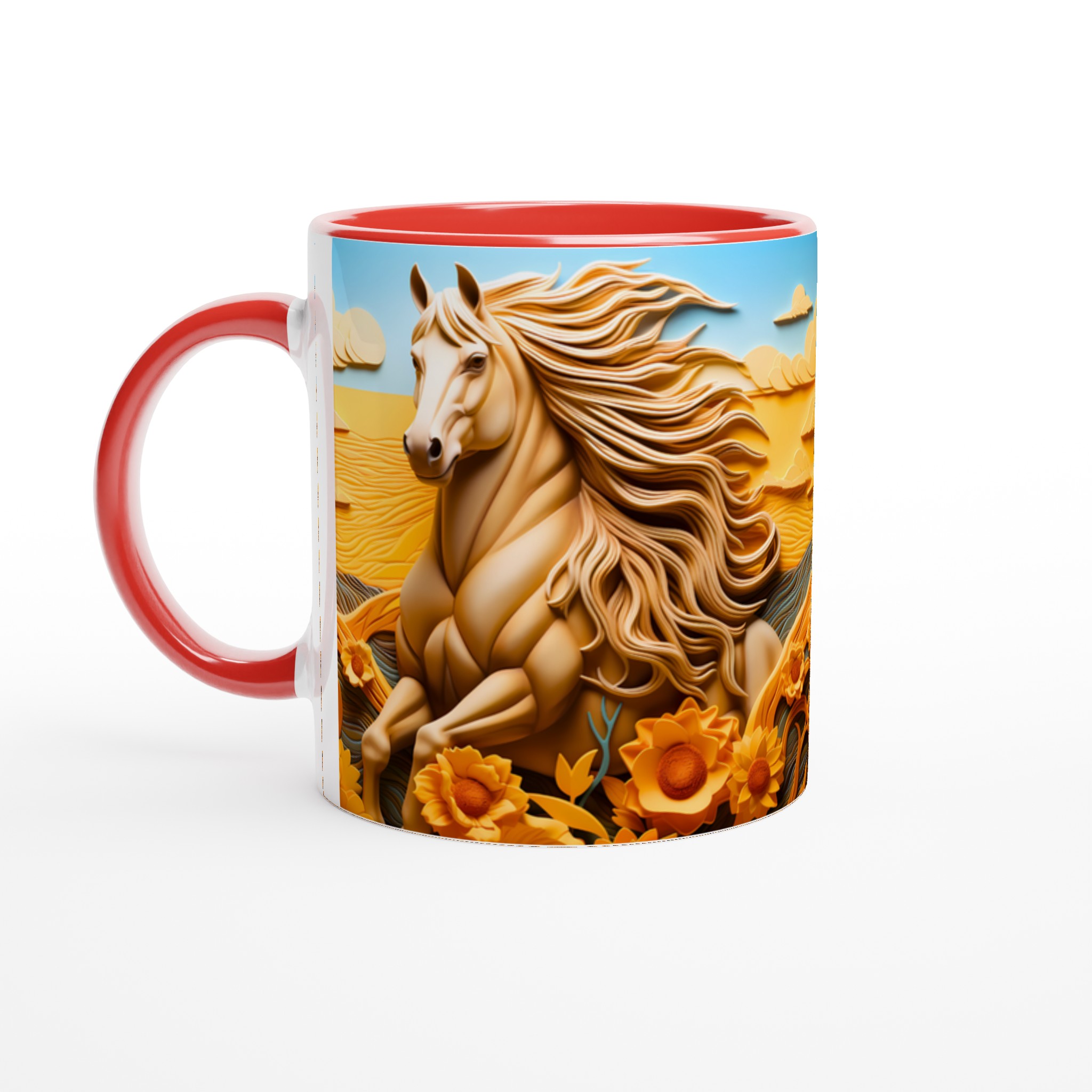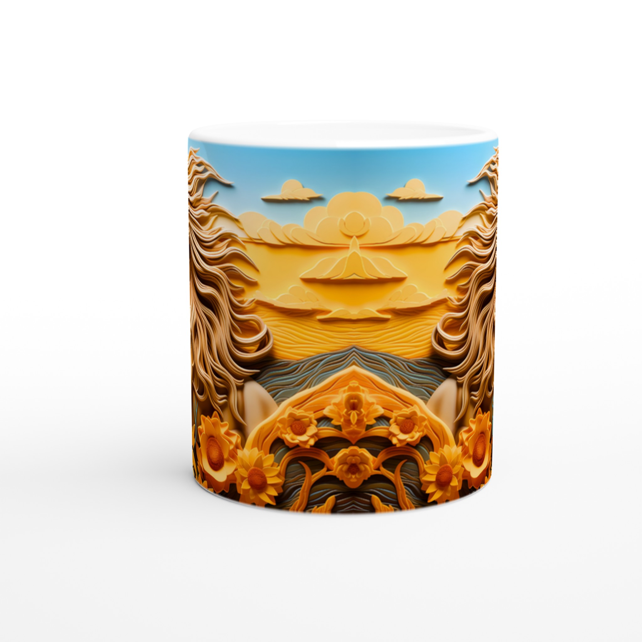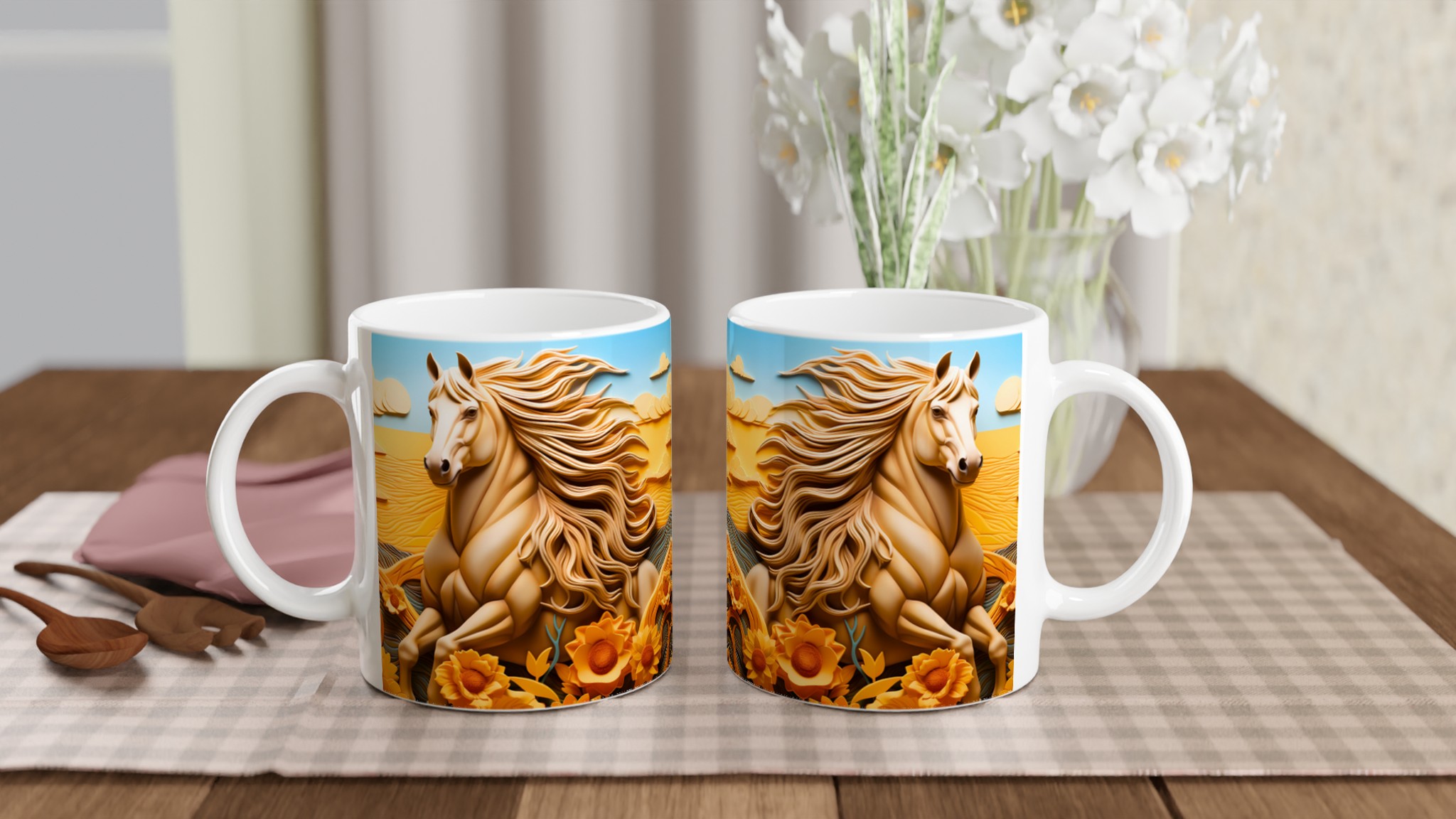 Fånga dagen med denna magnifika keramiska mugg, som förvandlar varje dryckesstund till en hyllning till art deco-inspirerad skönhet. Med ett förtrollande hästmotiv i varma guld- och sandtoner mot en klarblå himmel, blir denna mugg snabbt en vardagsfavorit. Den detaljerade designen, som påminner om intrikata pappersutskärningar, ger en känsla av lyx och kreativitet, perfekt för morgonkaffet, kvällens varma choklad eller när du bara vill njuta av en kopp te.
