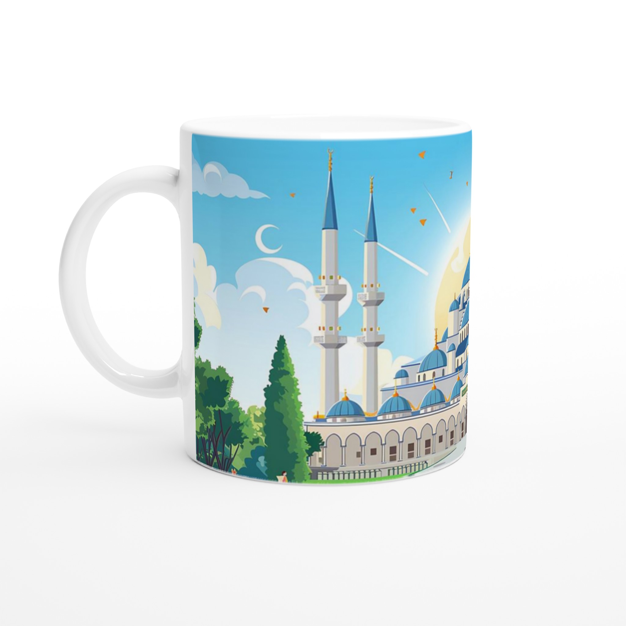 Föreställ dig din morgonritual badad i gyllene ljus när solen stiger bakom en majestätisk samling blå kupoler och slanka minareter. Varje kaffekopp blir en kort resa till lugn och arkitektonisk skönhet, så att du kan starta dagen inspirerad och full av energi.