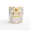 Lyft din vardagsrutin med vår eleganta keramikmugg, prydd med ett förtrollande mönster av glänsande gyllene löv och subtila gråblå accenter. Denna design, inspirerad av naturens skönhet och en touch av lyx, förvandlar varje sip till en stund av ren glädje. Perfekt för ditt morgonkaffe, en lugnande kopp te eller en värmande choklad, ger den blanka vita ytan liv åt de rika färgerna och den intrikata detaljrikedomen.
