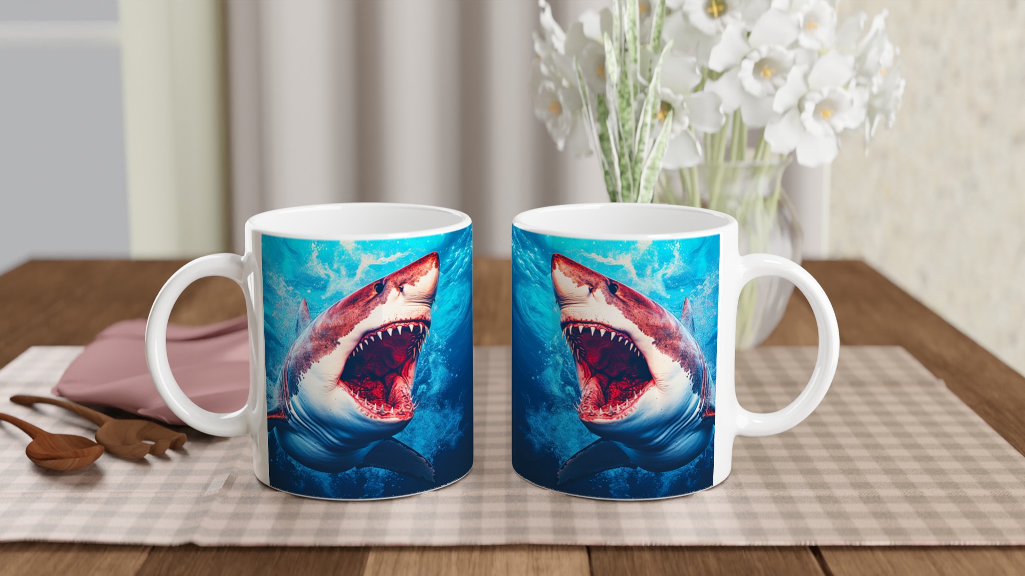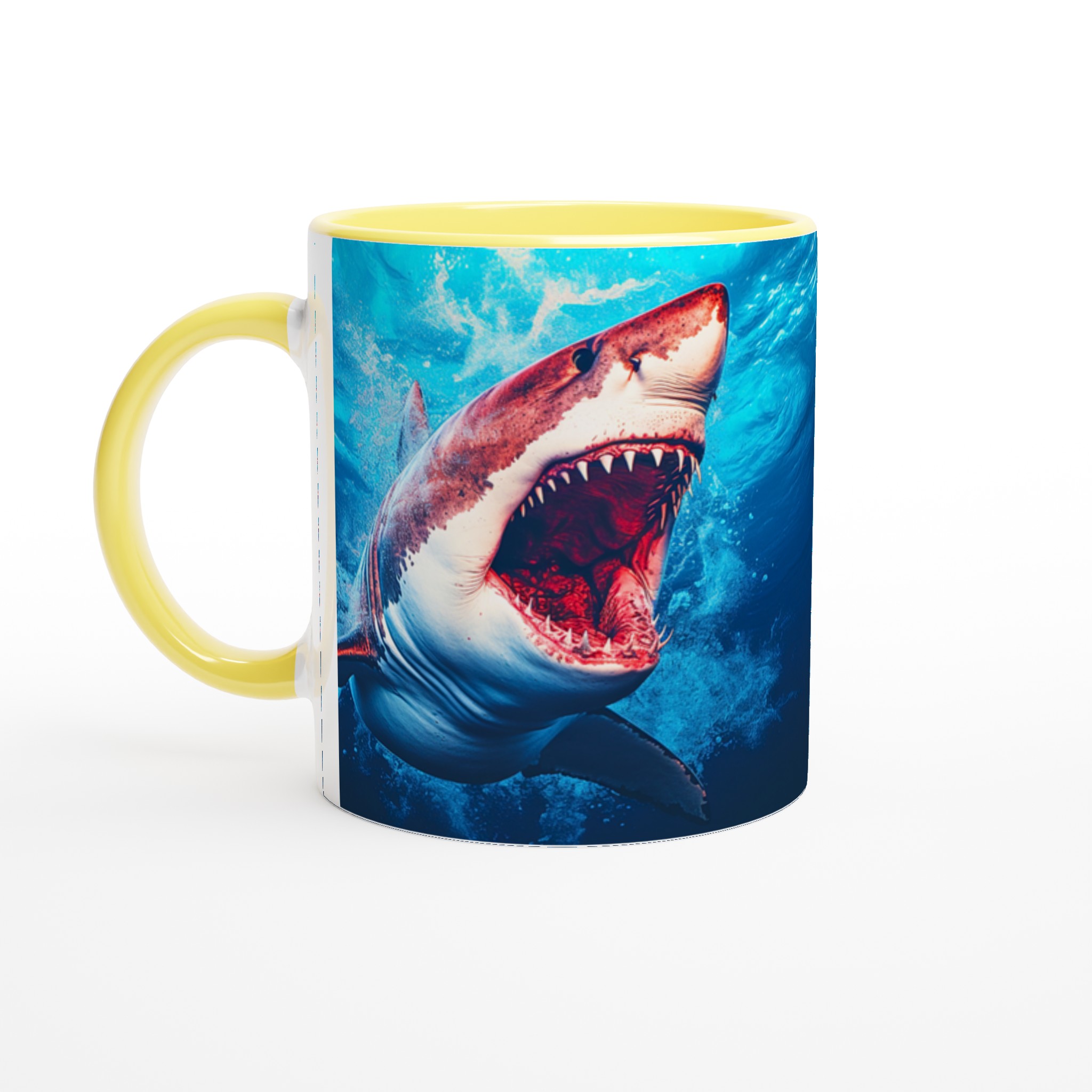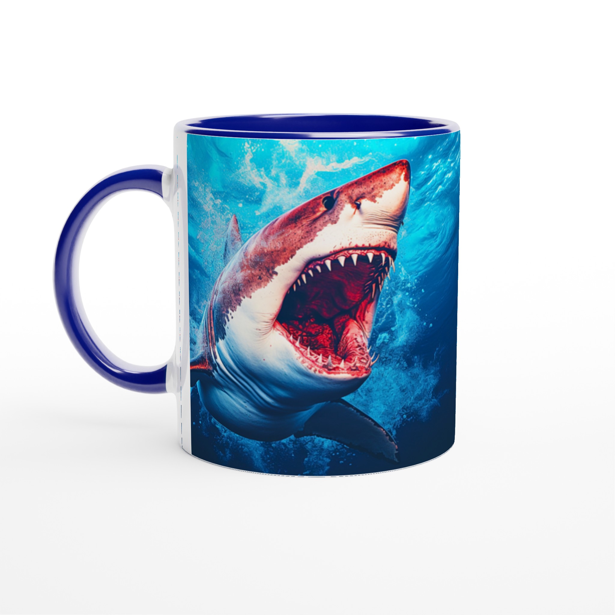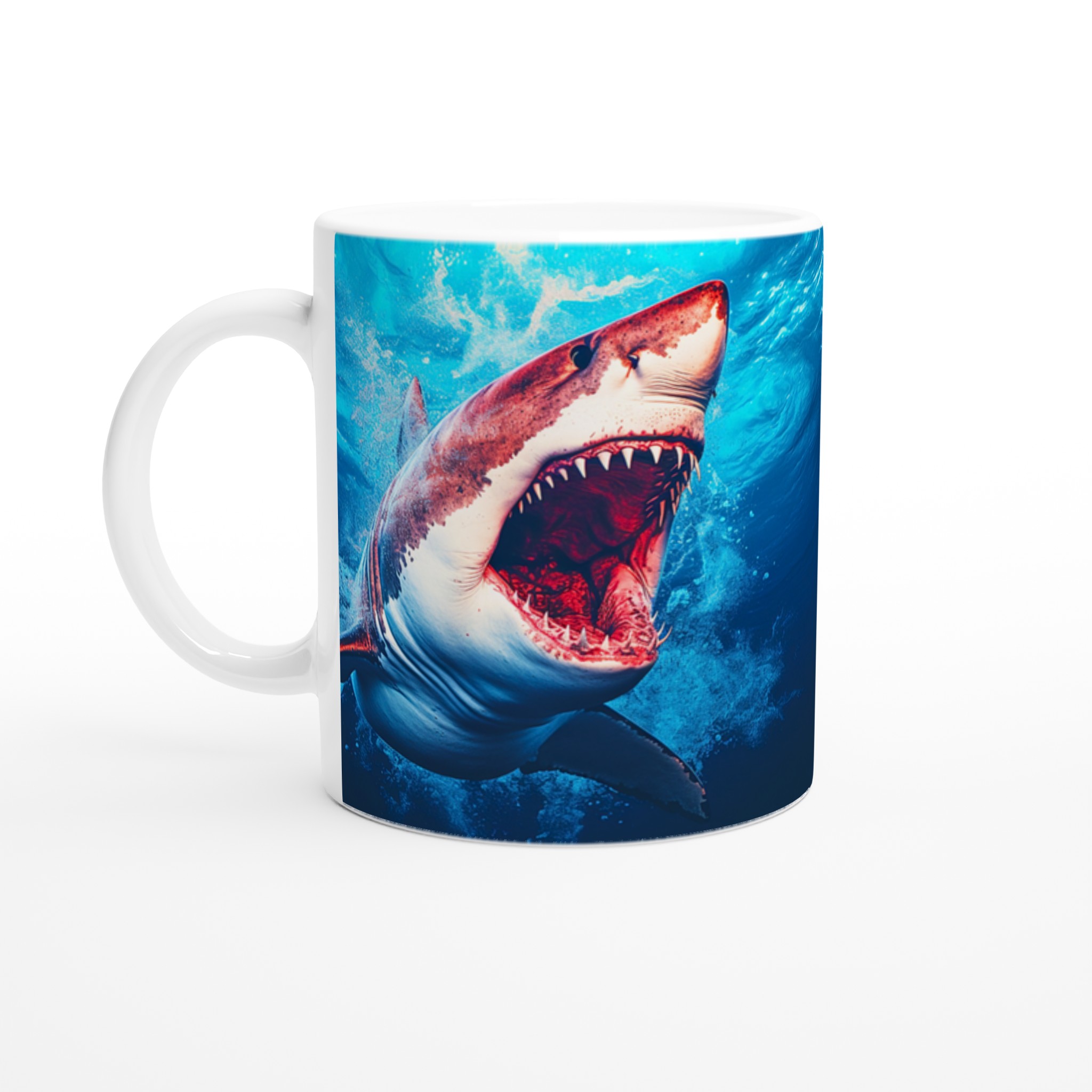 Dyk in i dagen med vår unika Keramisk mugg, perfekt för den som älskar havets majestätiska varelser. Denna mugg förvandlar varje kaffepaus till ett spännande undervattensäventyr. Den blanka vita ytan framhäver den kraftfulla hajen mot den djupblå bakgrunden, med klara och levande färger som fångar blicken. Oavsett om det är morgonkaffet, kvällens varma choklad eller en lugn kopp te, blir denna mugg snabbt din favorit.