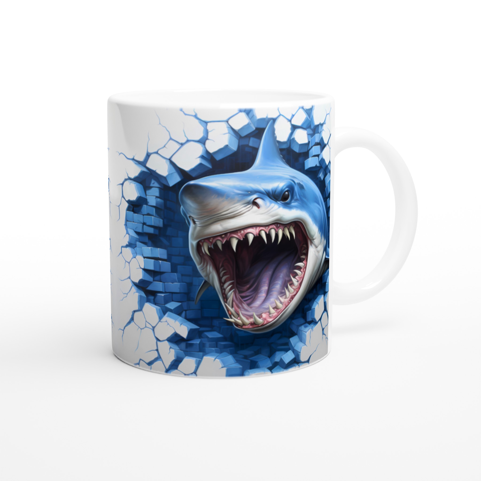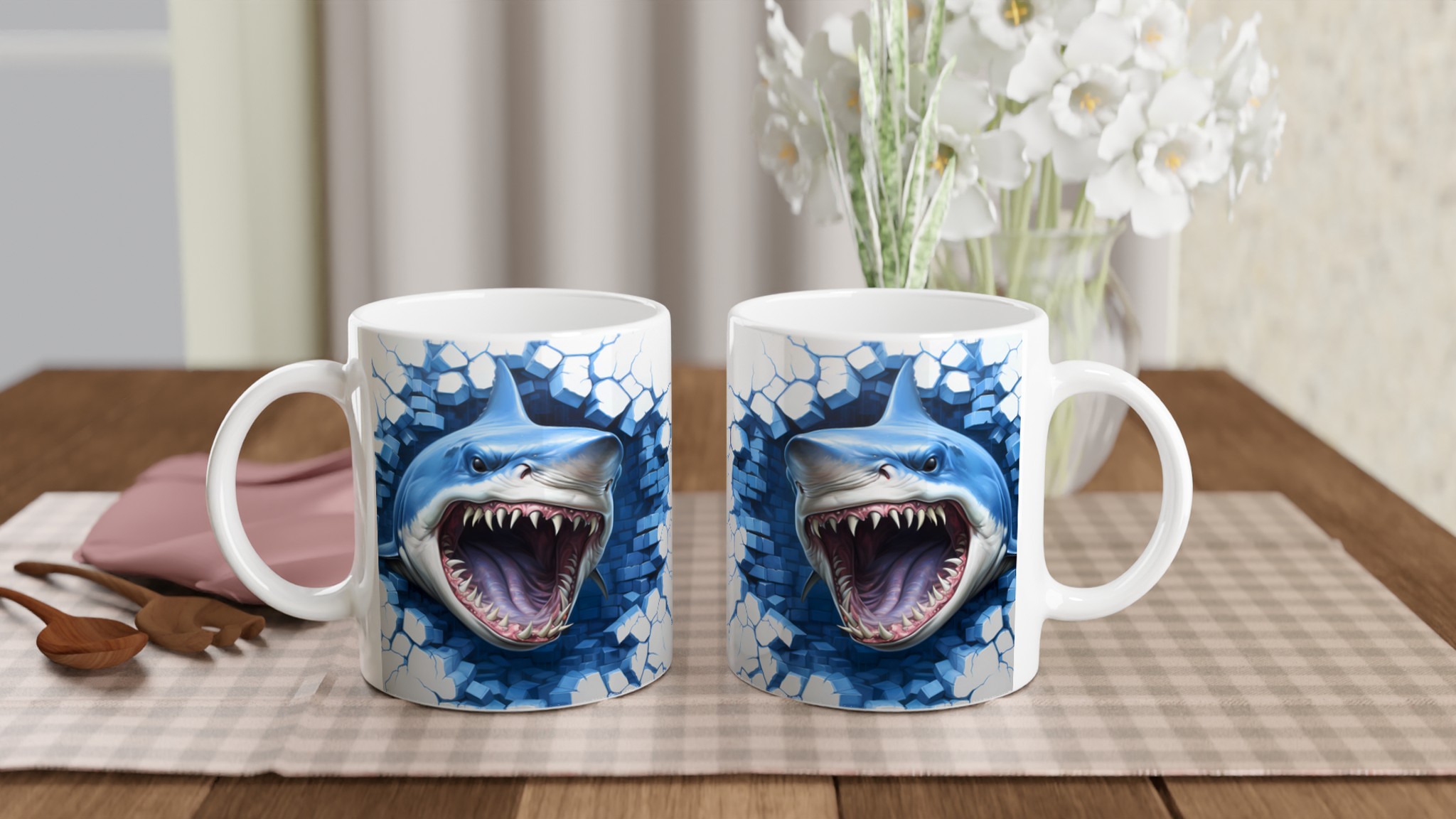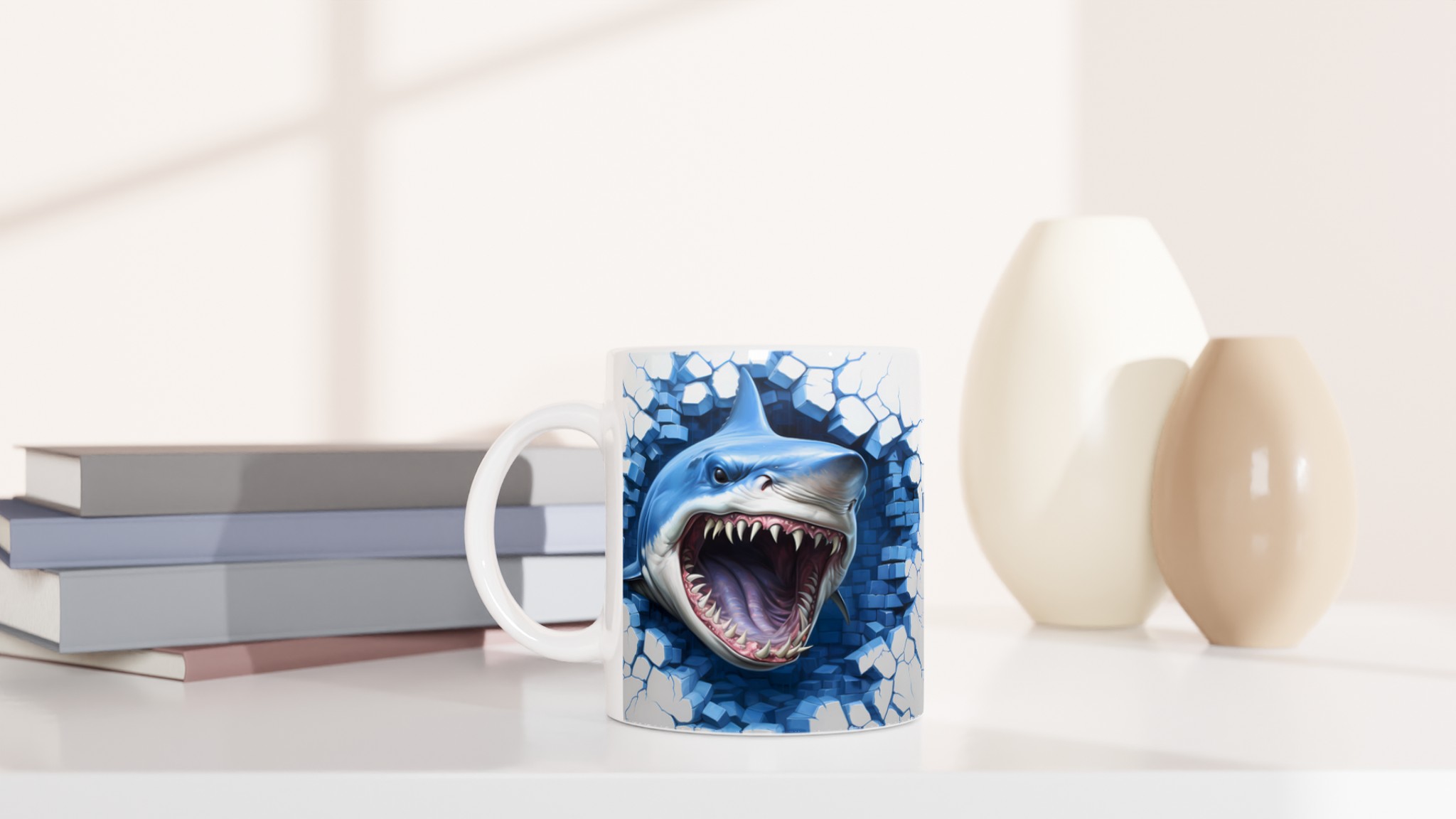 Vågar du ta en klunk? Den här unika keramiska muggen med ett dramatiskt hajen genombrott-motiv blir garanterat en samtalsstartare. Perfekt för den som älskar spänning och vill att morgonkaffet, kvällens varma choklad eller en kopp te ska kännas extra äventyrligt. Den blanka ytan får det djärva hajen att framträda med otrolig skärpa och levande färger, som behåller sin intensitet även efter otaliga turer i mikron och diskmaskinen.