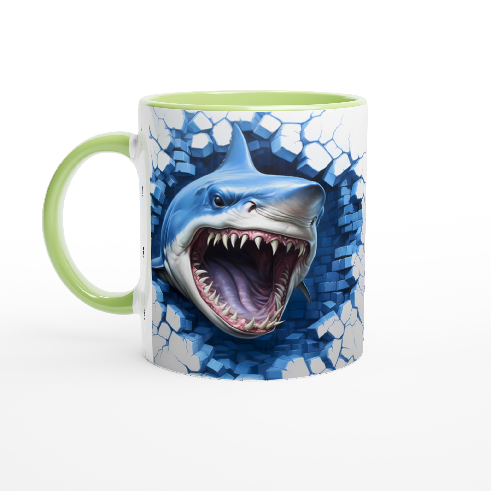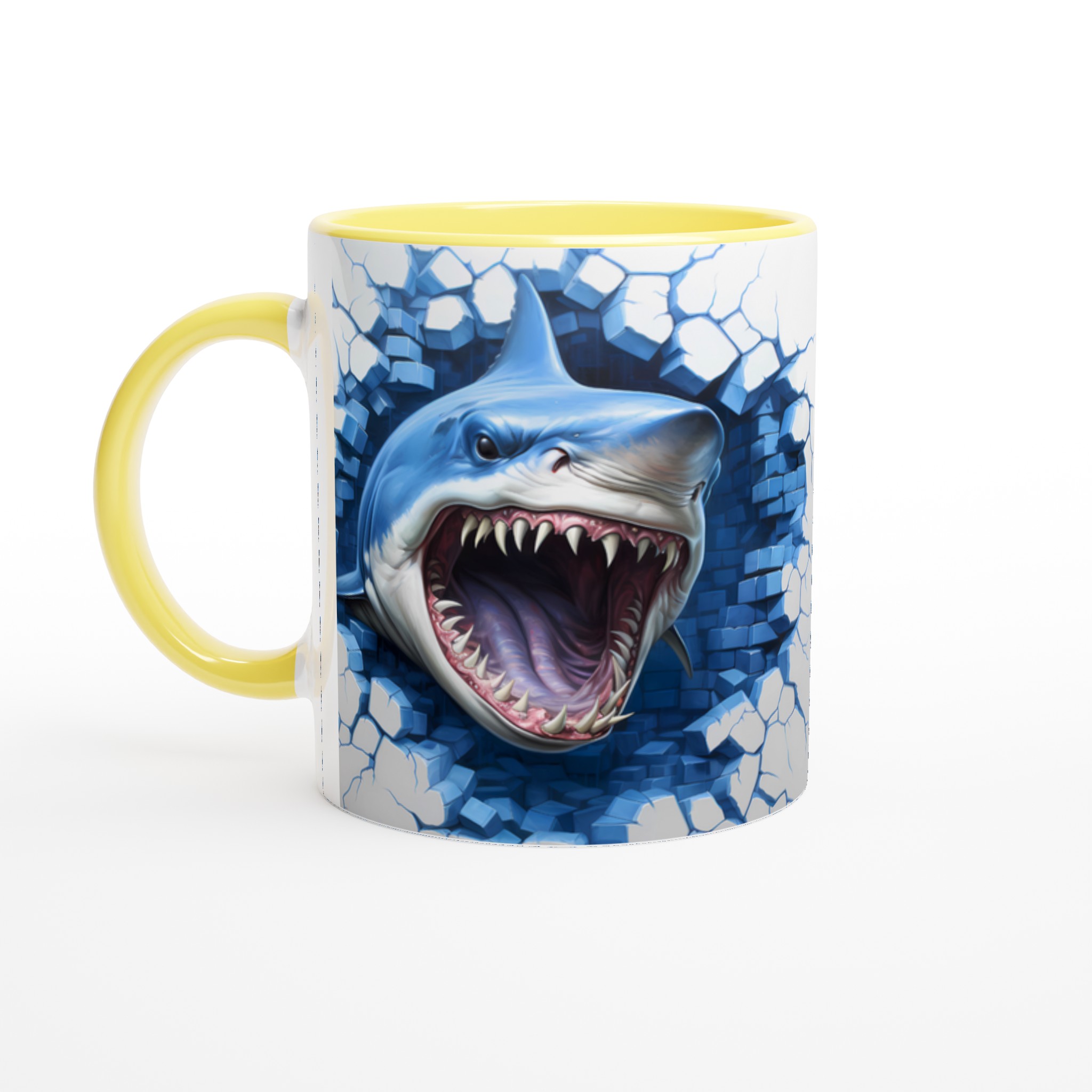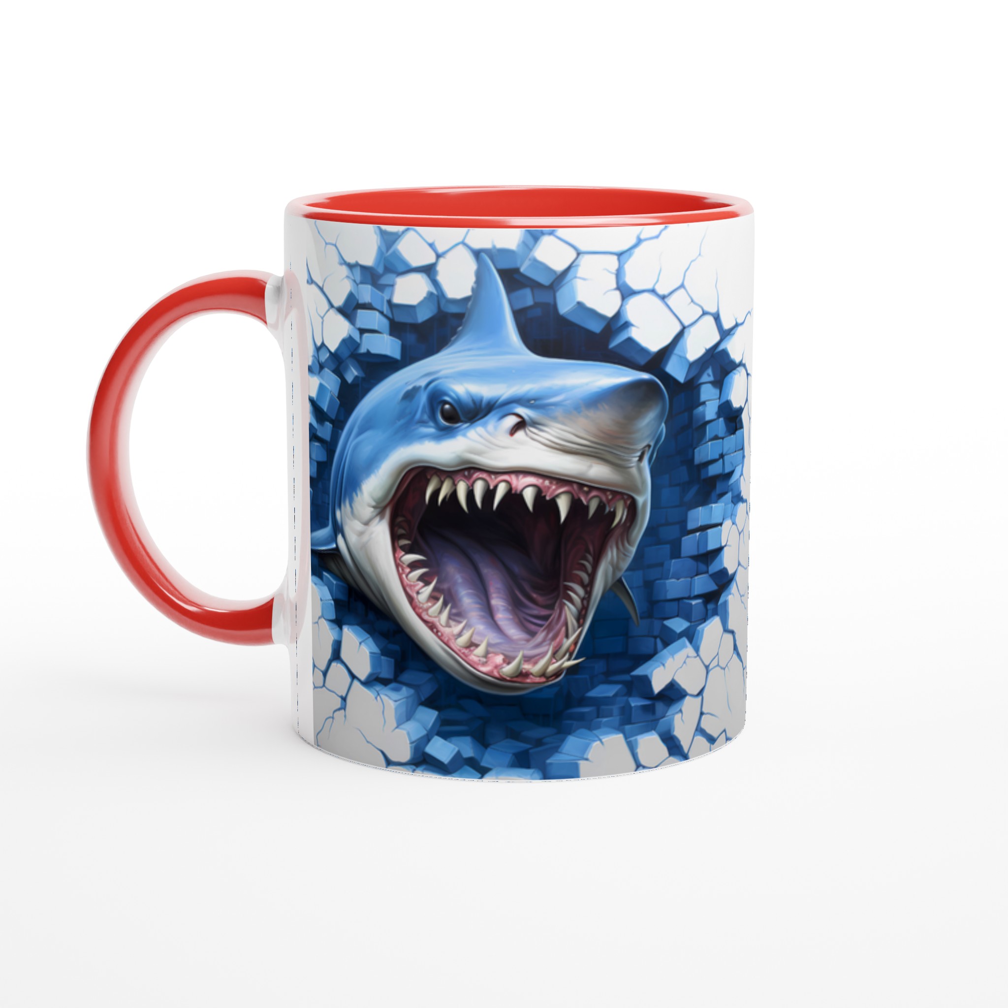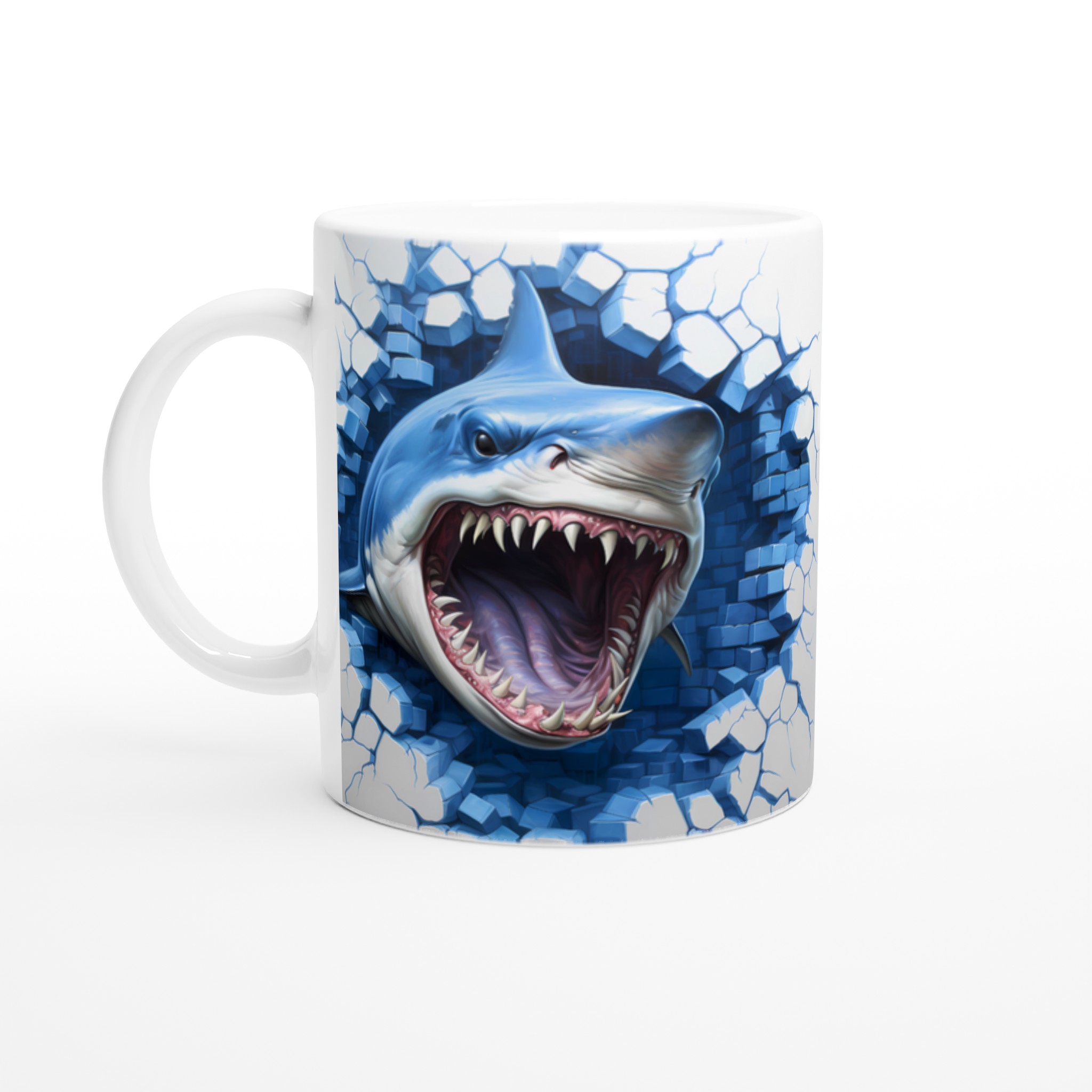 Vågar du ta en klunk? Den här unika keramiska muggen med ett dramatiskt hajen genombrott-motiv blir garanterat en samtalsstartare. Perfekt för den som älskar spänning och vill att morgonkaffet, kvällens varma choklad eller en kopp te ska kännas extra äventyrligt. Den blanka ytan får det djärva hajen att framträda med otrolig skärpa och levande färger, som behåller sin intensitet även efter otaliga turer i mikron och diskmaskinen.