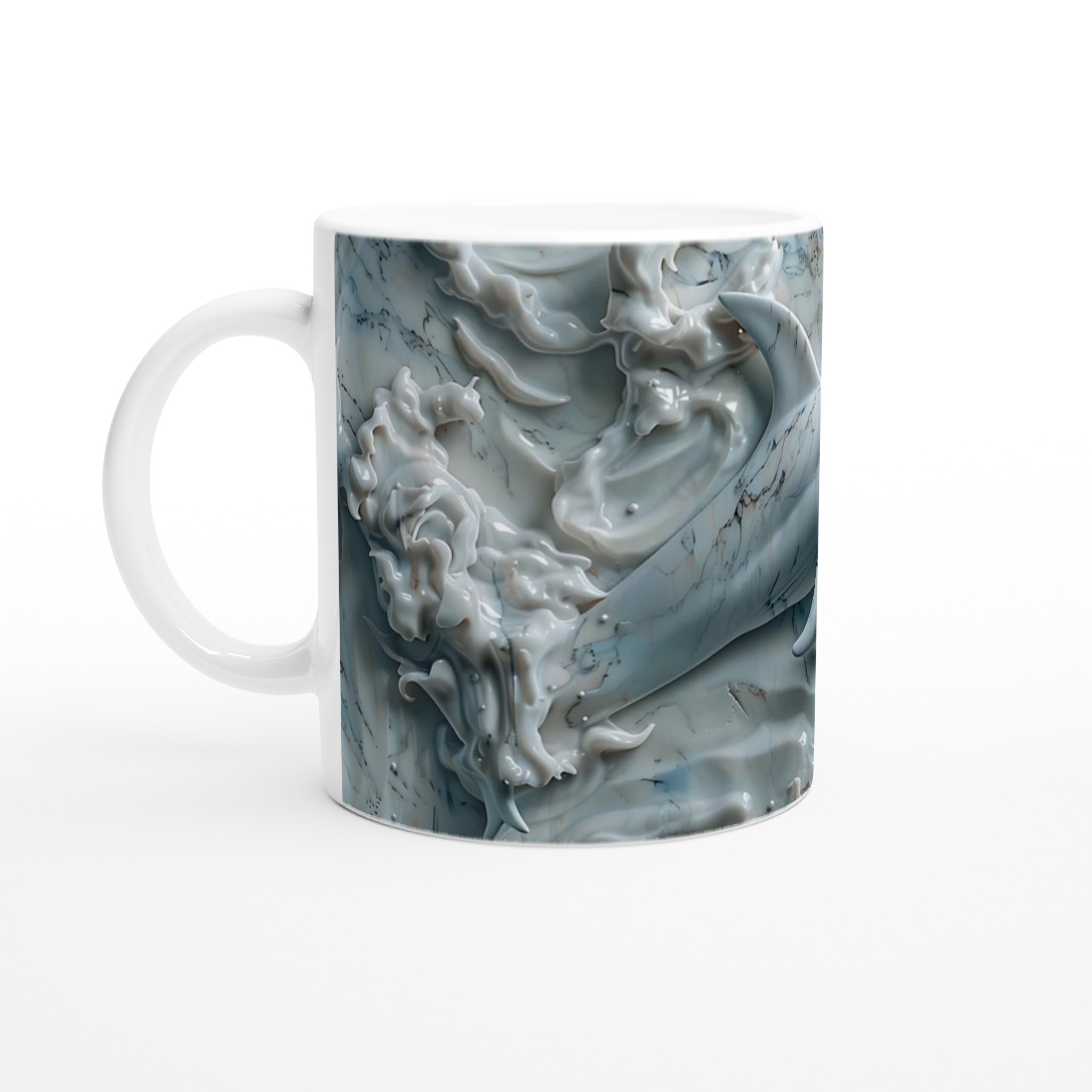 Lyft varje kaffestund med vår premium keramikmugg – stilren, hållbar och skapad för att låta ditt motiv glänsa. Den blanka vita ytan ger ett skarpt och levande tryck som verkligen sticker ut, oavsett om det är en personlig design, ett roligt citat eller en present till någon du tycker om. Inspirerad av havets lugna elegans, med en delfin som simmar genom marmorerade vågor, ger denna mugg en känsla av lugn och sofistikation till din dag.