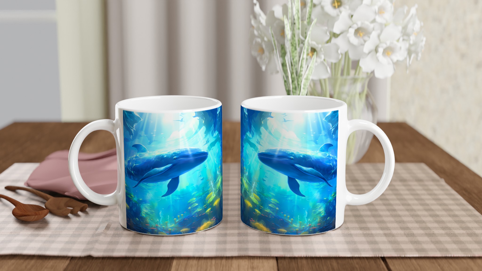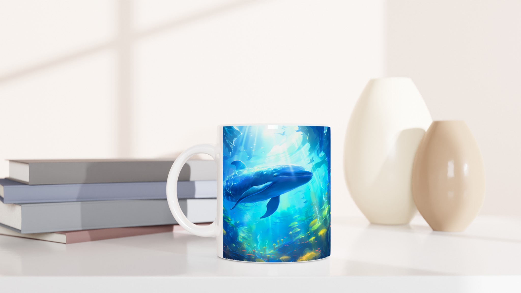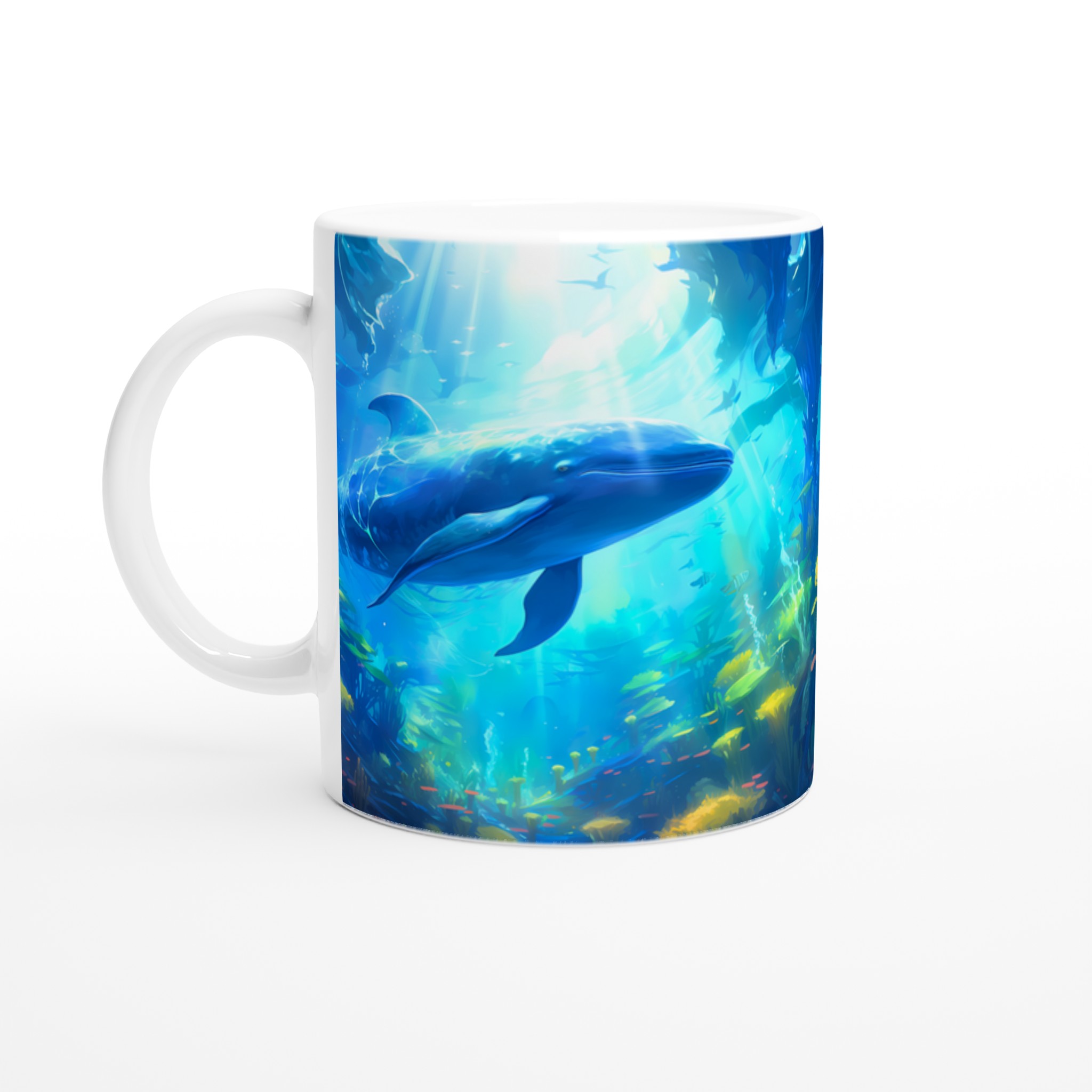 Dyk ner i en värld av lugn och skönhet med vår ”Havets magi” keramiska mugg. Låt den förtrollande bilden av simmande delfiner bland ett livfullt korallrev förgylla din fikastund. Varje klunk blir en påminnelse om havets oändliga djup och rogivande krafter, perfekt för att starta dagen med en känsla av äventyr eller varva ner efteråt.