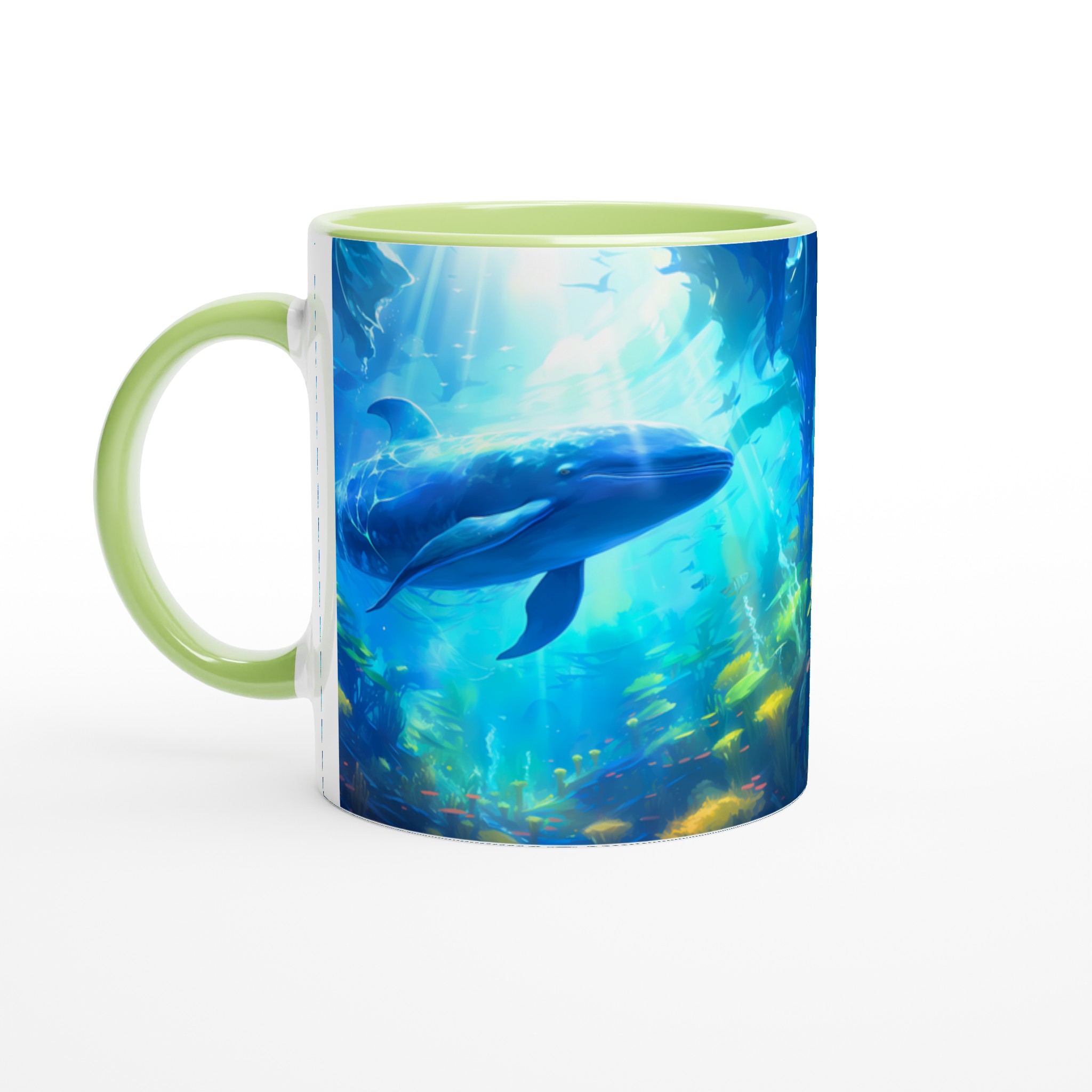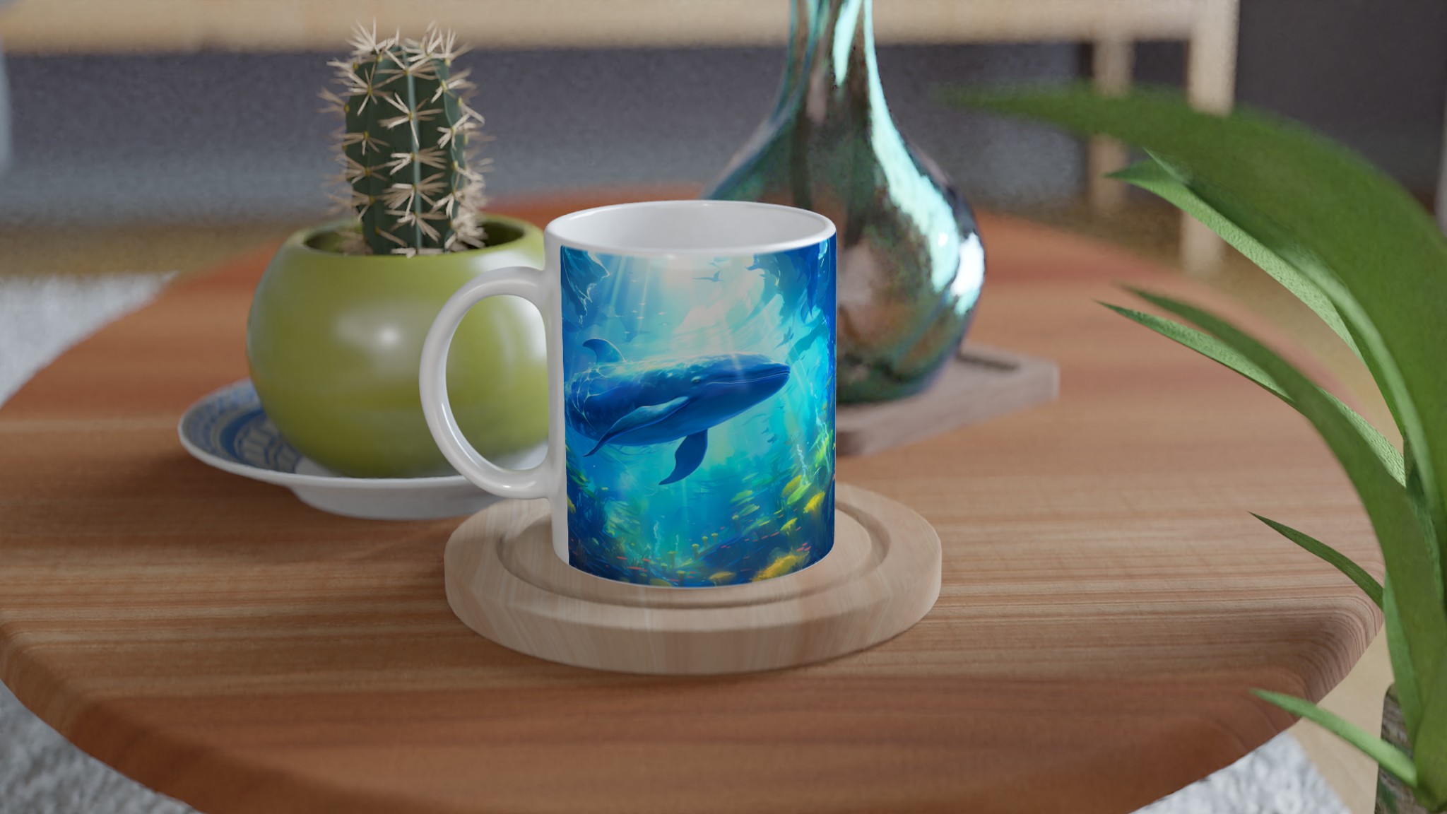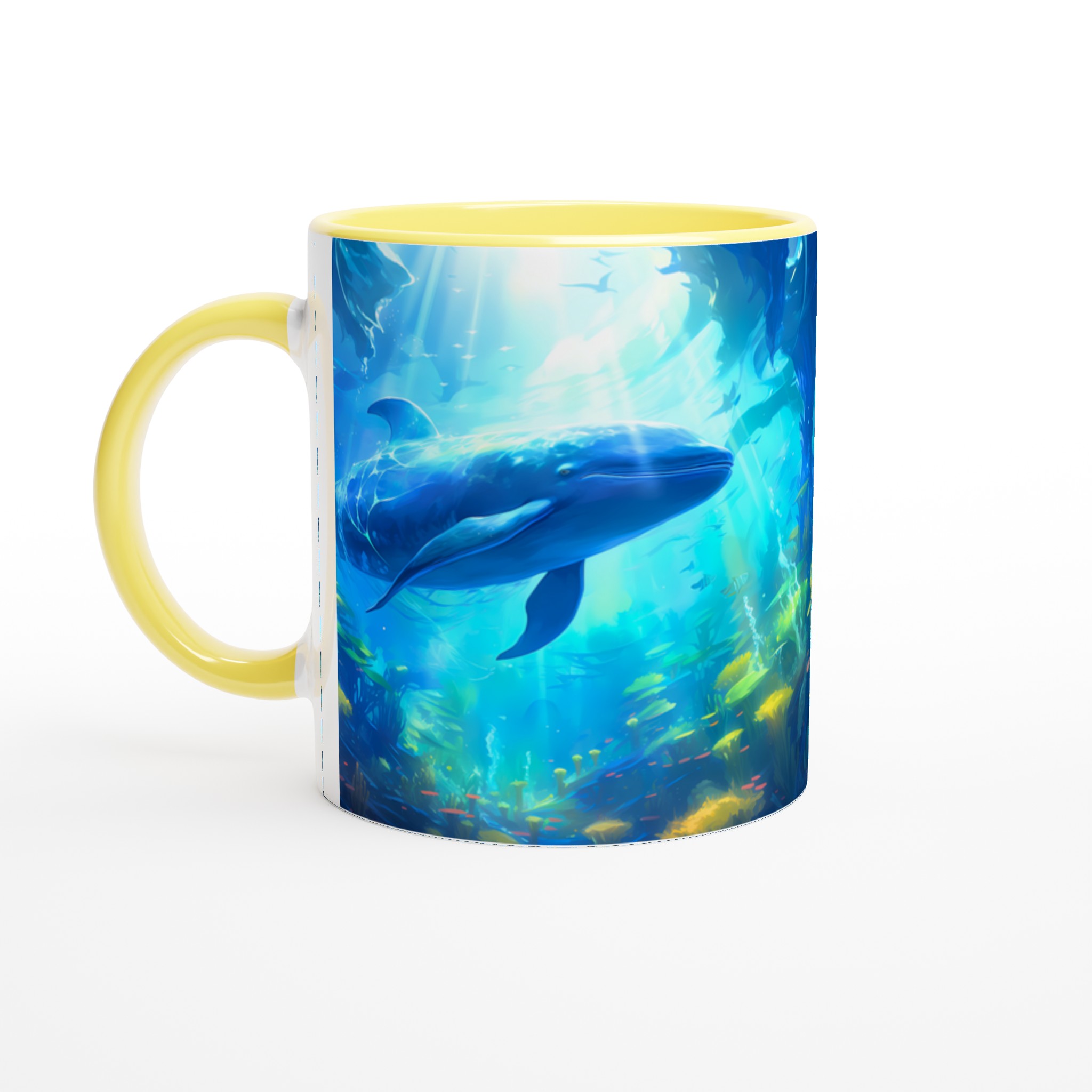 Dyk ner i en värld av lugn och skönhet med vår ”Havets magi” keramiska mugg. Låt den förtrollande bilden av simmande delfiner bland ett livfullt korallrev förgylla din fikastund. Varje klunk blir en påminnelse om havets oändliga djup och rogivande krafter, perfekt för att starta dagen med en känsla av äventyr eller varva ner efteråt.