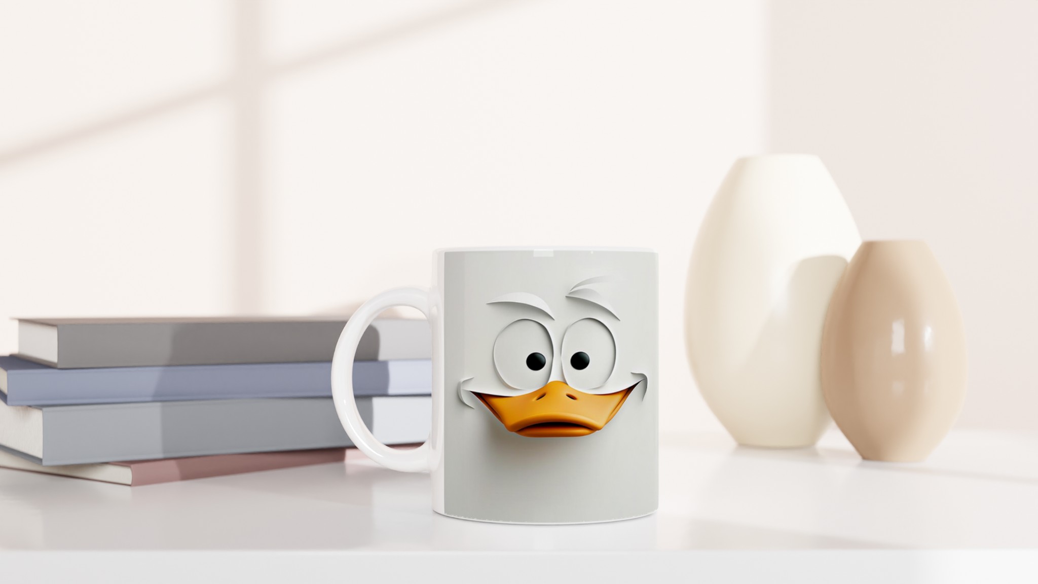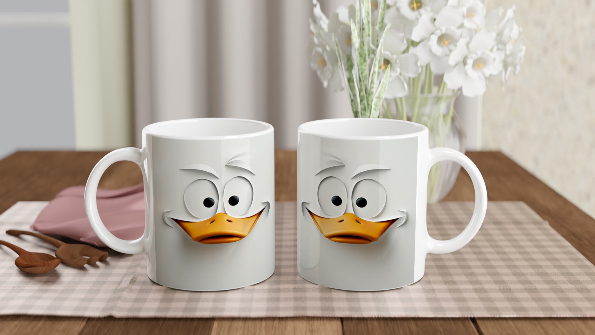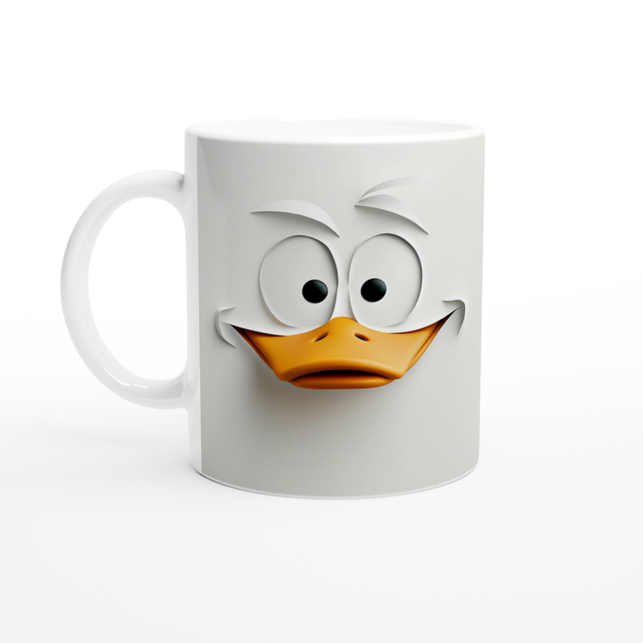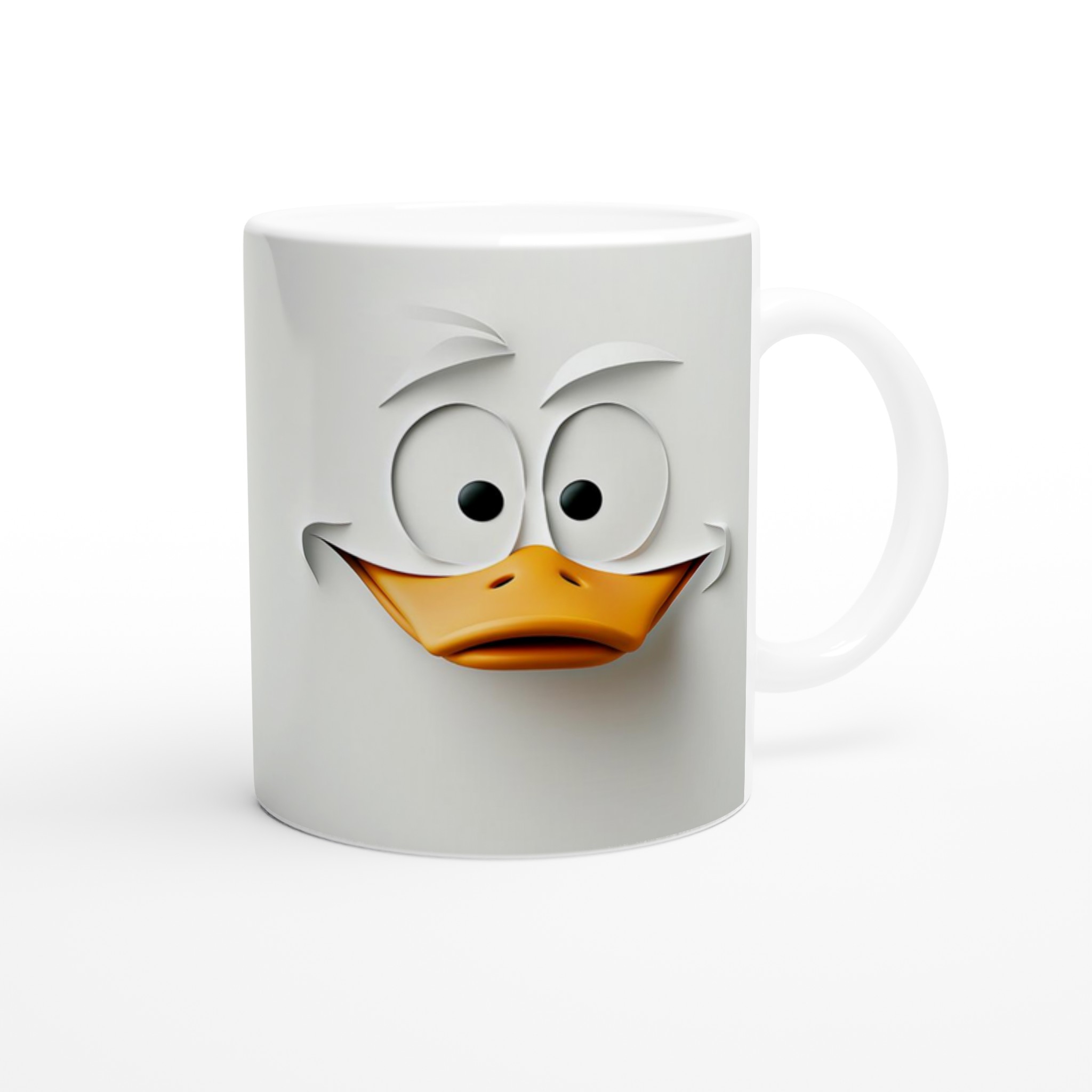 Väck morgonleendet med vår humoristiska keramikmugg! Denna lekfulla design, inspirerad av Kalle Ankas ikoniska uttryck, dyker upp från muggens yta med en charmig 3D-effekt. Välj din favoritfärg bland våra sju livfulla alternativ – Ceramic White, Yellow, Pink, Green, Red, Black, eller Blue – och skapa en personlig touch som gör varje fikastund lite roligare.