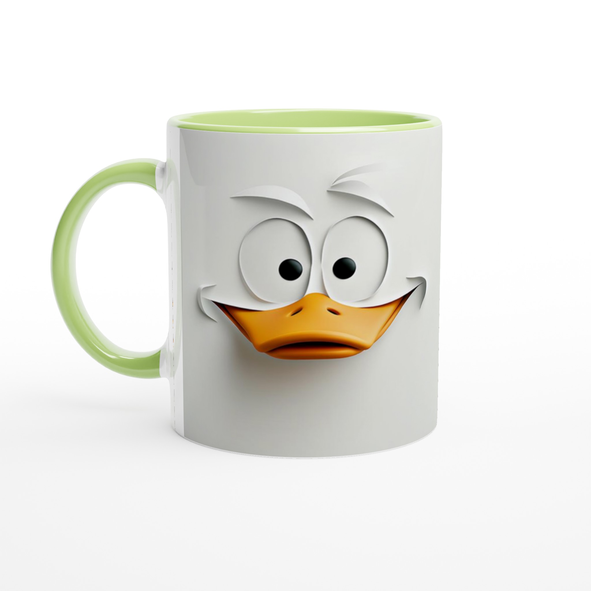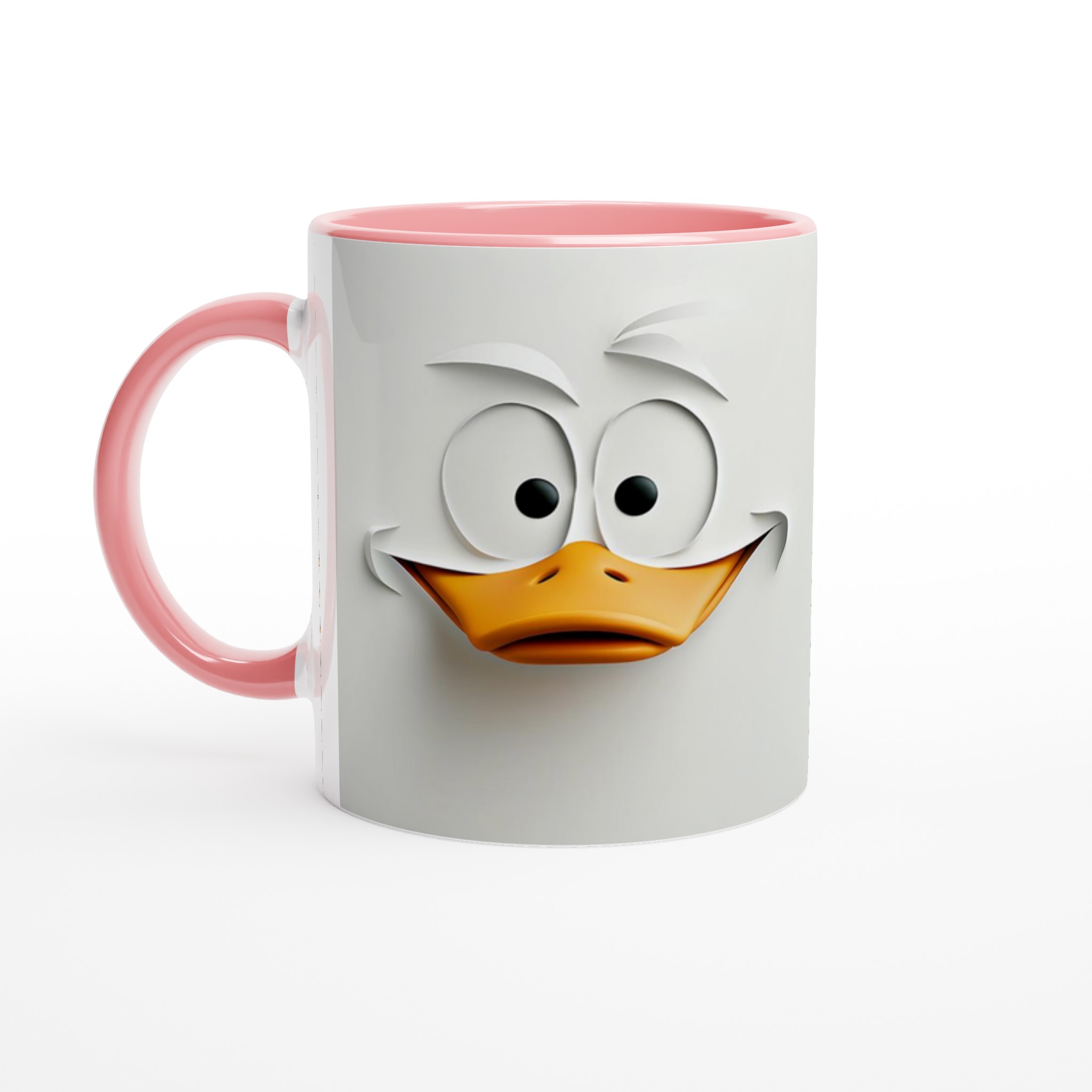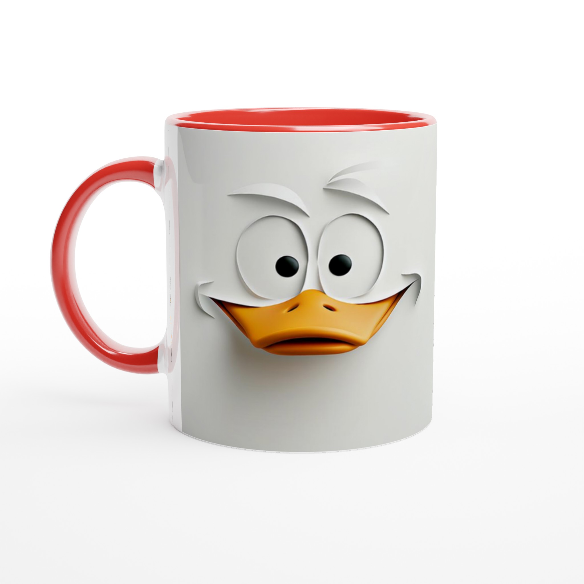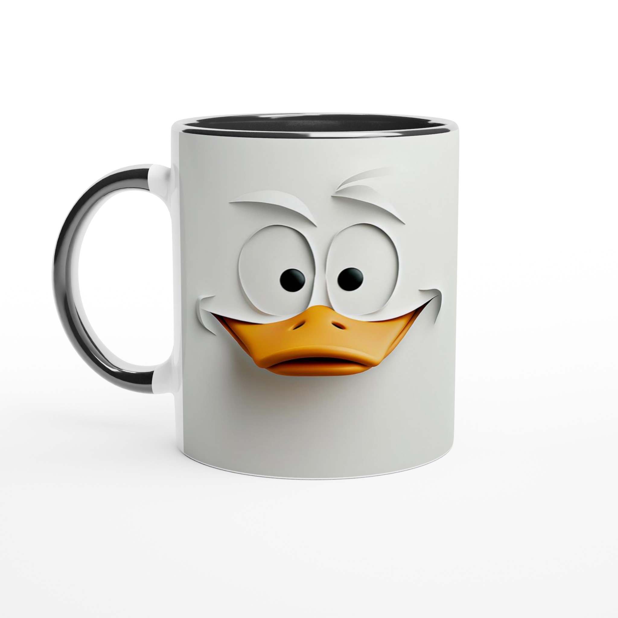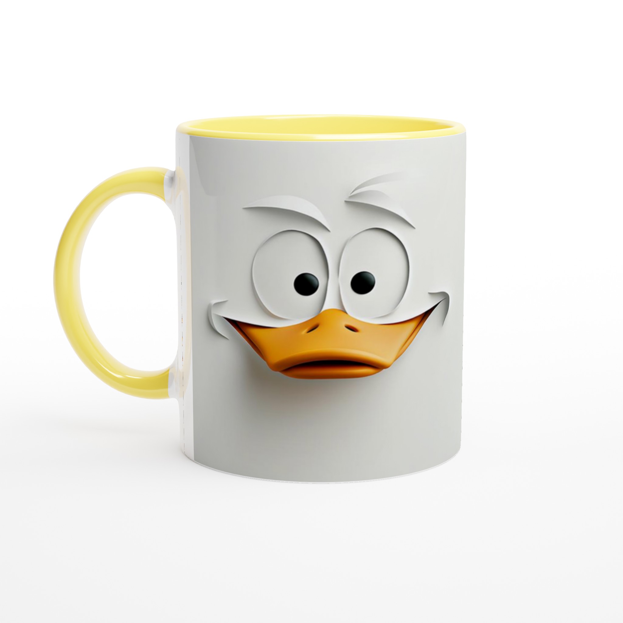 Väck morgonleendet med vår humoristiska keramikmugg! Denna lekfulla design, inspirerad av Kalle Ankas ikoniska uttryck, dyker upp från muggens yta med en charmig 3D-effekt. Välj din favoritfärg bland våra sju livfulla alternativ – Ceramic White, Yellow, Pink, Green, Red, Black, eller Blue – och skapa en personlig touch som gör varje fikastund lite roligare.