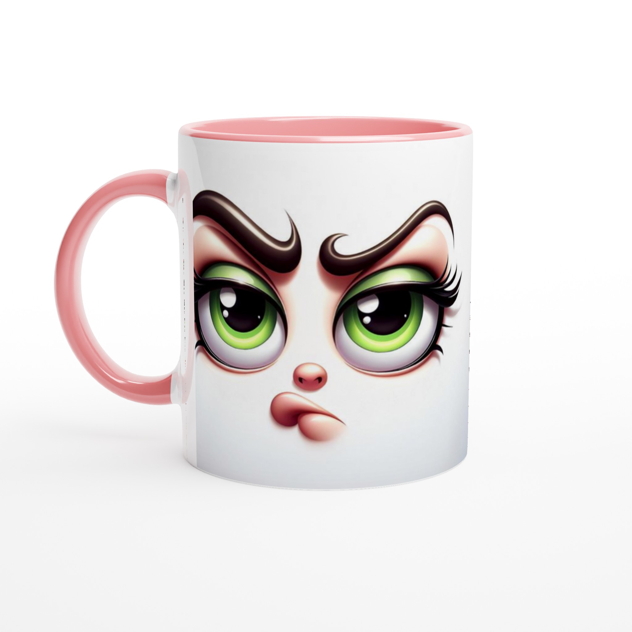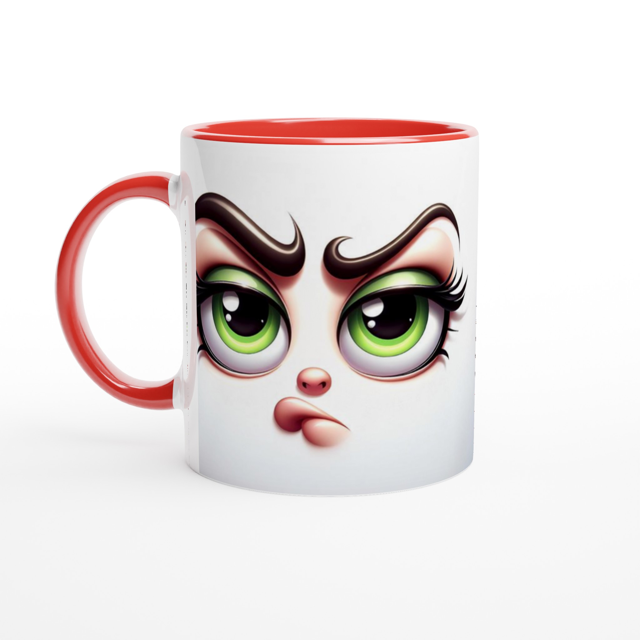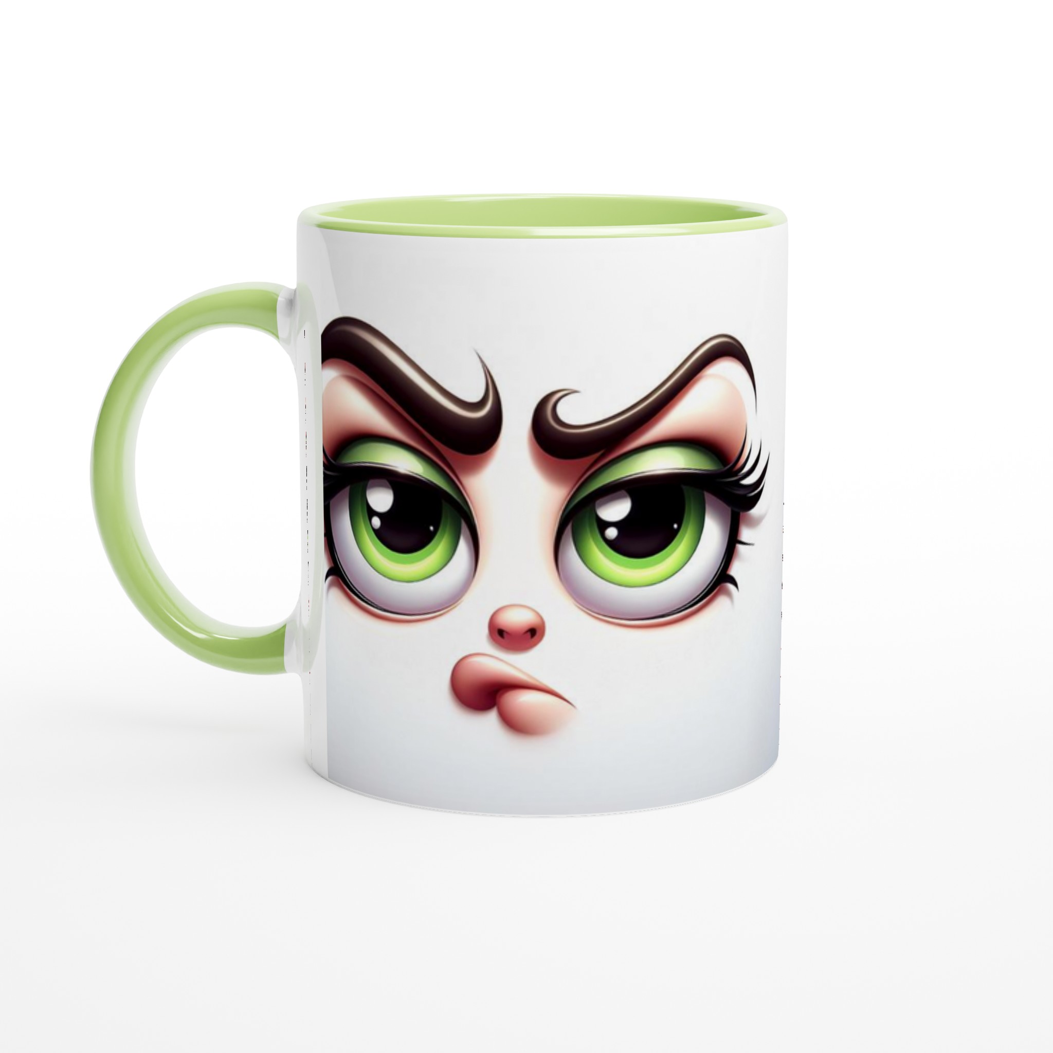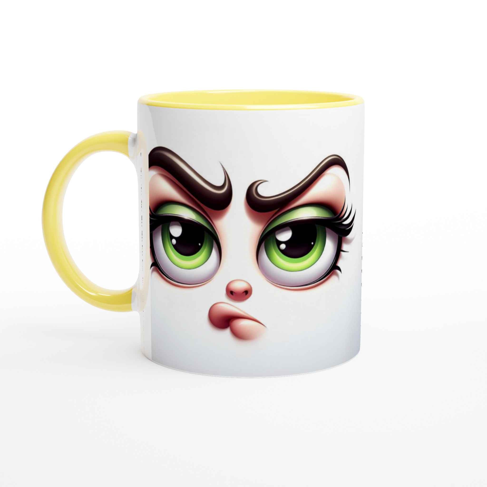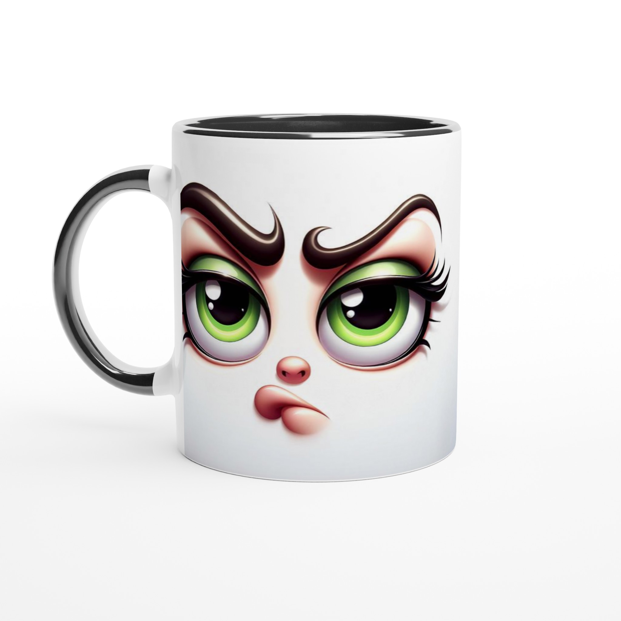 Lyft varje kaffestund med vår premium keramikmugg – stilren, hållbar och skapad för att låta ditt motiv glänsa. Denna lekfulla mugg fångar ögat med sitt uttrycksfulla ansikte, komplett med stora, gröna ögon och en humoristisk twist som garanterat sprider glädje. Perfekt för den som älskar att starta dagen med ett leende eller vill ge bort en present som verkligen sticker ut.