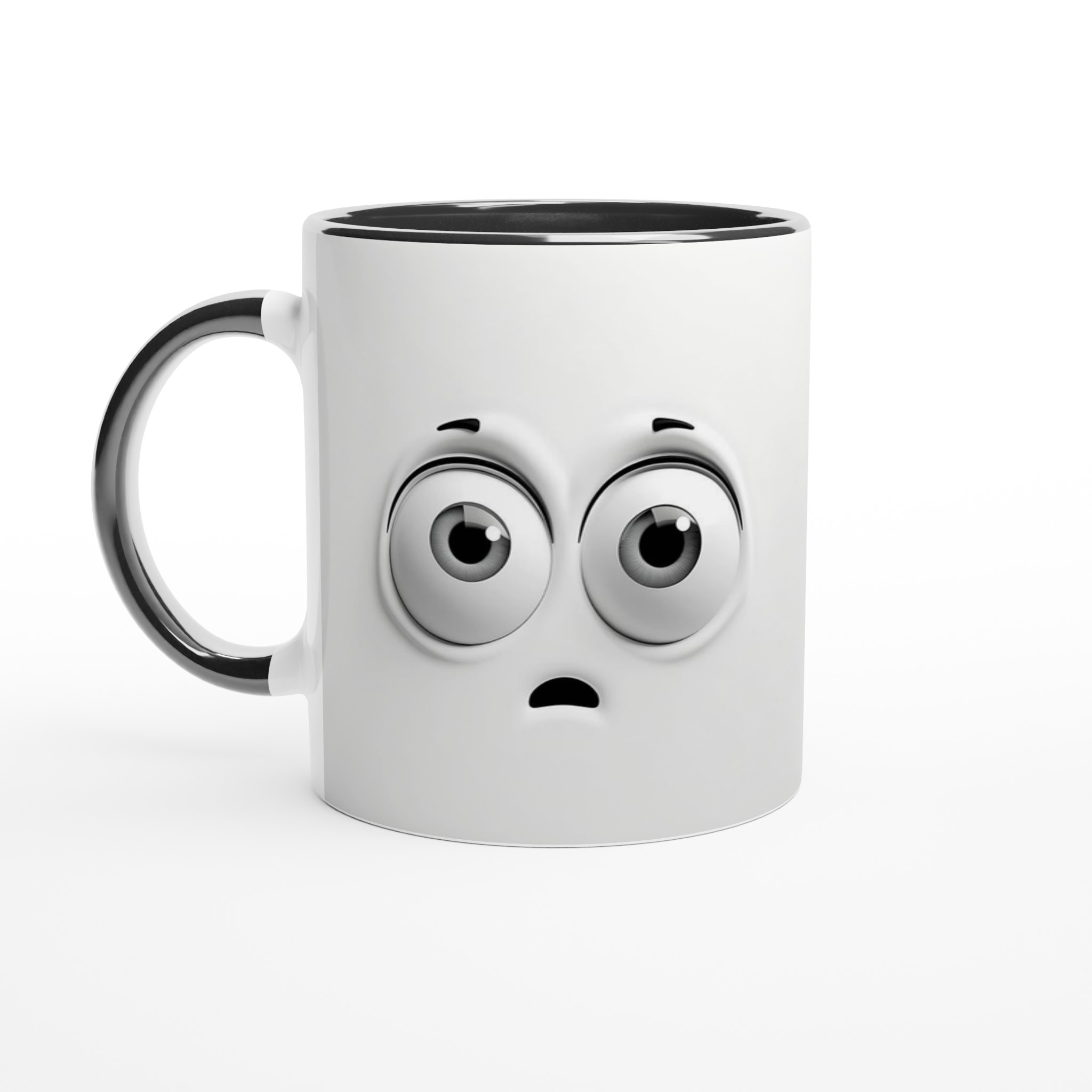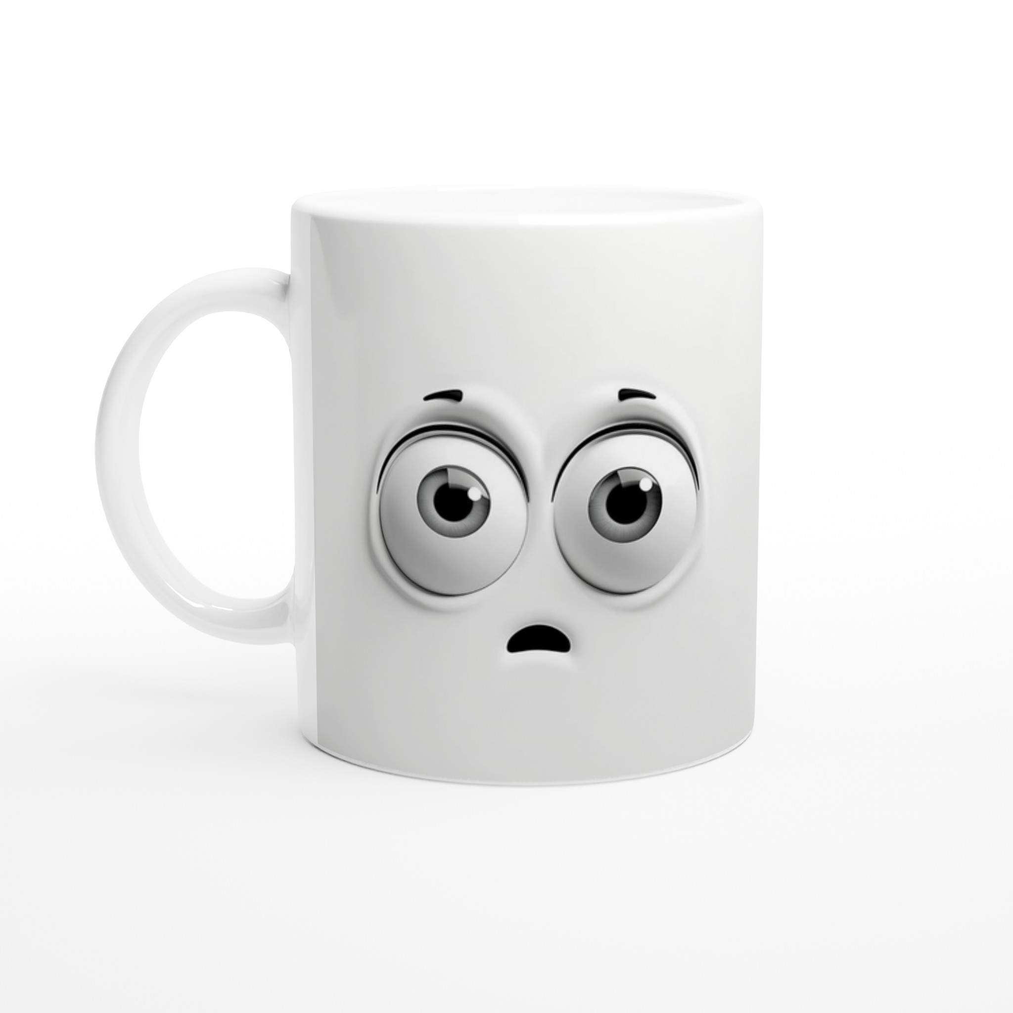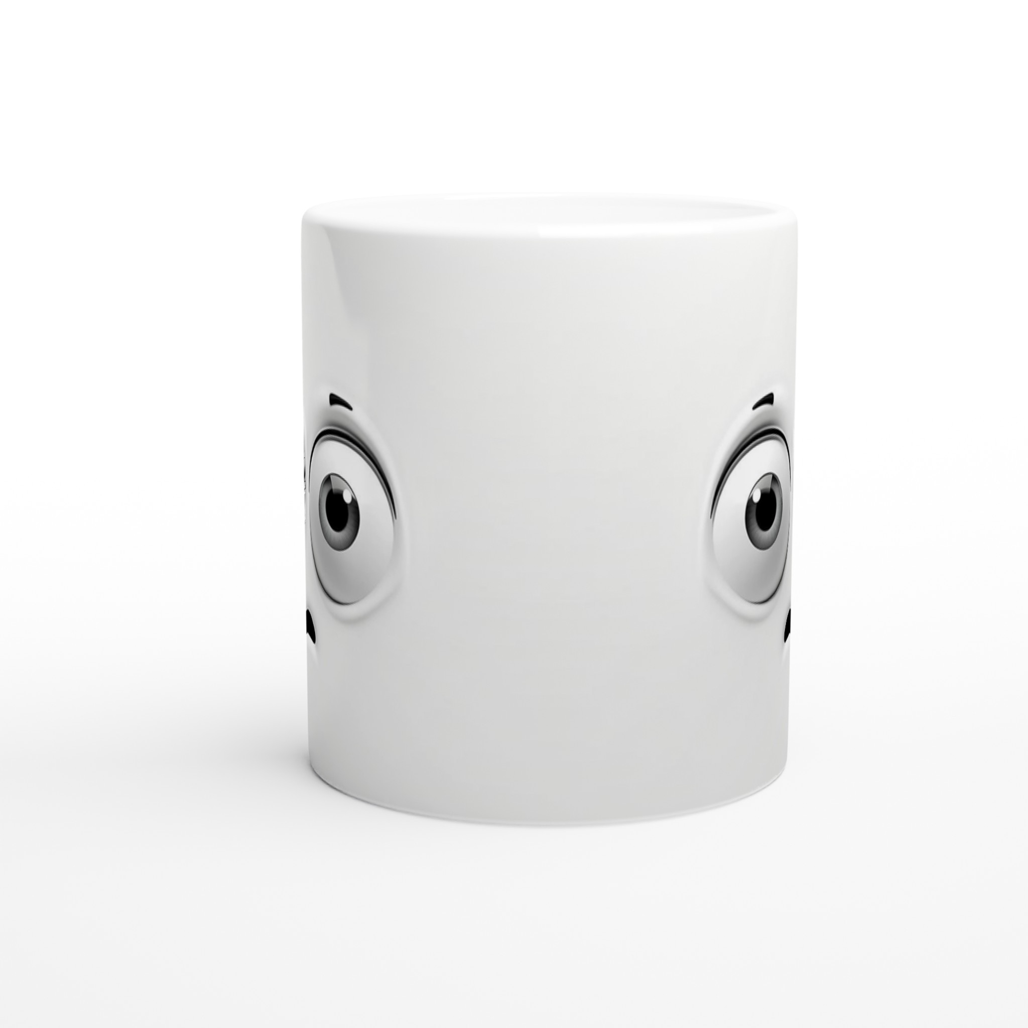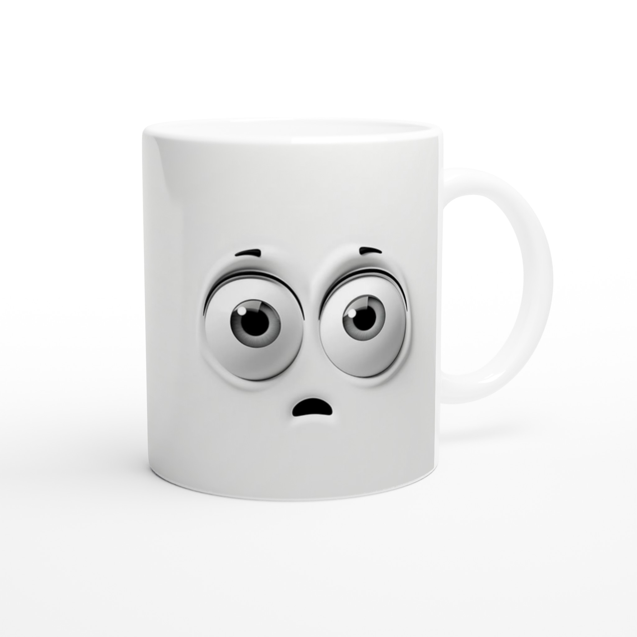 Denna charmiga mugg med sin blanka vita yta ger ett skarpt och levande tryck som verkligen sticker ut. Oavsett om du väljer en personlig design, ett roligt citat eller den här unika illustrationen av de förvånade ögonen som garanterat sprider glädje, blir det en present till någon du tycker om eller en ny favorit i ditt eget kök.