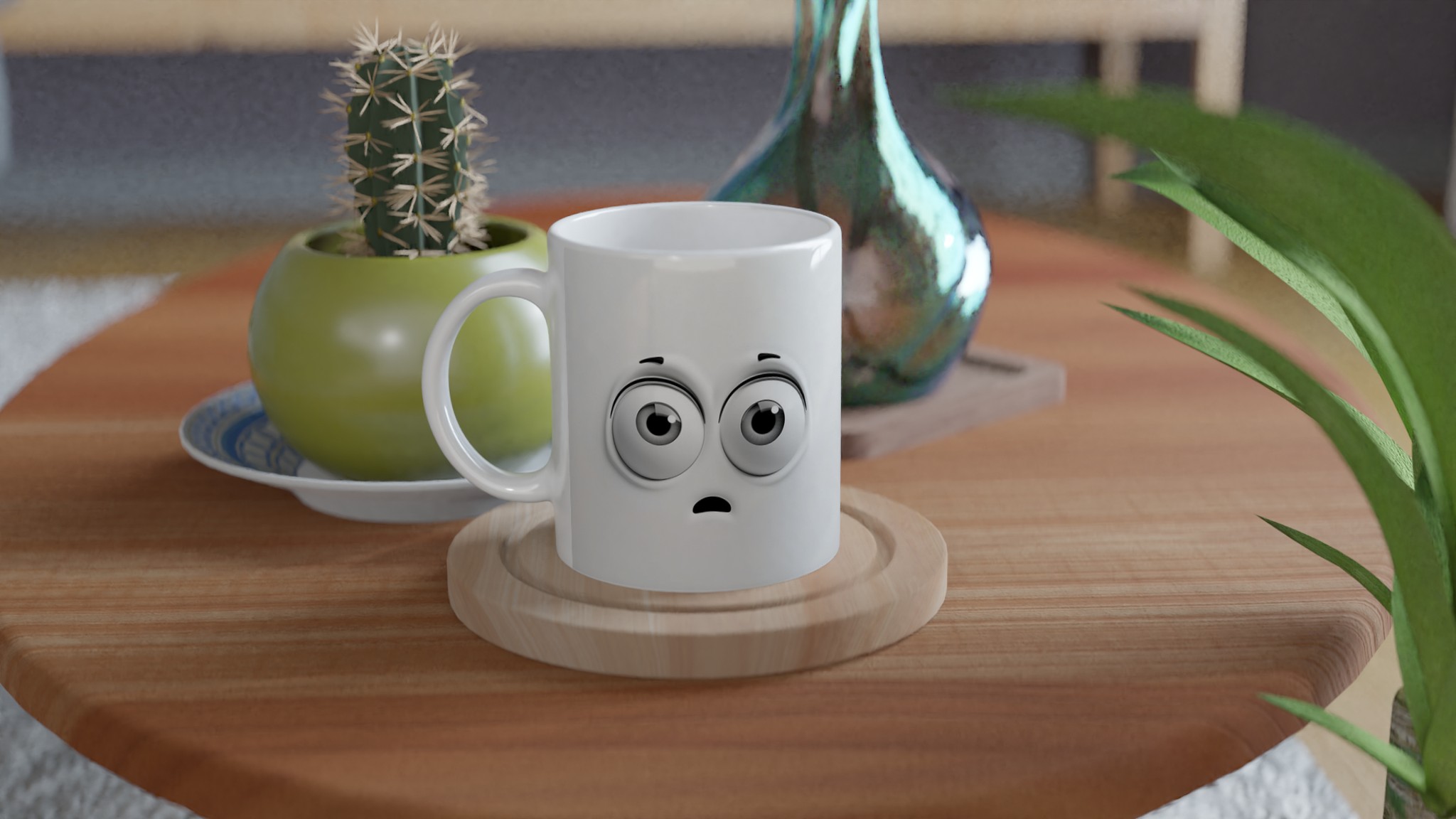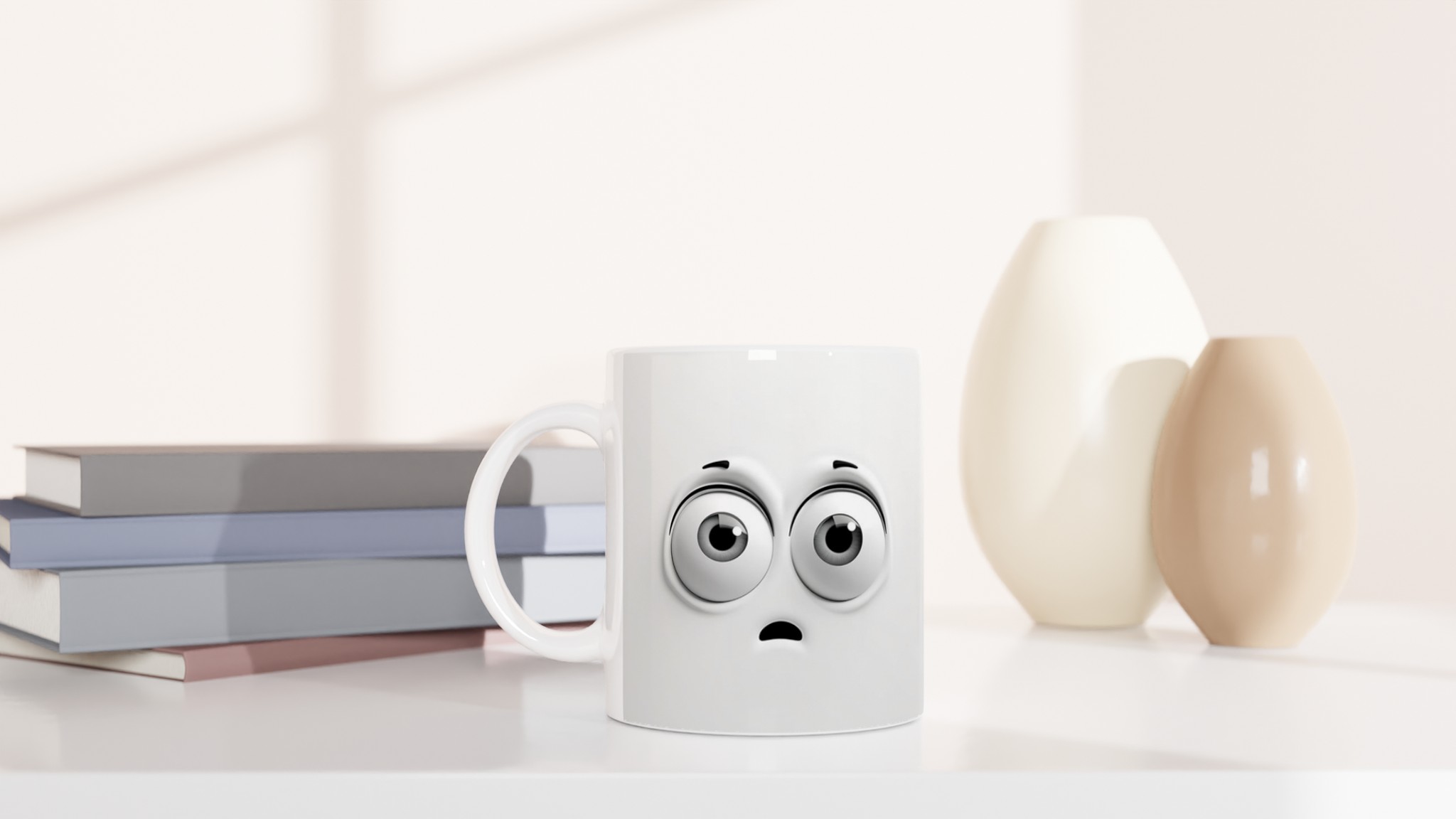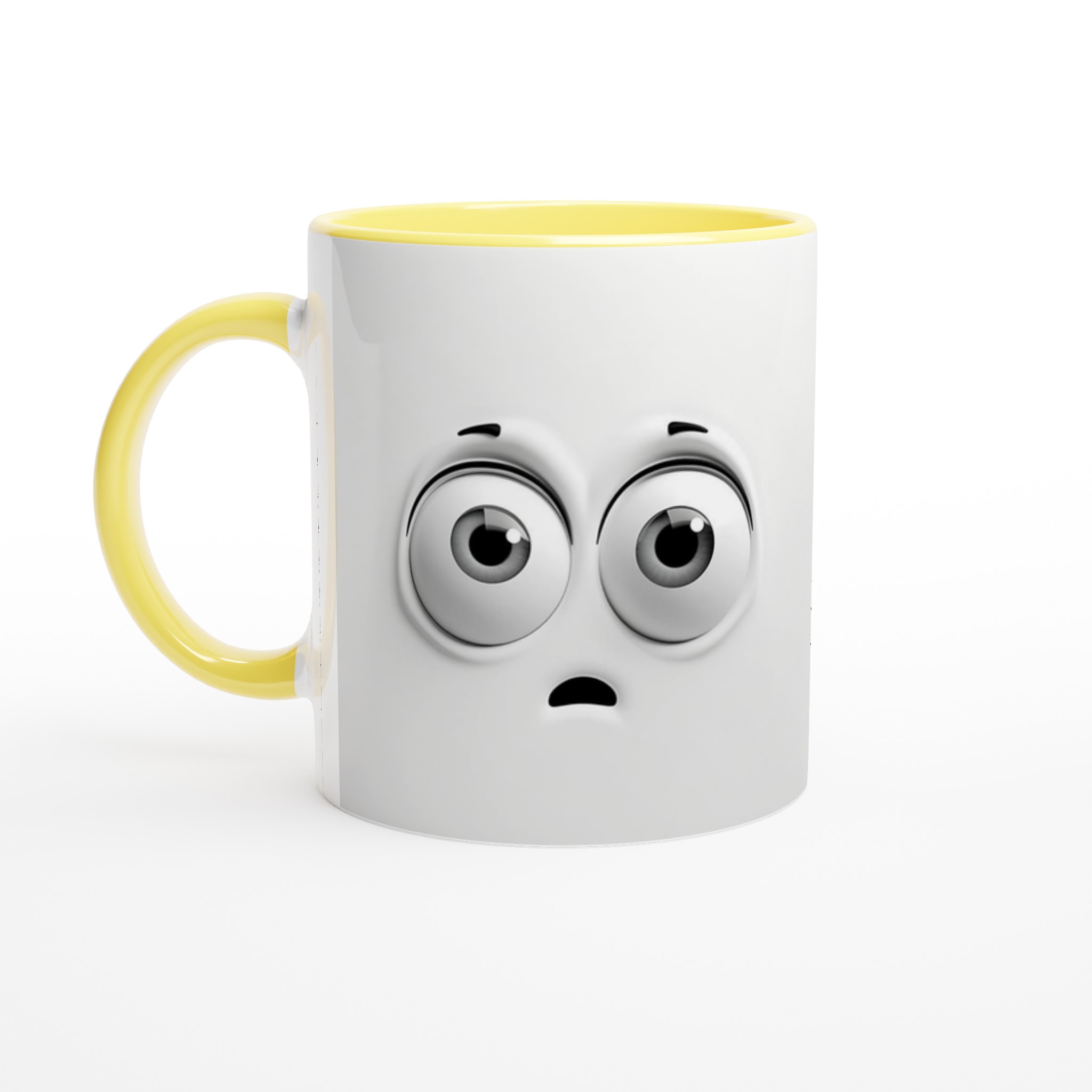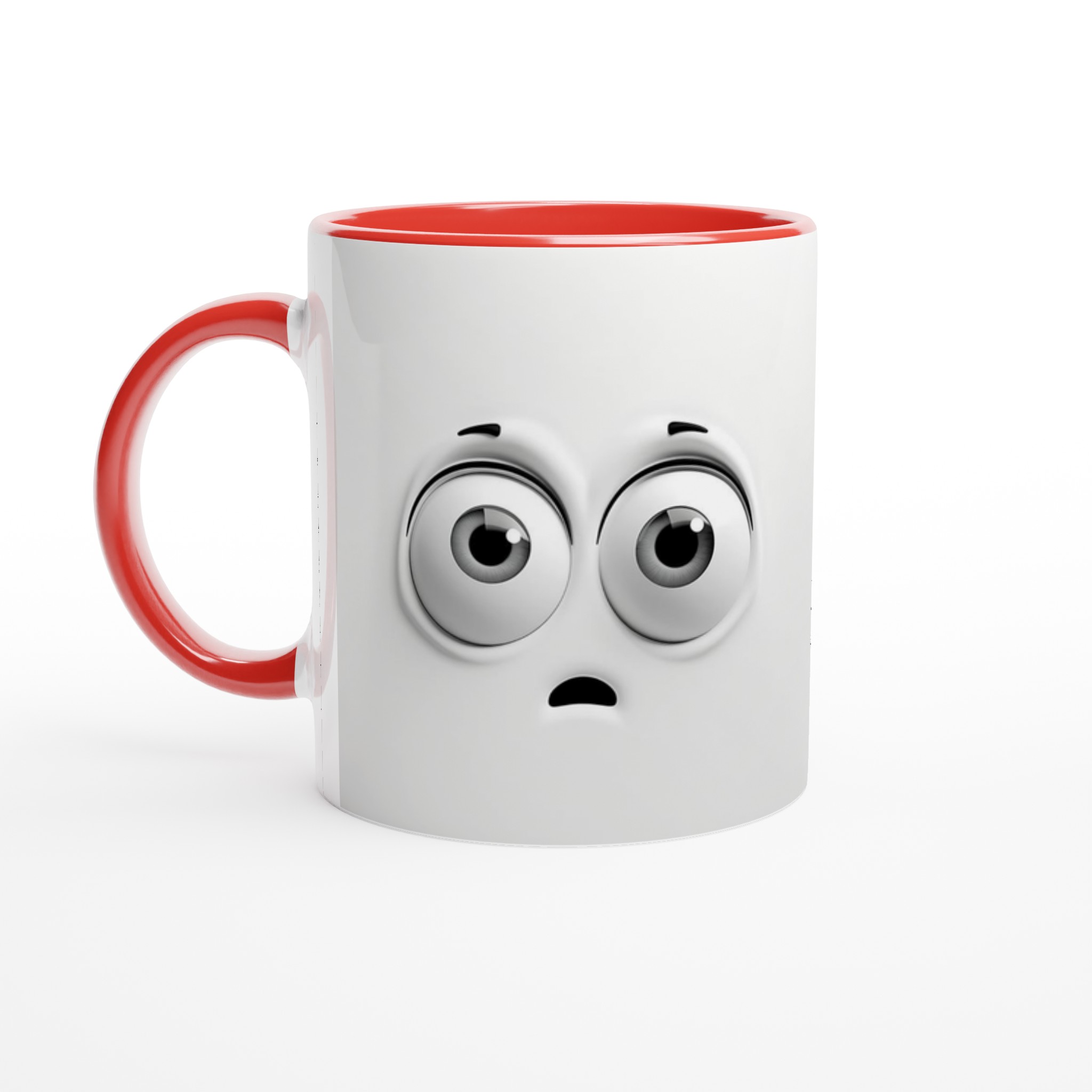 Denna charmiga mugg med sin blanka vita yta ger ett skarpt och levande tryck som verkligen sticker ut. Oavsett om du väljer en personlig design, ett roligt citat eller den här unika illustrationen av de förvånade ögonen som garanterat sprider glädje, blir det en present till någon du tycker om eller en ny favorit i ditt eget kök.
