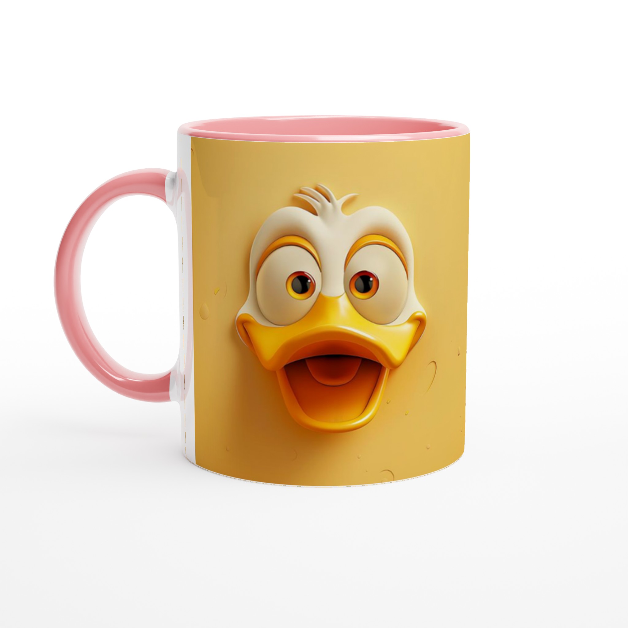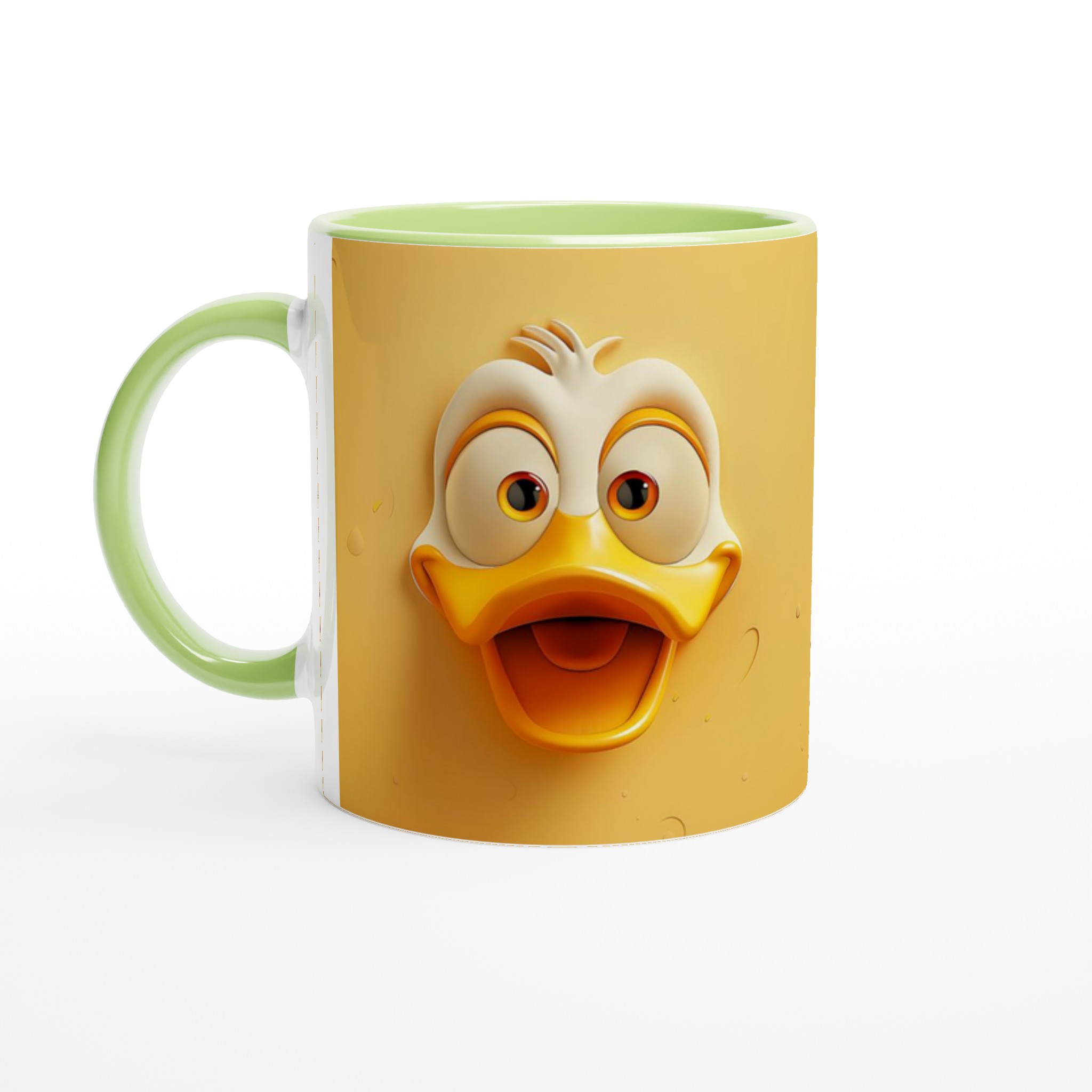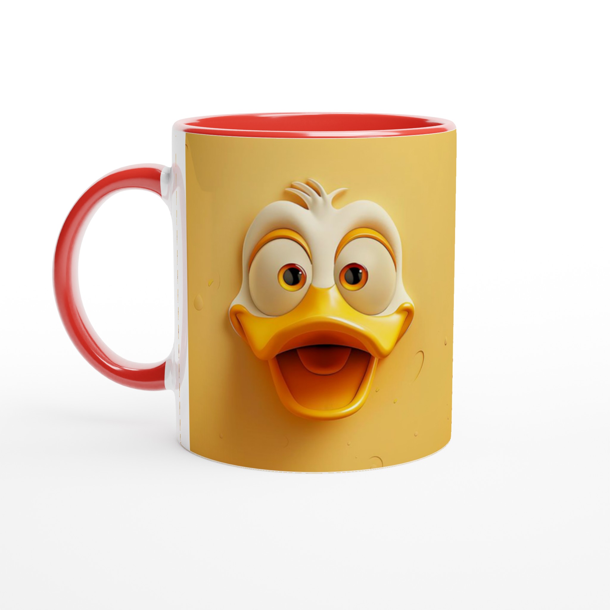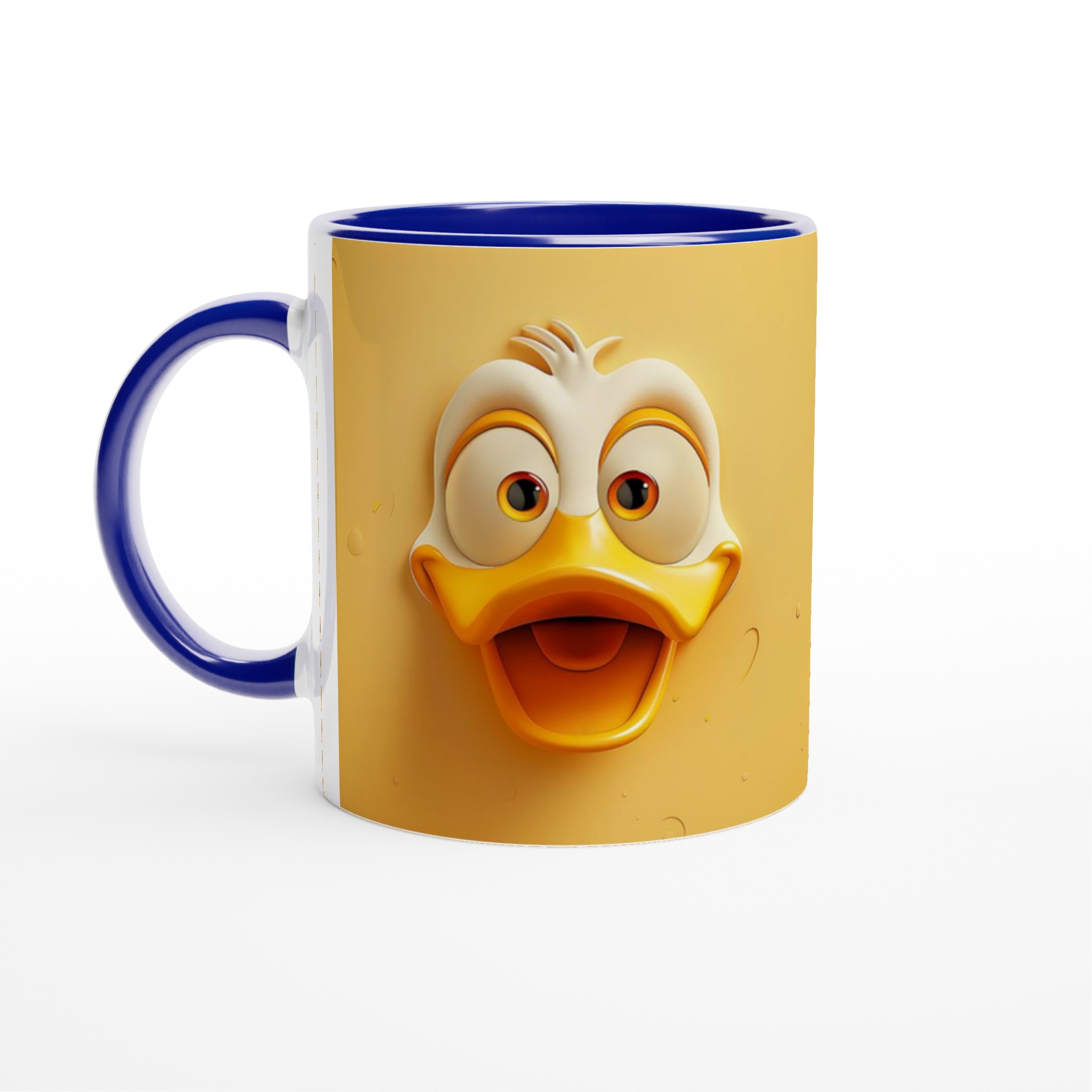 Lyft varje kaffestund med vår premium keramikmugg – stilren, hållbar och skapad för att låta ditt motiv glänsa. Denna charmiga mugg pryds av en humoristisk serieanka med stora, uttrycksfulla ögon och en öppen näbb, som garanterat sprider glädje och skratt till din vardag. Med sin lekfulla karaktär, inbäddad i en varm gul färgpalett, är den den perfekta konversationsstartaren eller en glädjefull present till någon speciell.