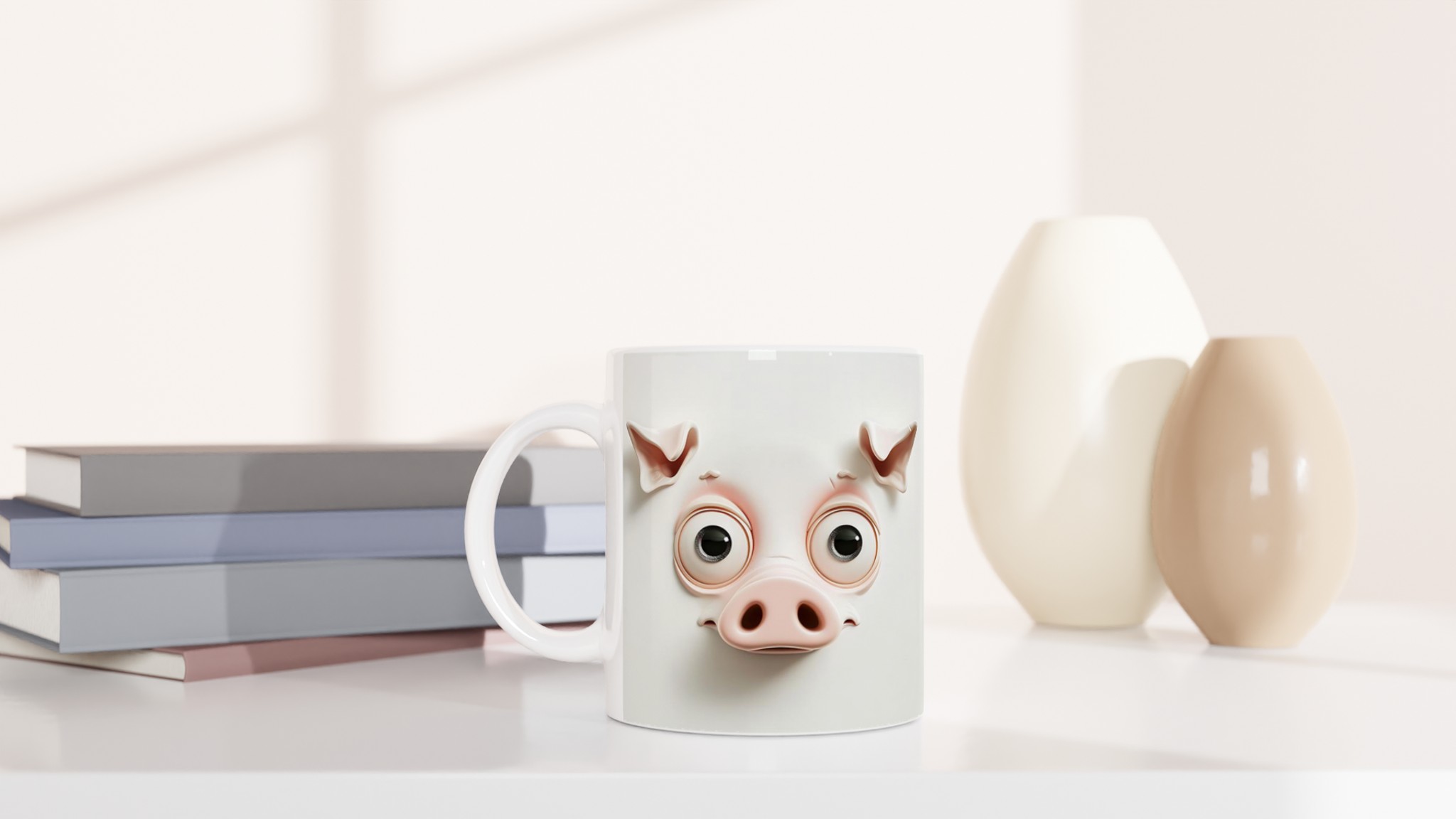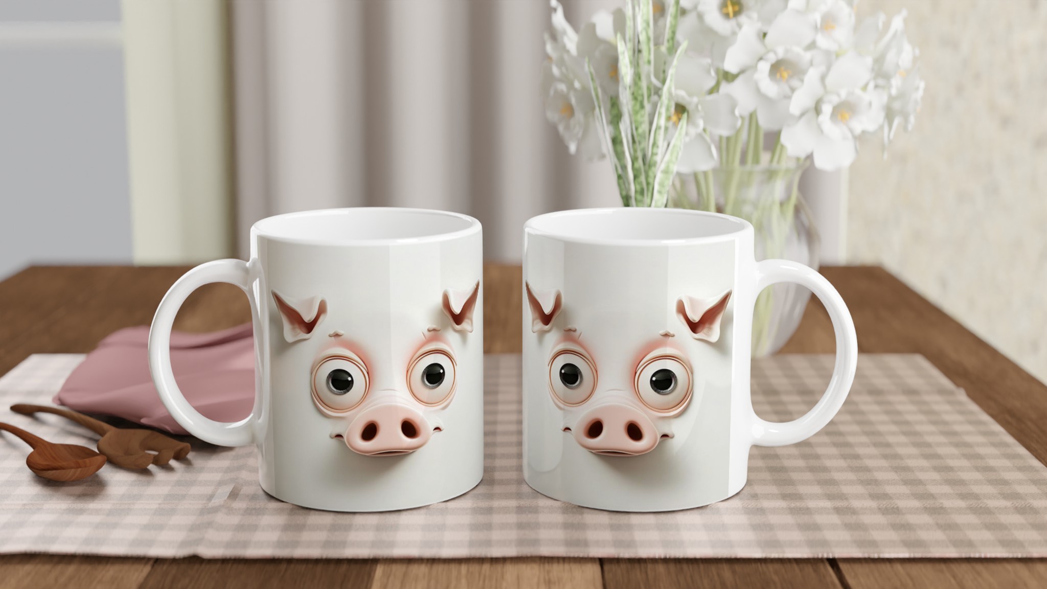 Väck ett leende varje morgon med vår humoristiska keramikmugg, prydd med två bedårande men skräckslagna grisansikten! Dessa söta karaktärer, med sina uttrycksfulla ögon och milda rosa nyanser, kommer garanterat att förgylla din dag och bli en omedelbar konversationsstartare. Muggen är tillverkad av högkvalitativ keramik som tål både diskmaskin och mikrovågsugn utan att tappa färg eller glans. Den håller formen och färgerna tvätt efter tvätt – en riktig vardagsfavorit som består.