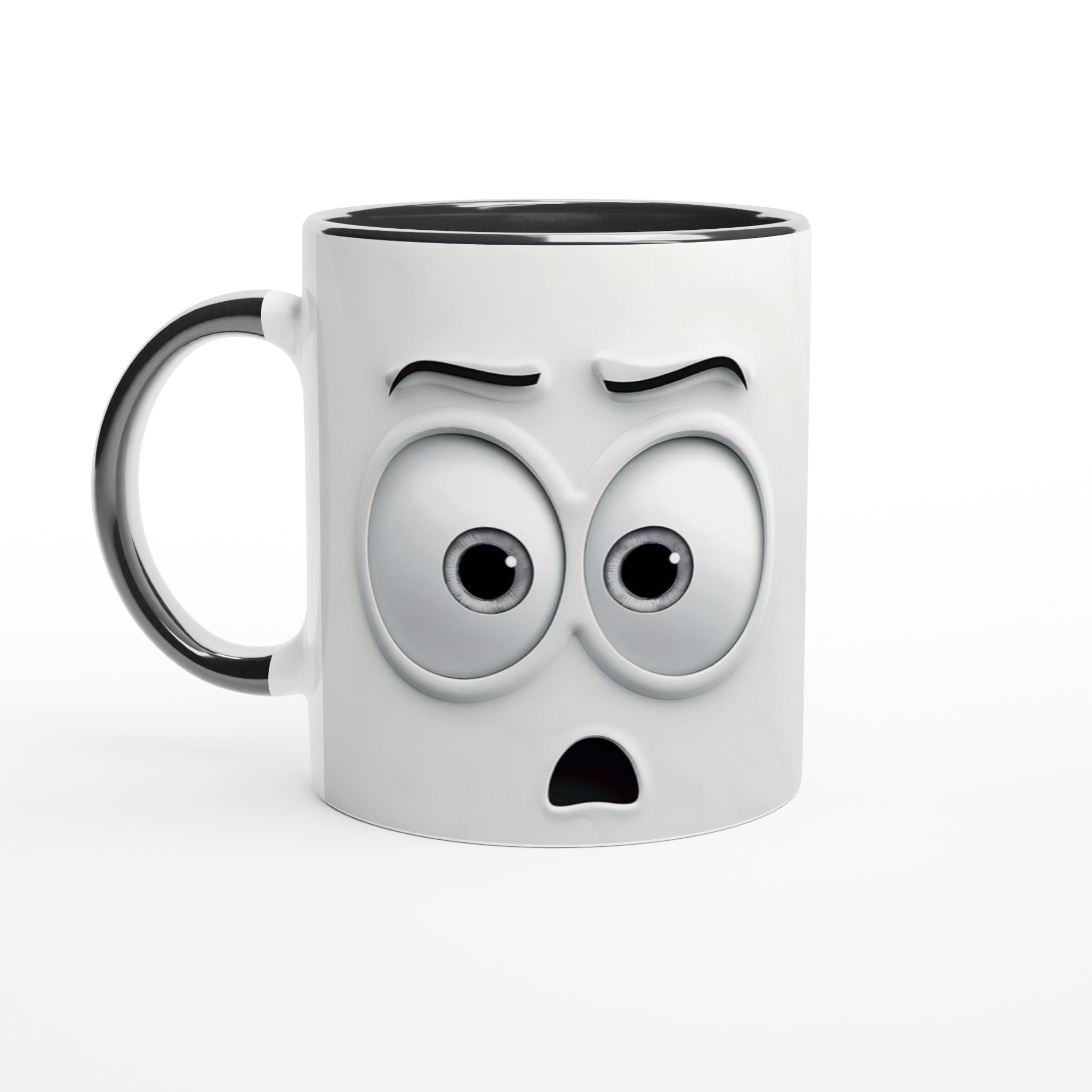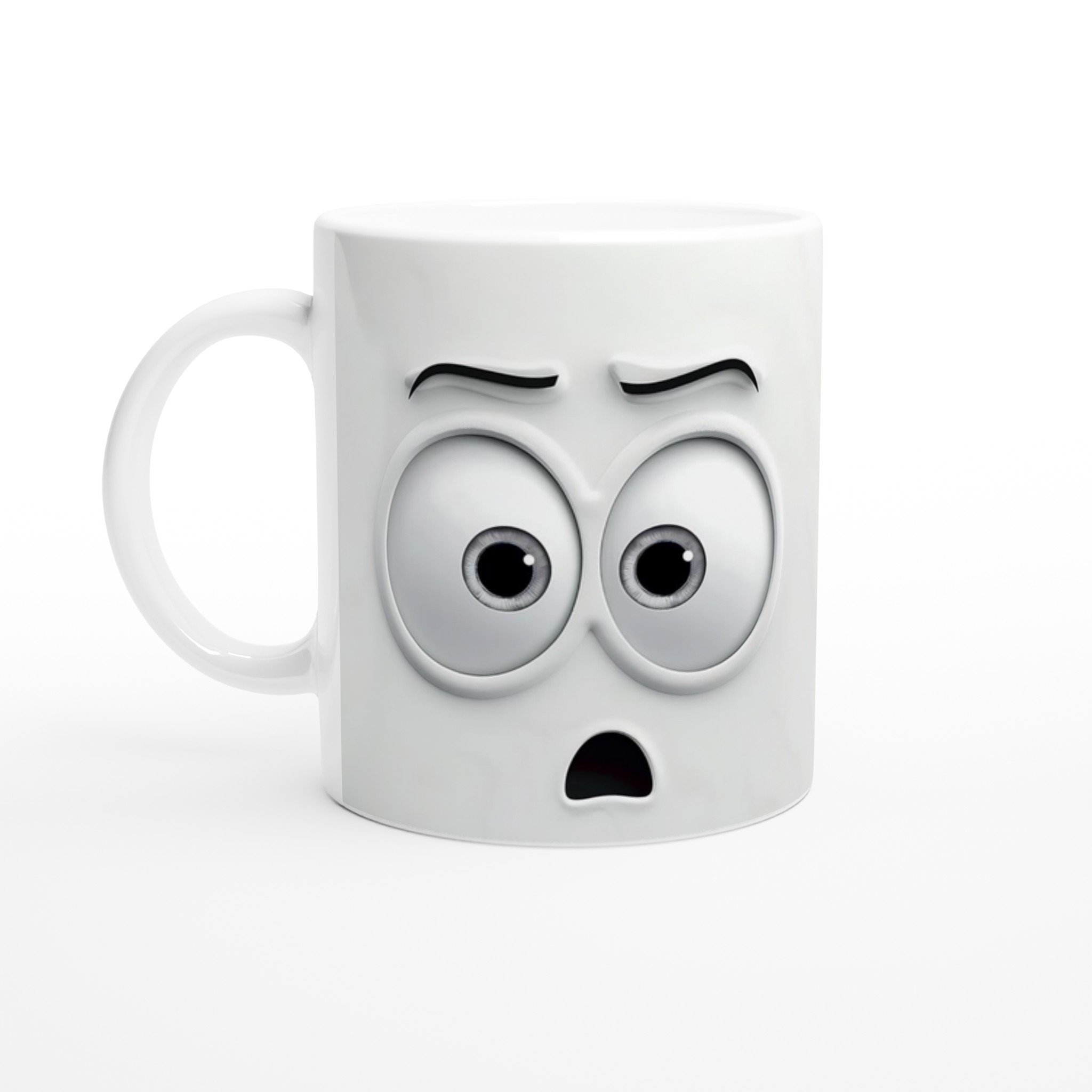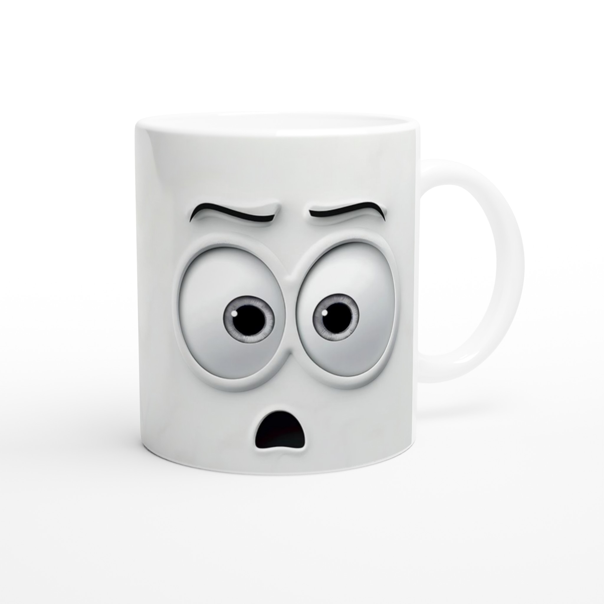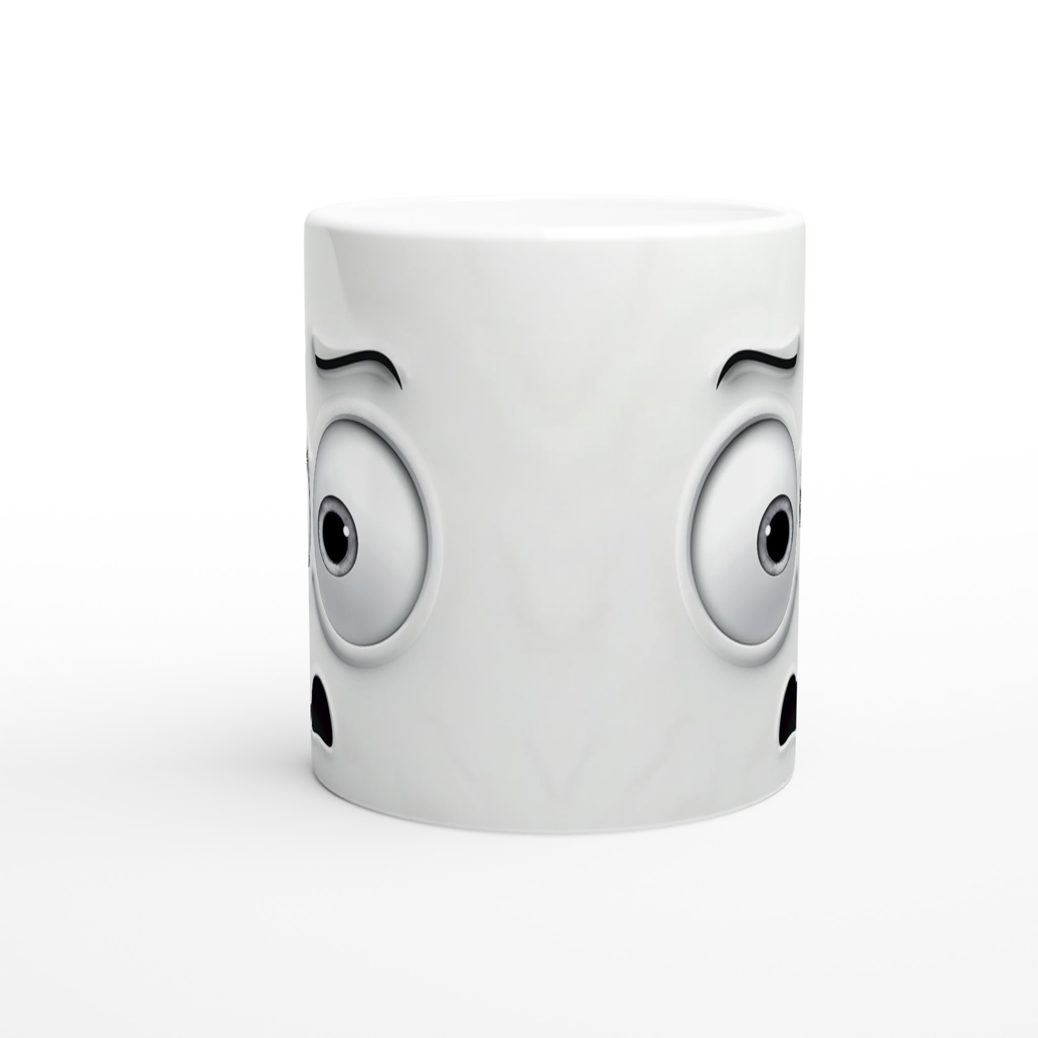 Humoristisk 11oz Keramisk Mugg – Vit med Ögon & Mun Design, Diskmaskinssäker