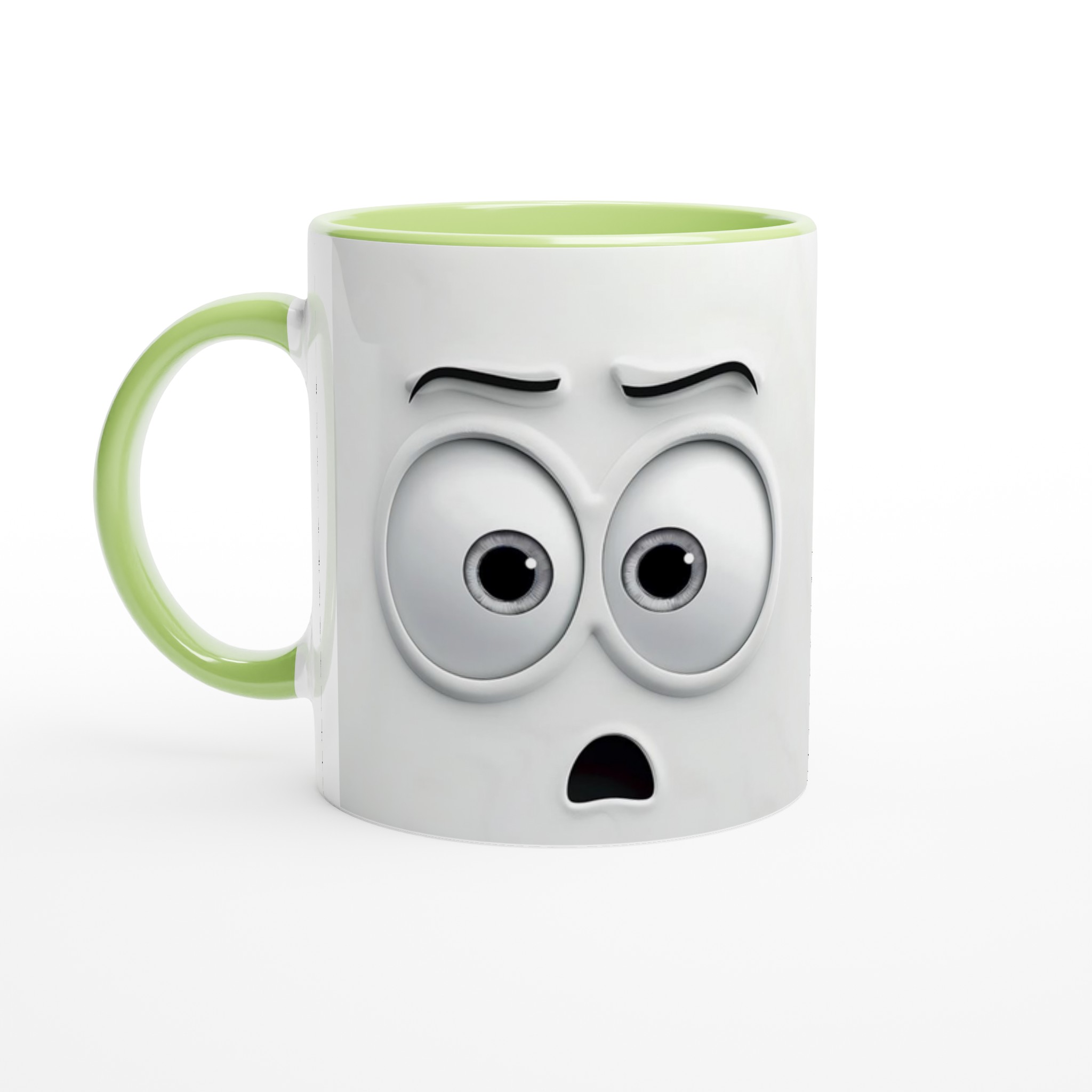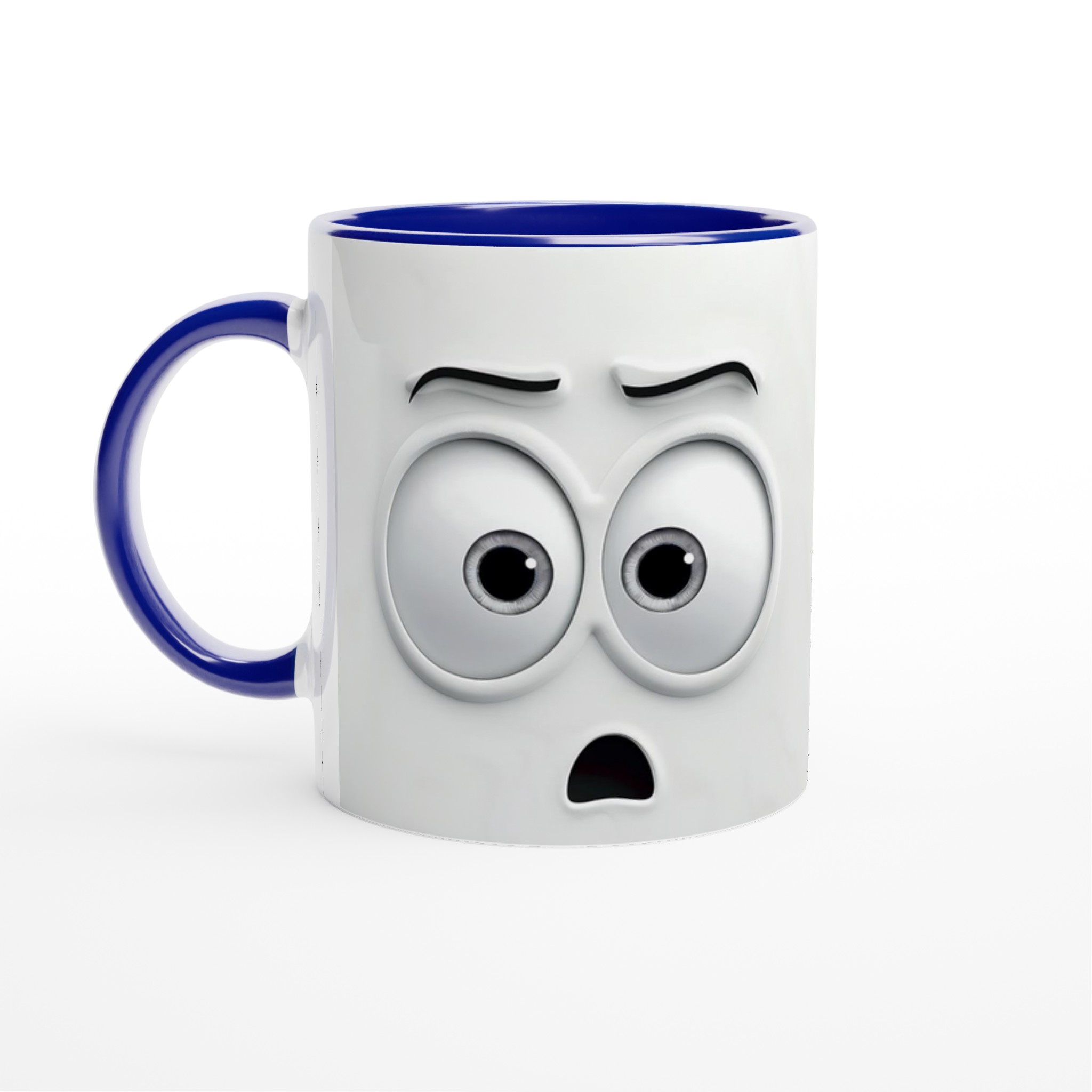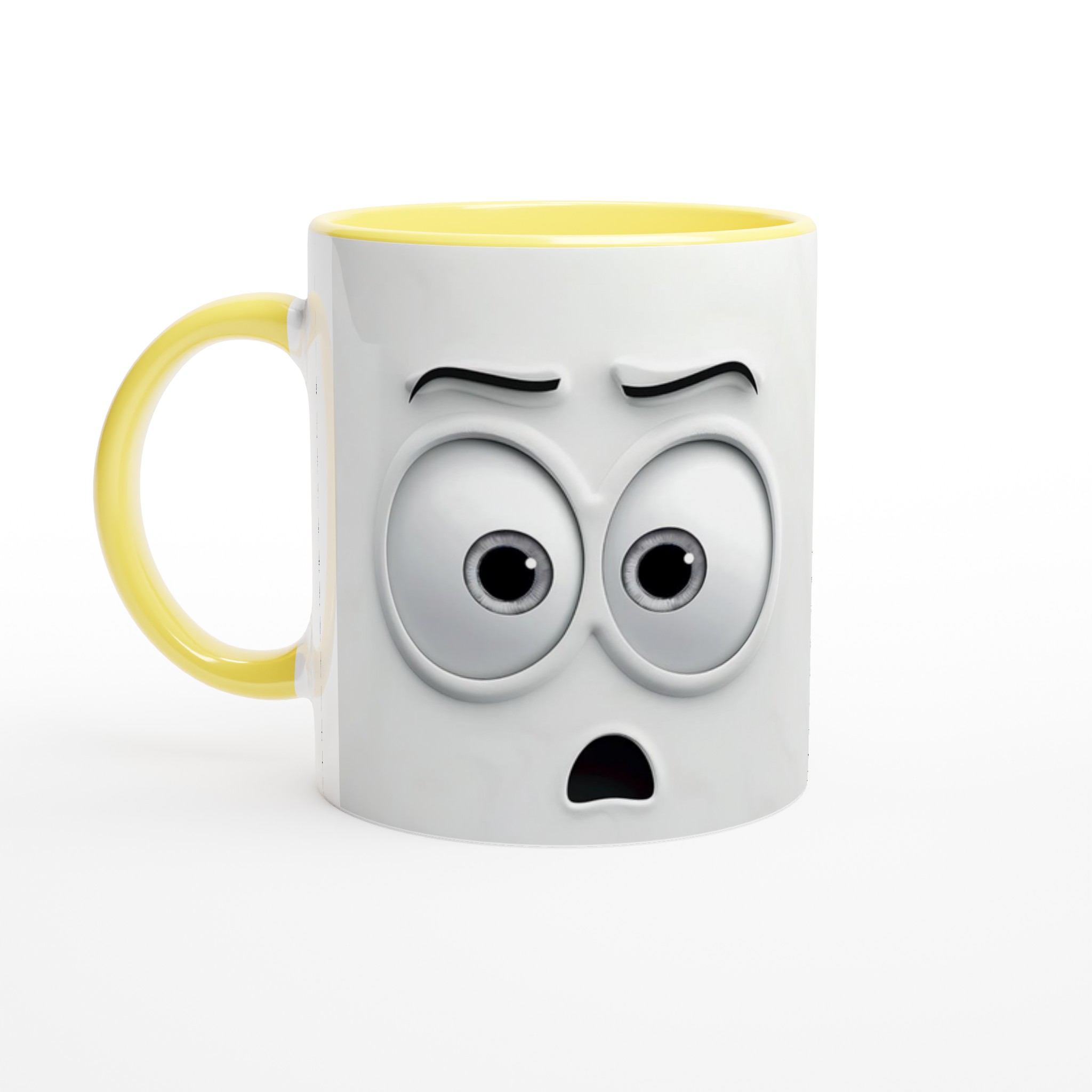 Humoristisk 11oz Keramisk Mugg – Vit med Ögon & Mun Design, Diskmaskinssäker