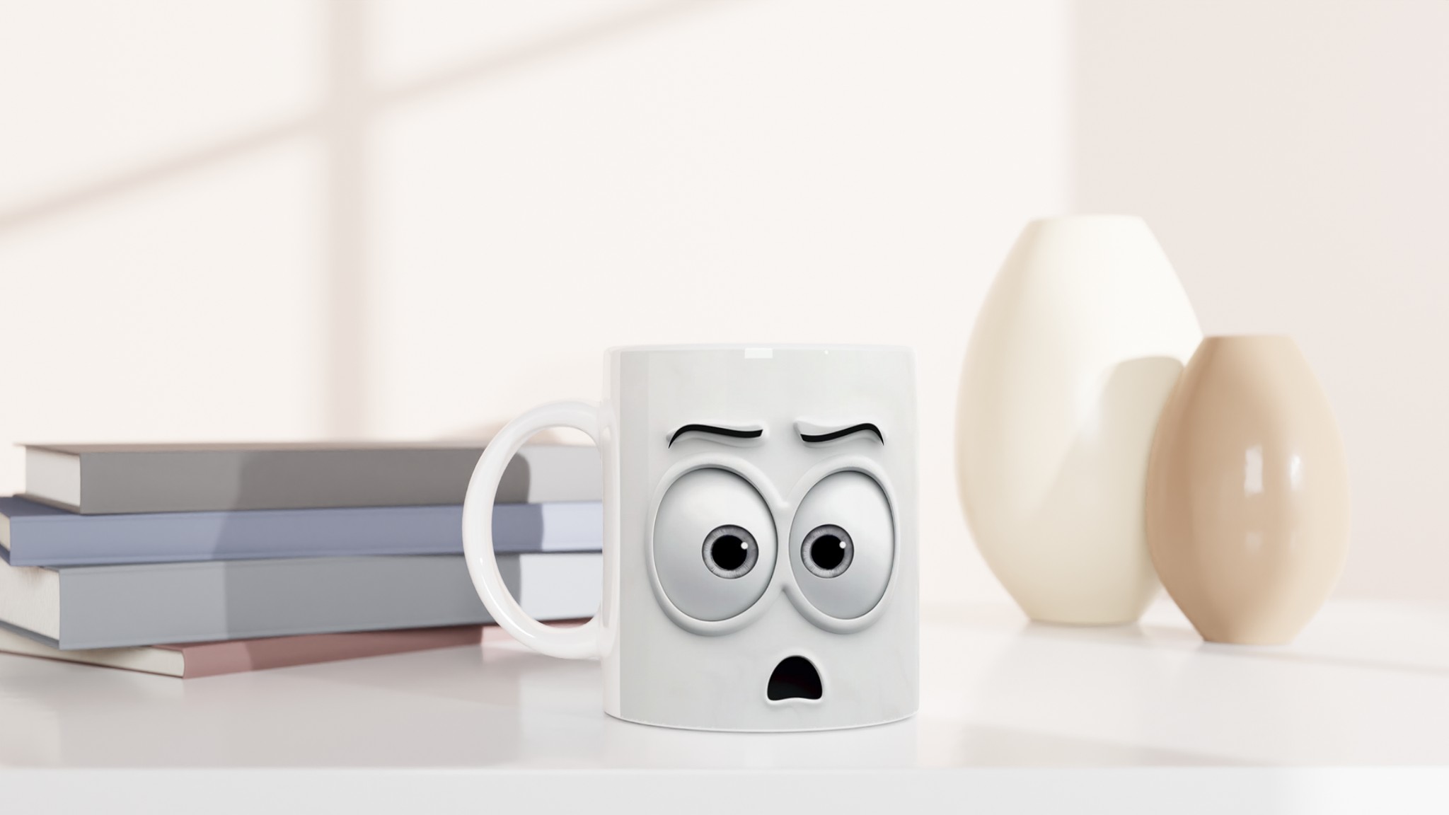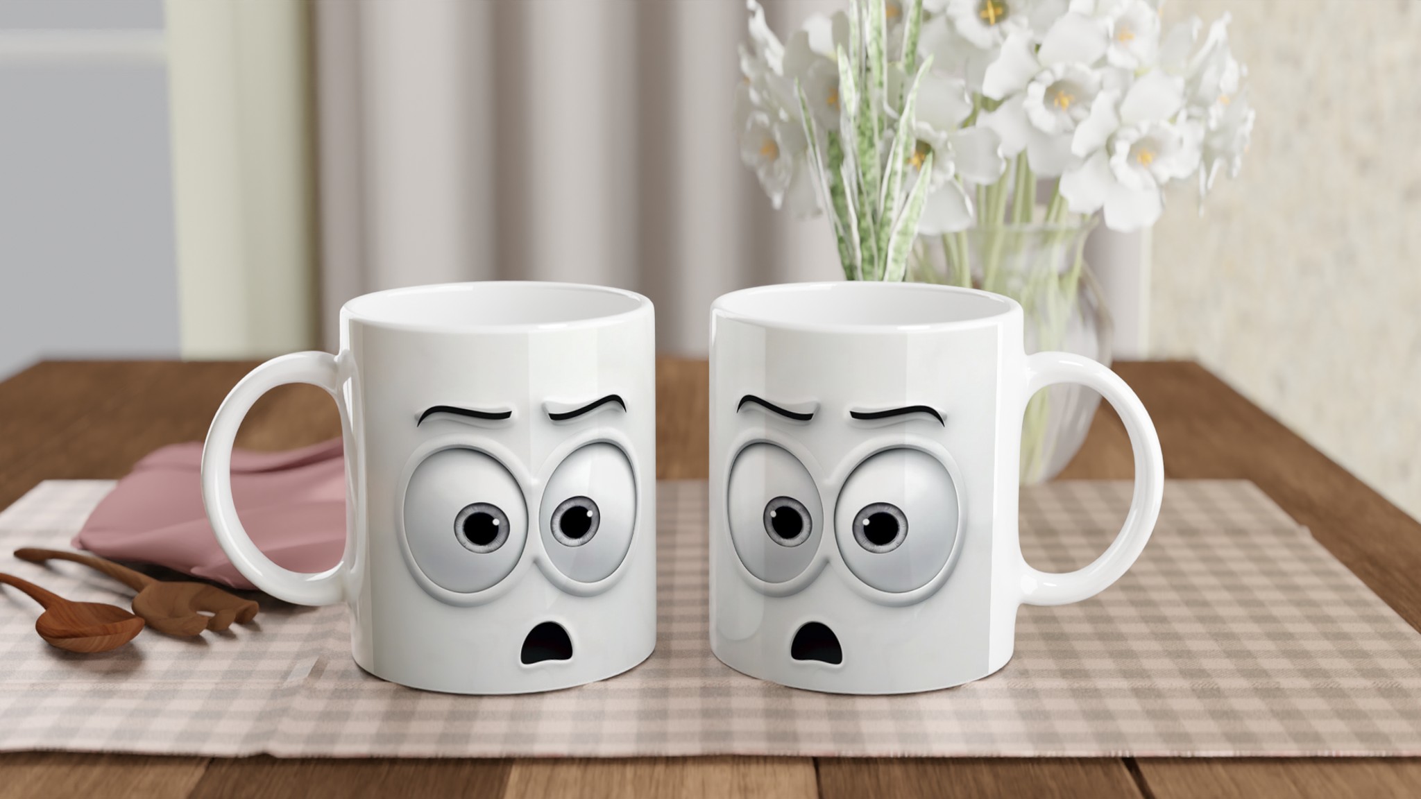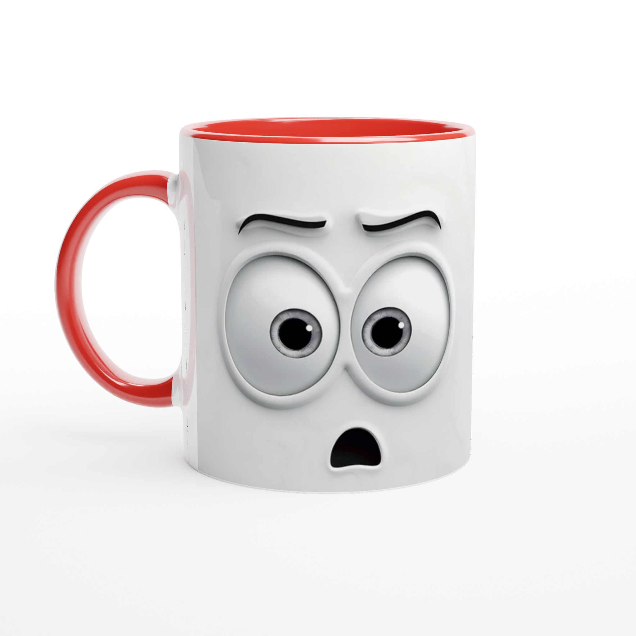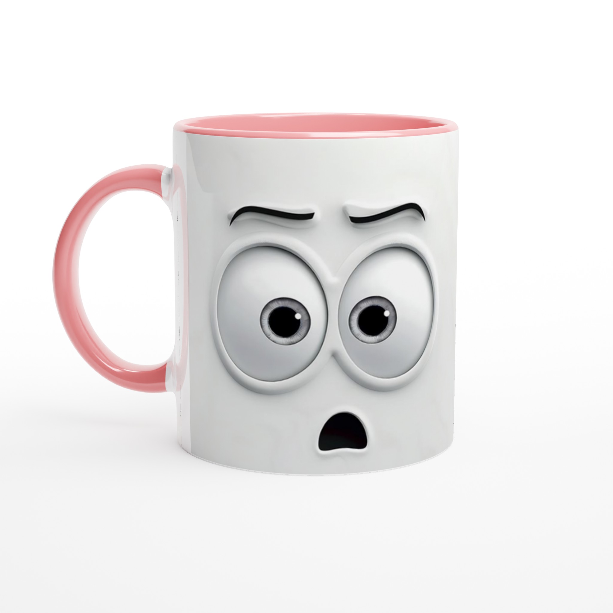 Humoristisk 11oz Keramisk Mugg – Vit med Ögon & Mun Design, Diskmaskinssäker