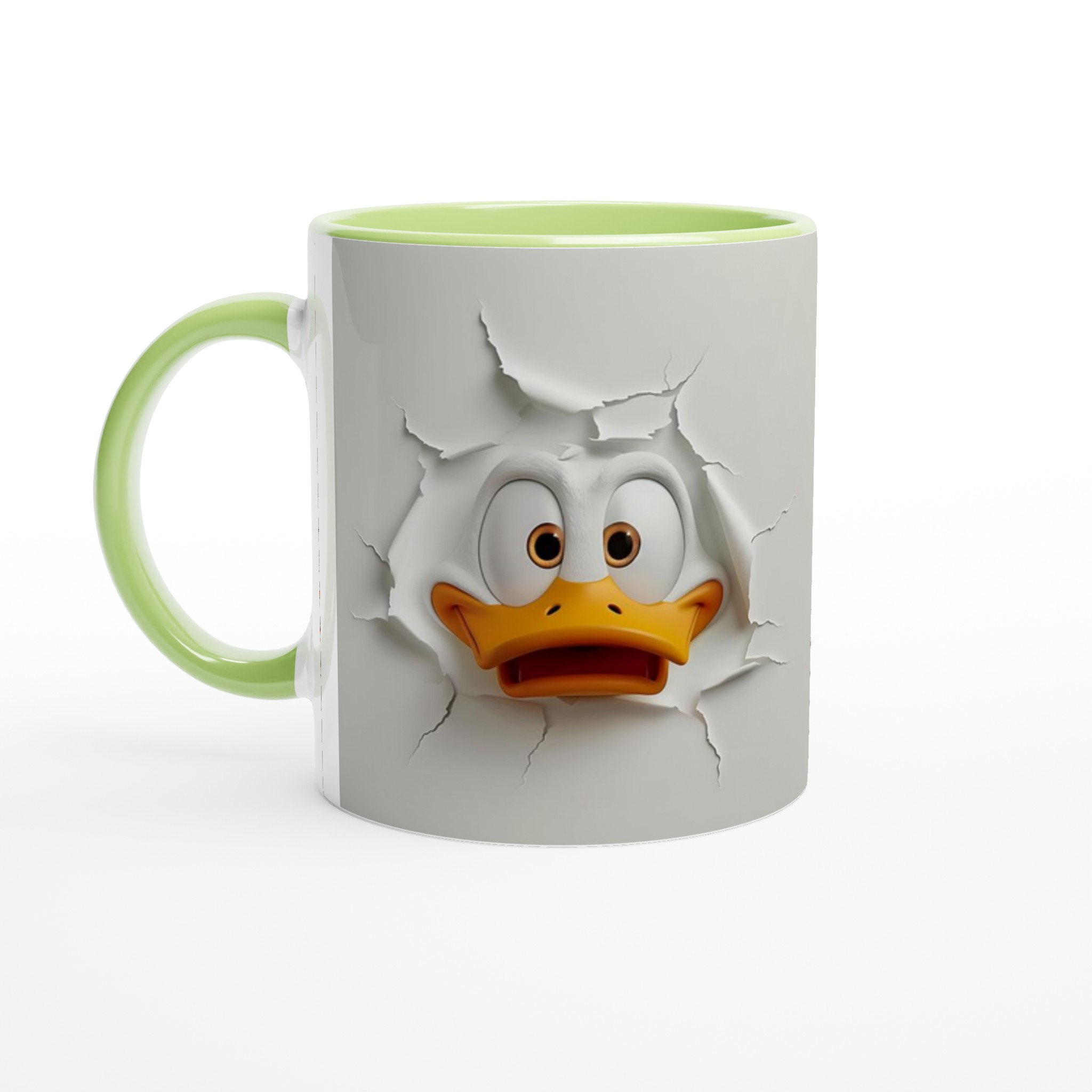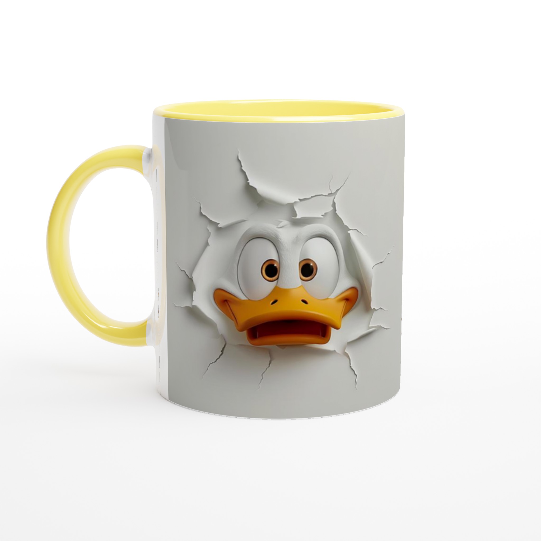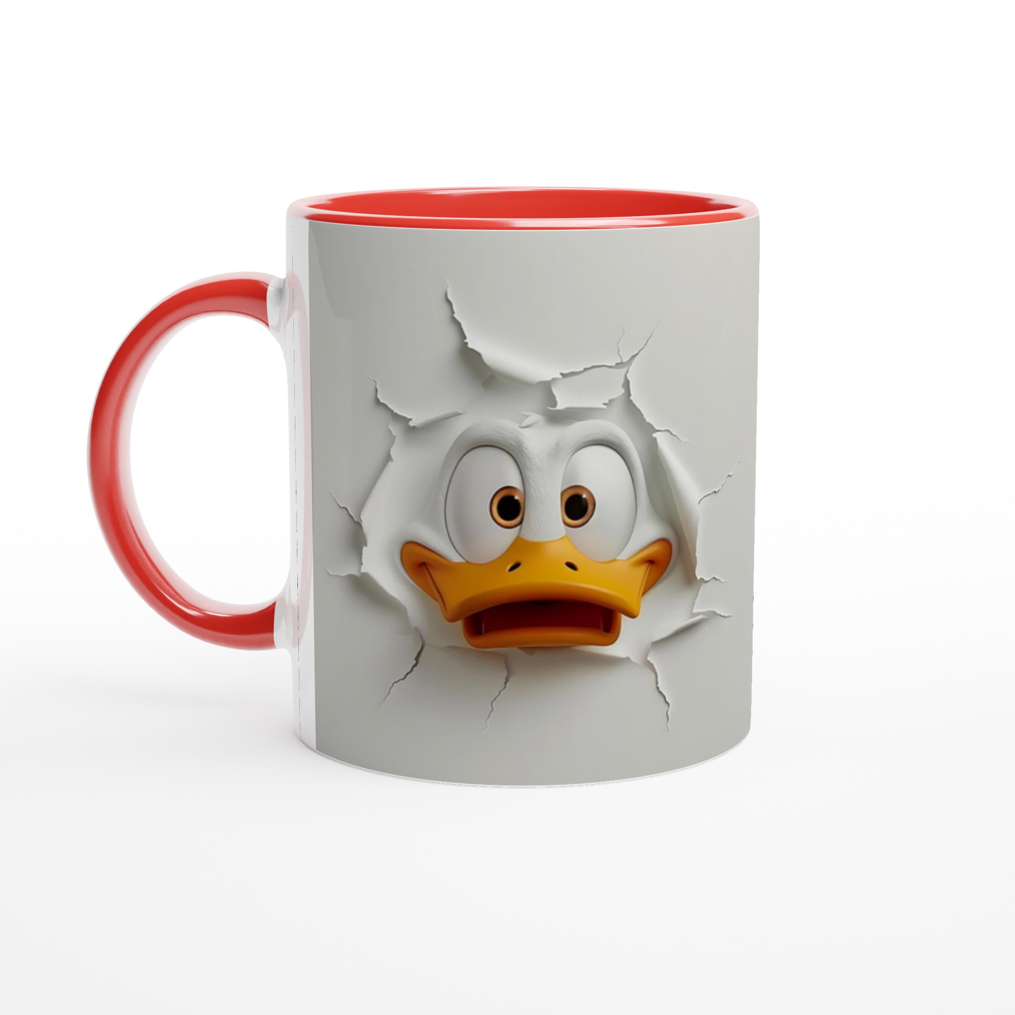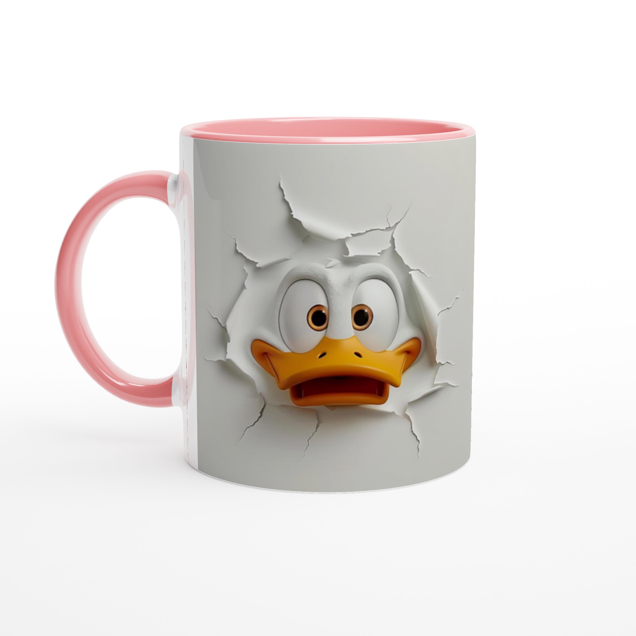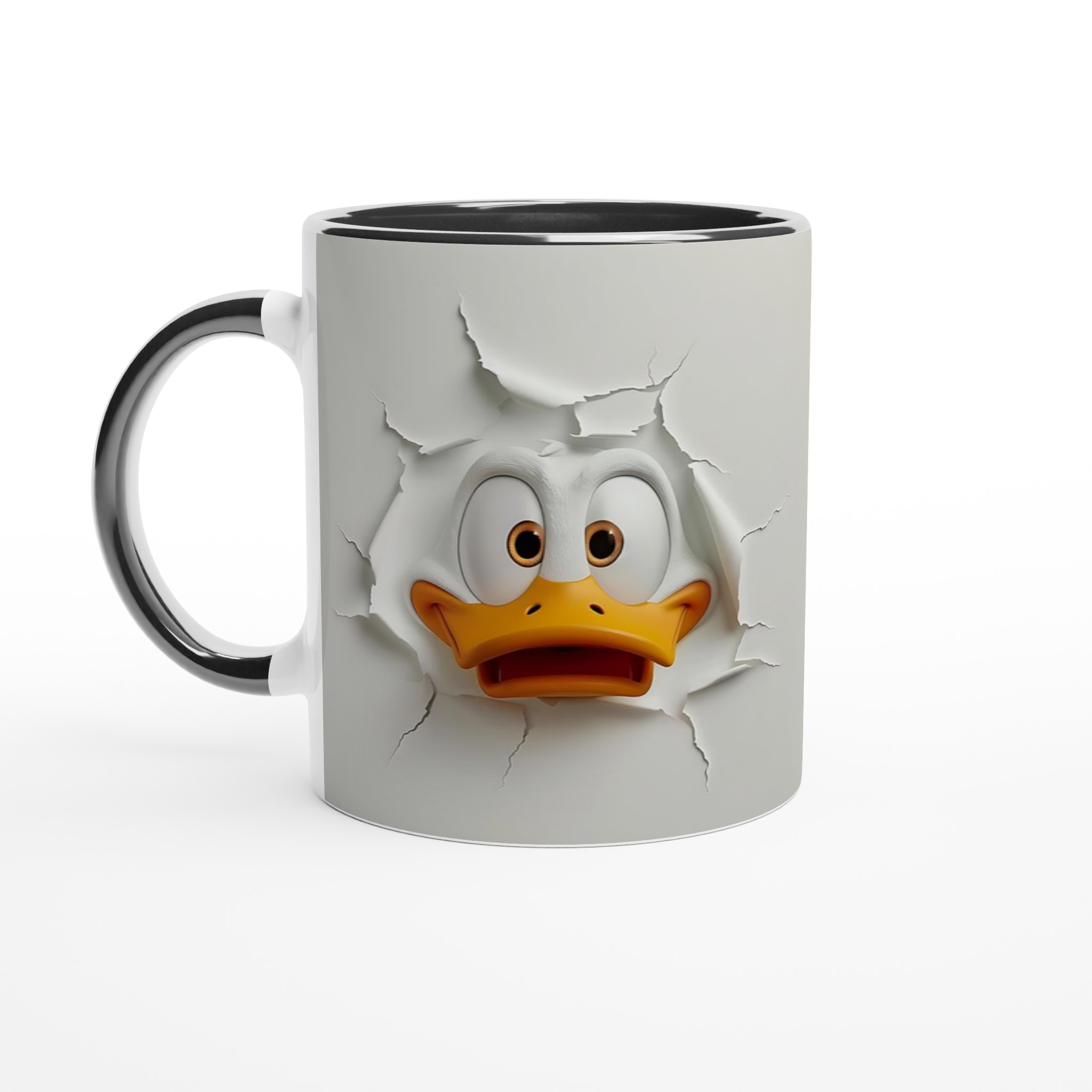 Denna mugg fångar ögonblicket av överraskning och lekfullhet, med en design som ser ut att bryta igenom ytan. Den blanka vita ytan ger ett skarpt och levande tryck som verkligen sticker ut, oavsett om det är en personlig design, ett roligt citat eller en present till någon du tycker om.